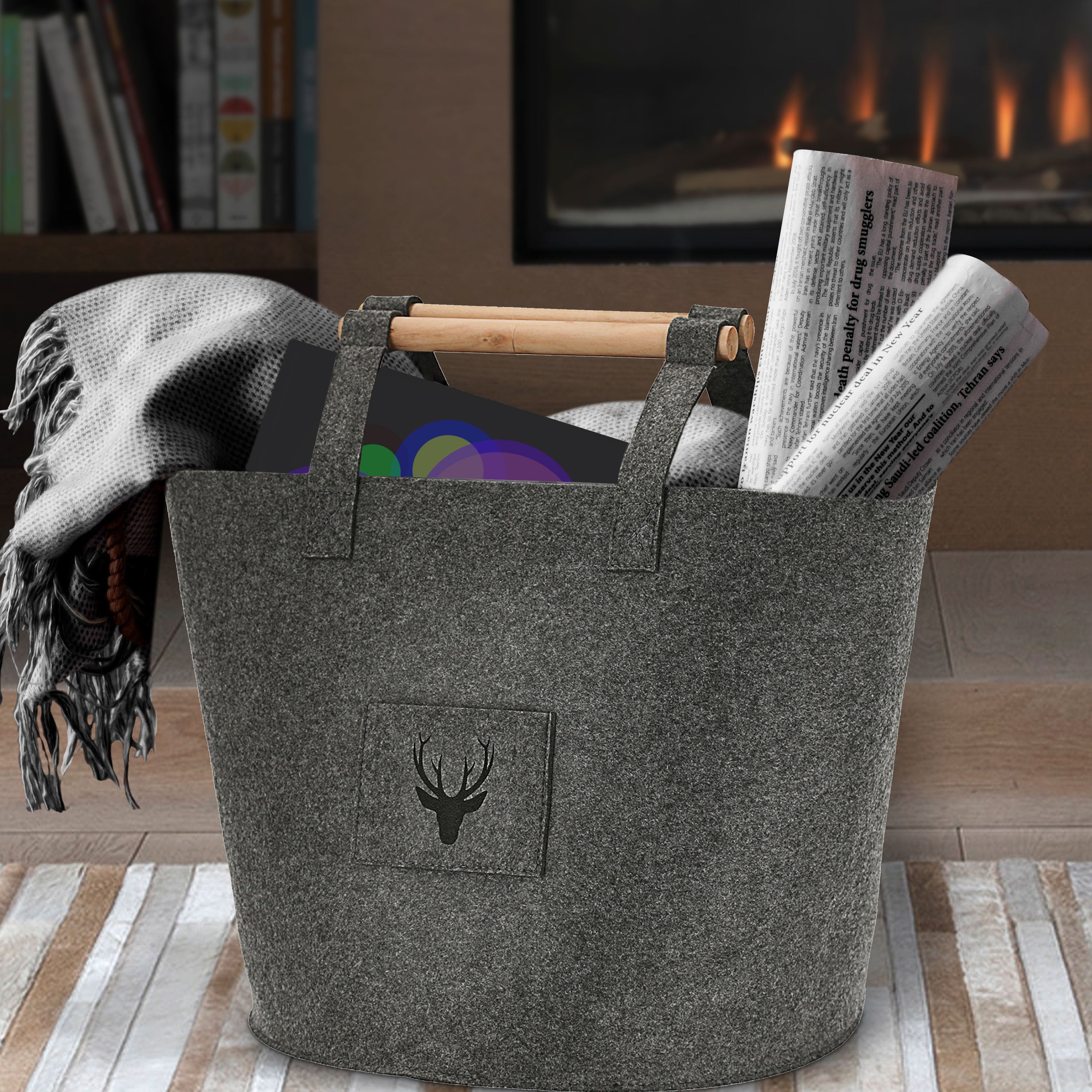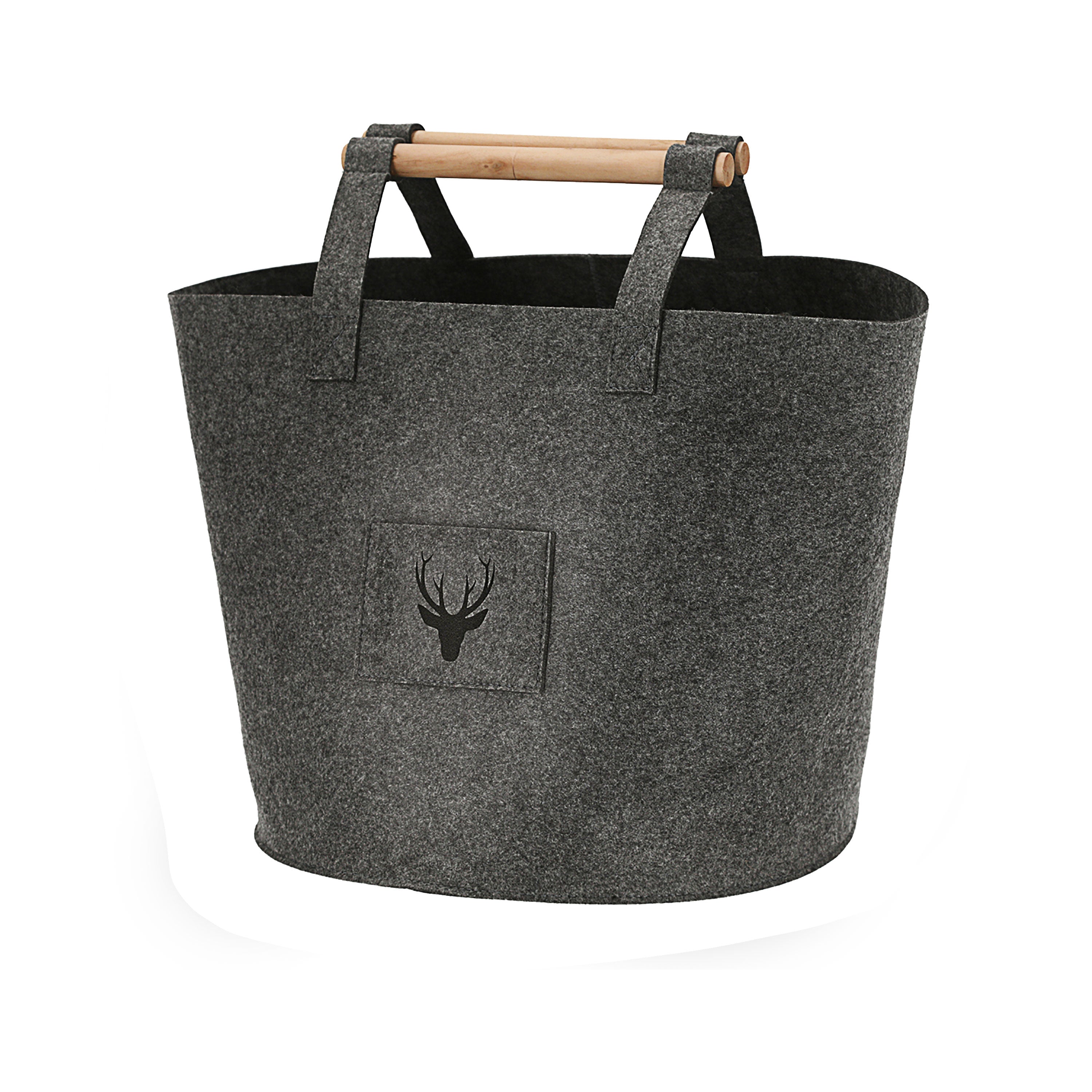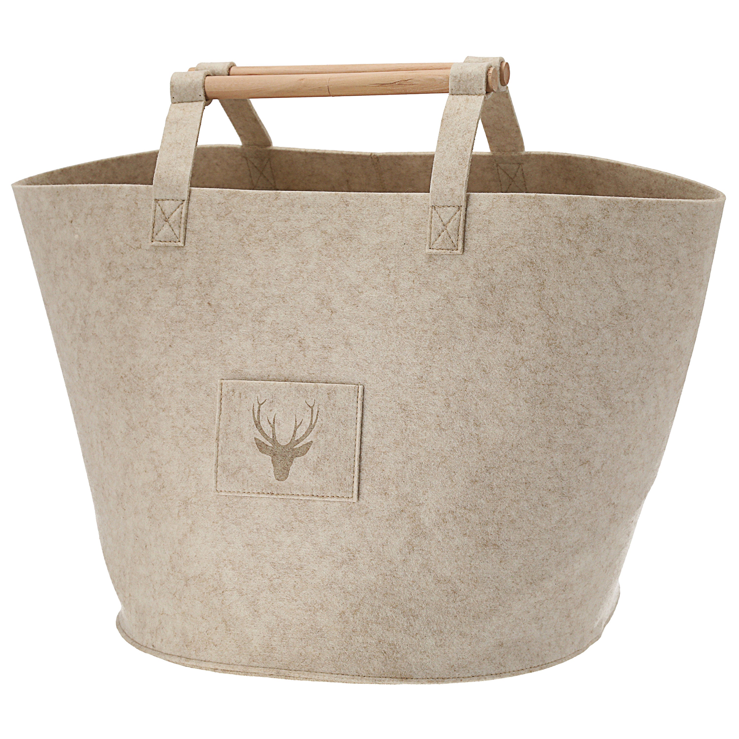 Filztaschen 3er Set Hirschkopf S/M/L beige/dunkelgrau Hirschmotiv Holzgriff Filzkorb Tasche Aufbewahrungstasche Korb