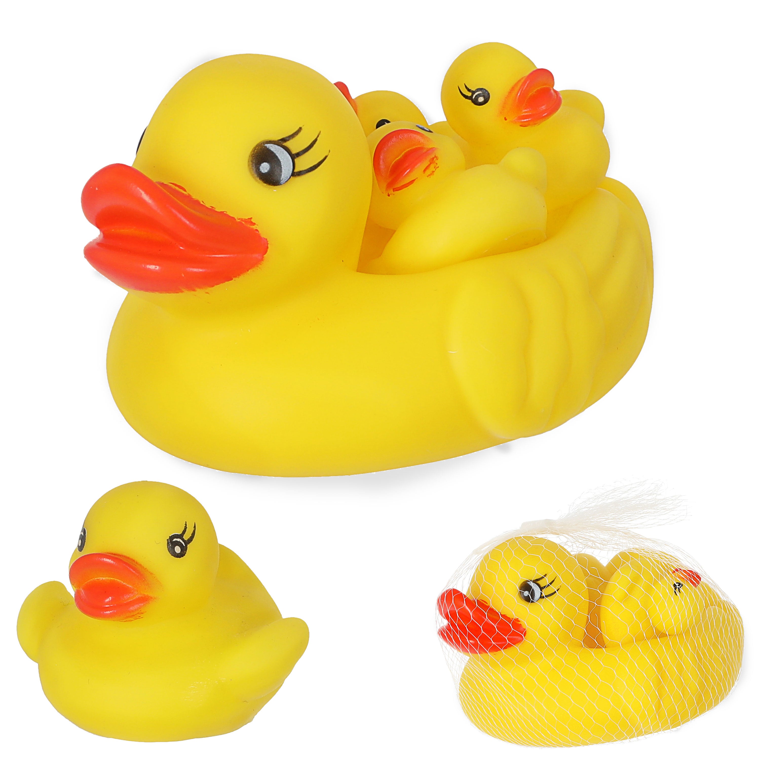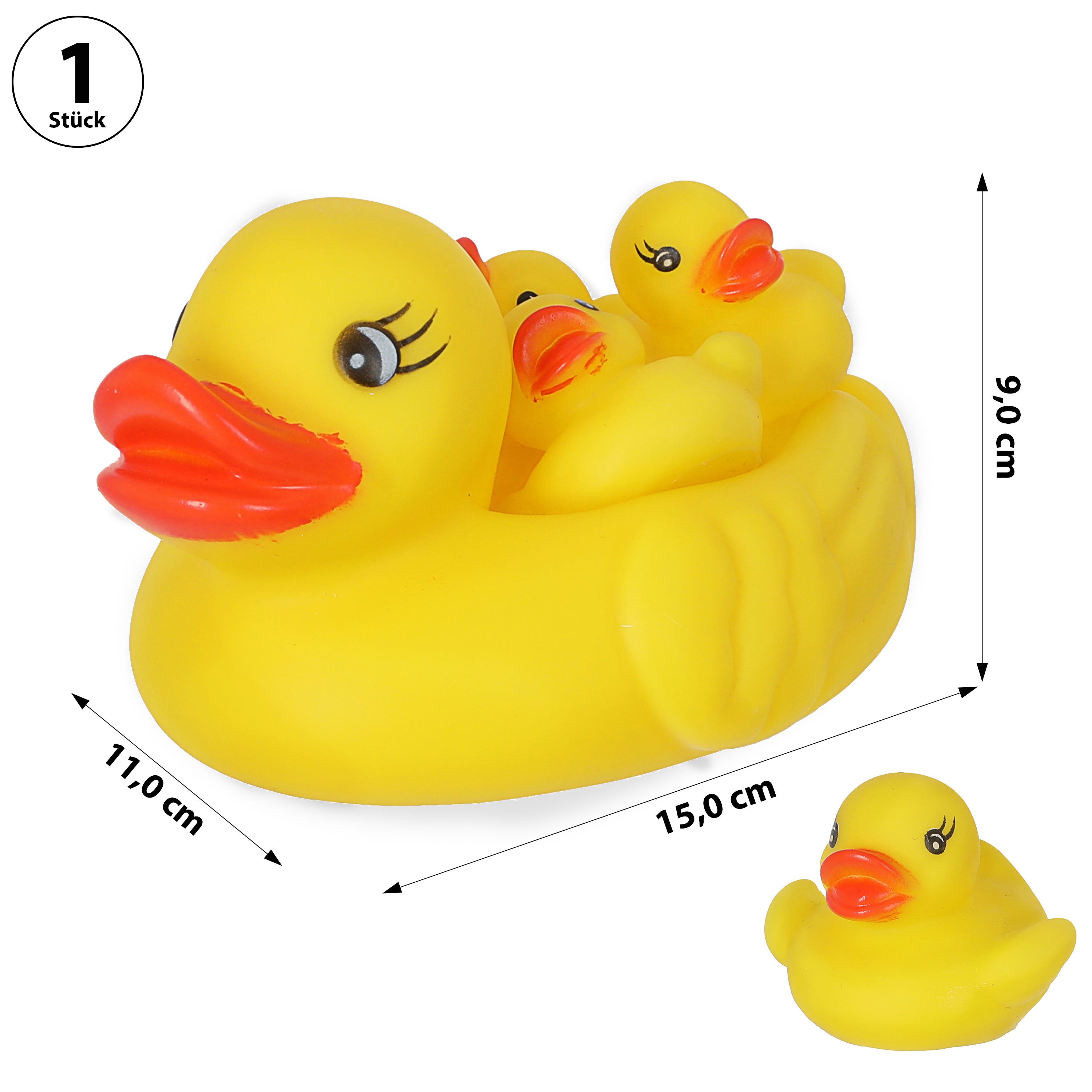 Badeente Mama mit Kids 4tlg. 11x9x15cm PVC gelb Schnabel Badespielzeug Quietscheente Badewanne Mama-Ente 3 Baby-Enten