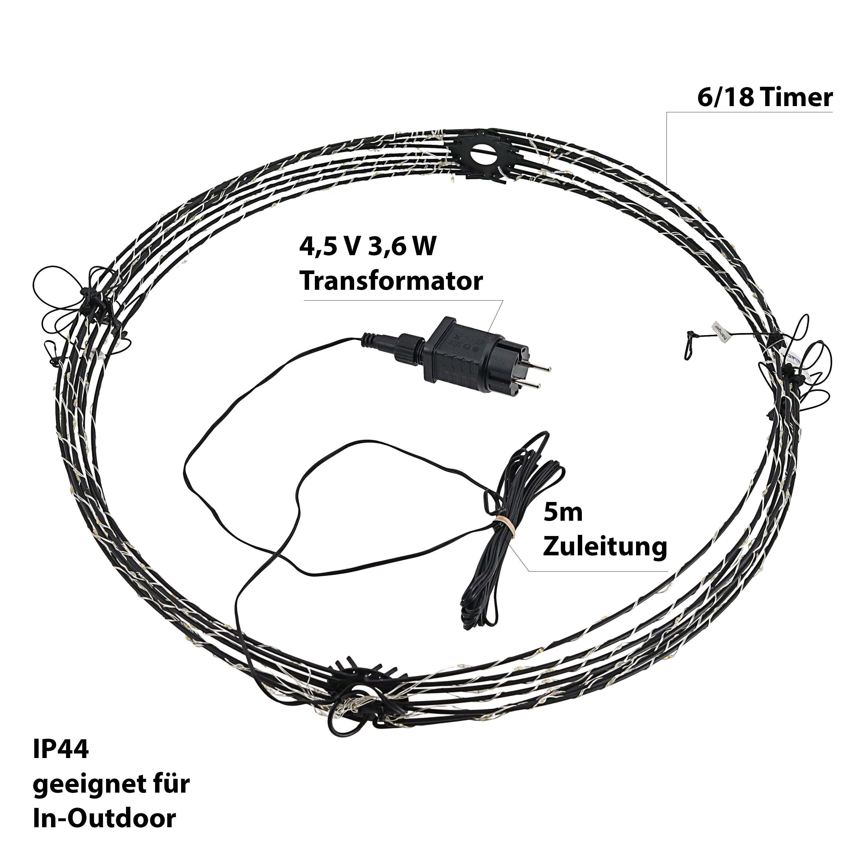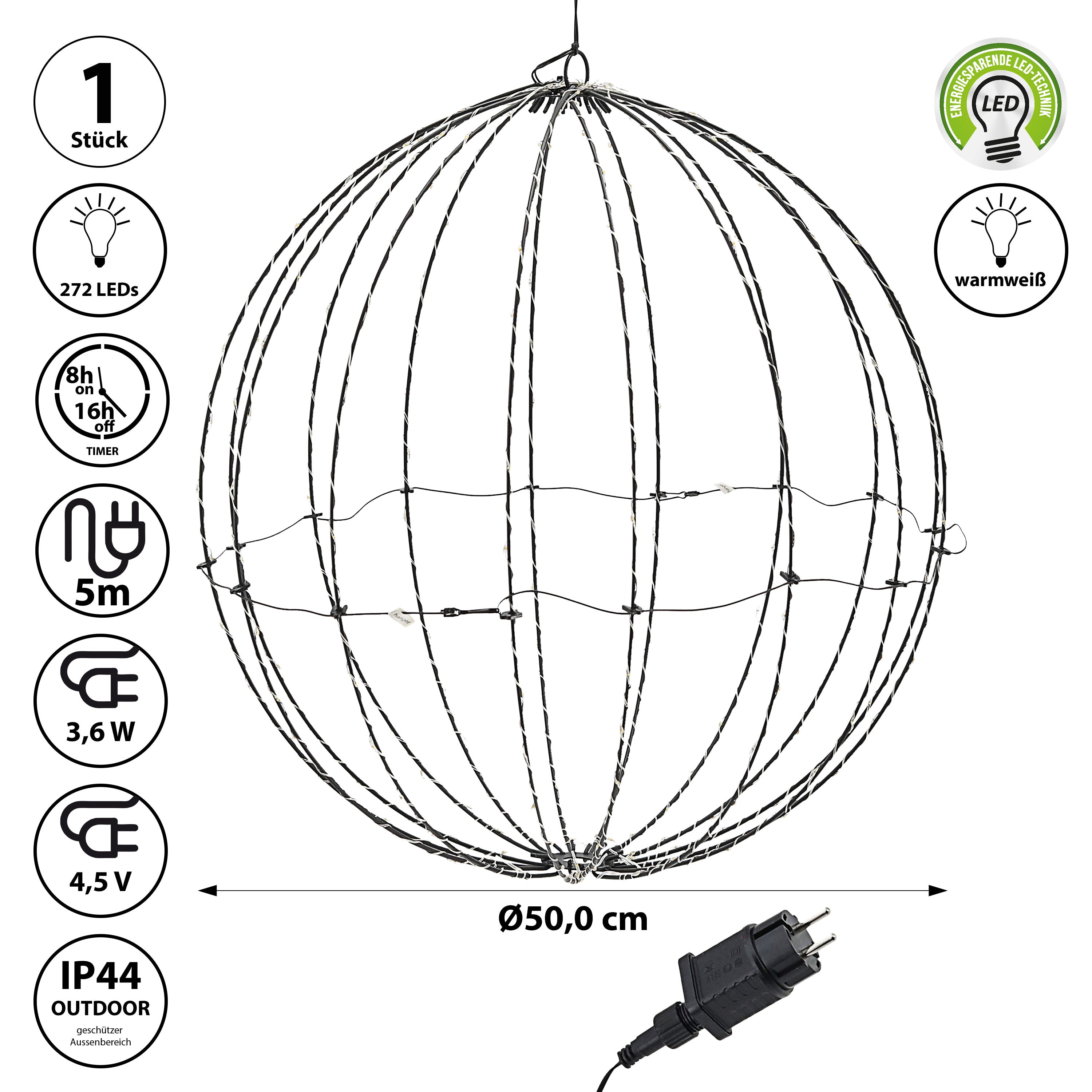 LED Kugel zum Aufhängen schwarz 272 LEDs warmweiß Ø50cm Eisen Kunststoff Timer Zuleitung 5m Weihnachtsbeleuchtung Leuchtkugel IP44 Gartendekoration