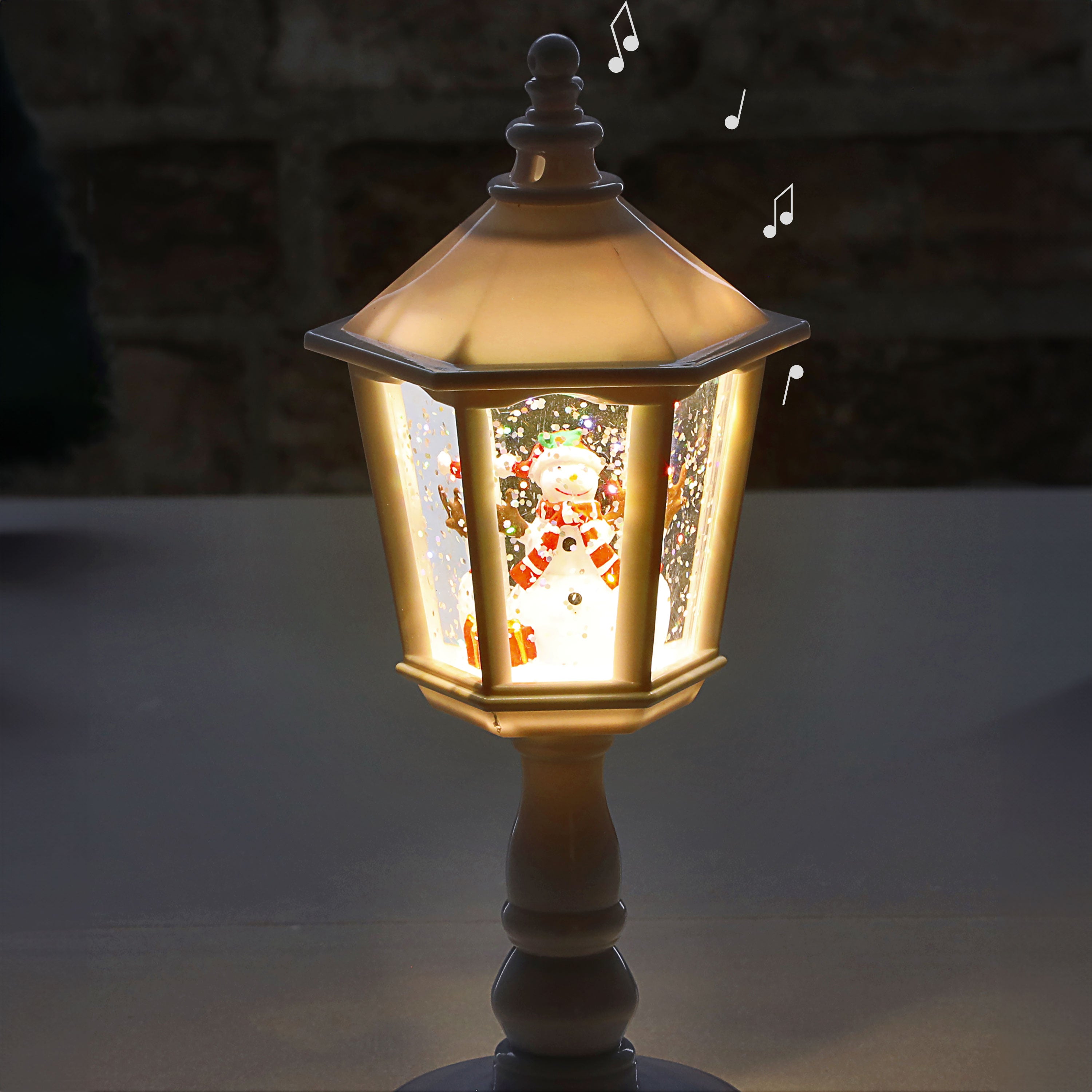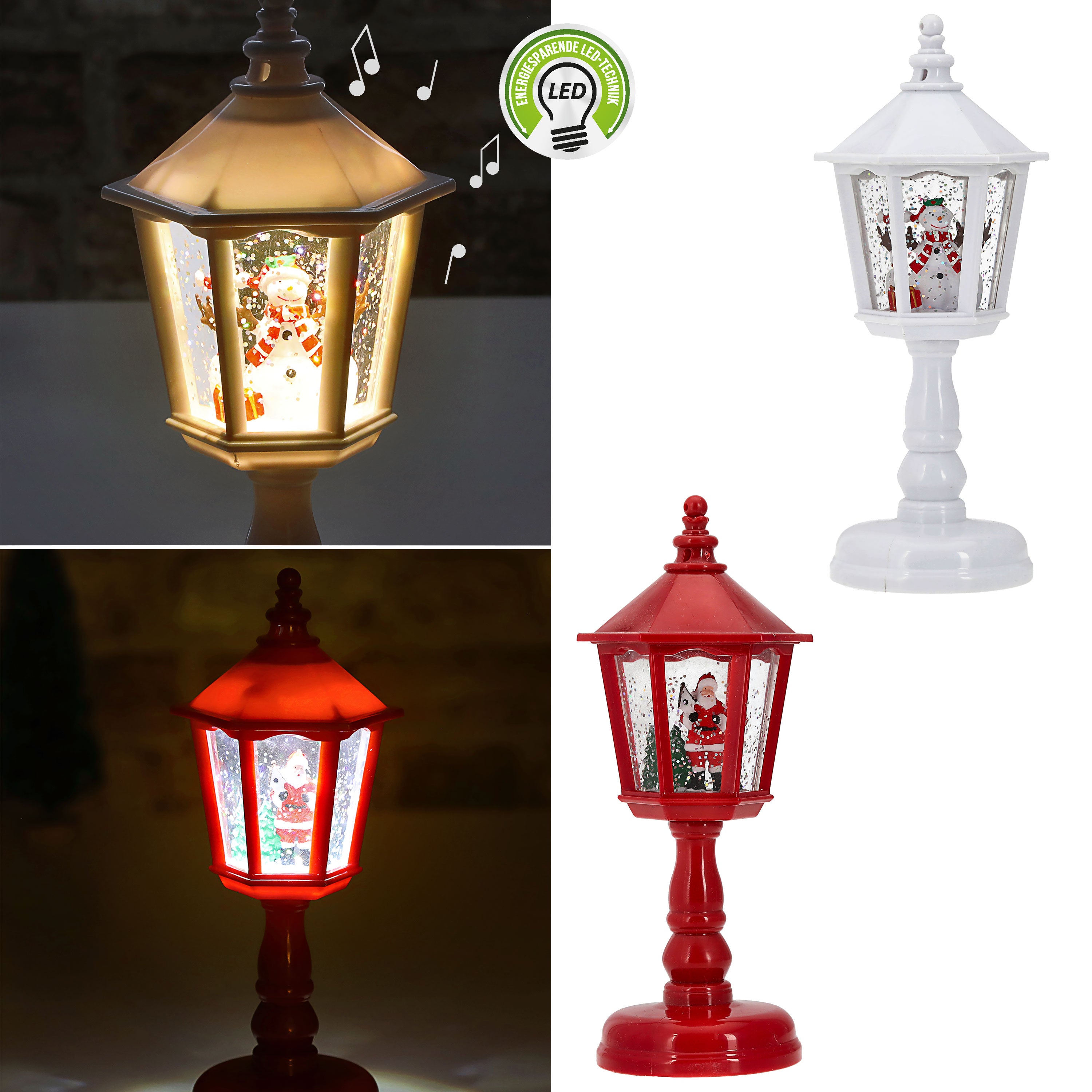 LED XMas Laterne Santa Licht Sound 7,5x21,8x7,5cm weiß / rot 1 LED Kunststoff Schneefunktion Weihnachtsmusik Weihnachtsbeleuchtung