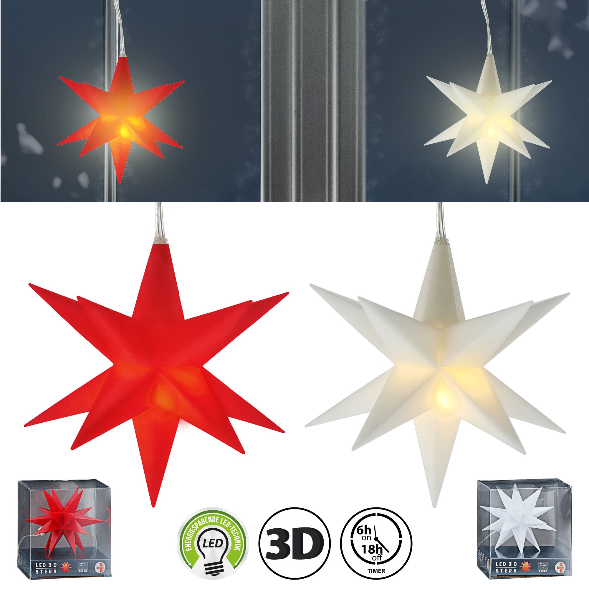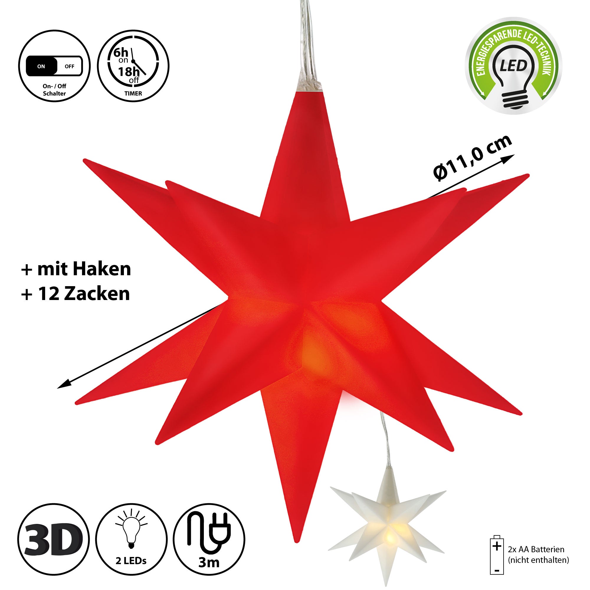Leuchtstern 3D weiß / rot Ø11cm zum Aufhängen Timerfunktion Weihnachtsstern Weihnachtsbeleuchtung
