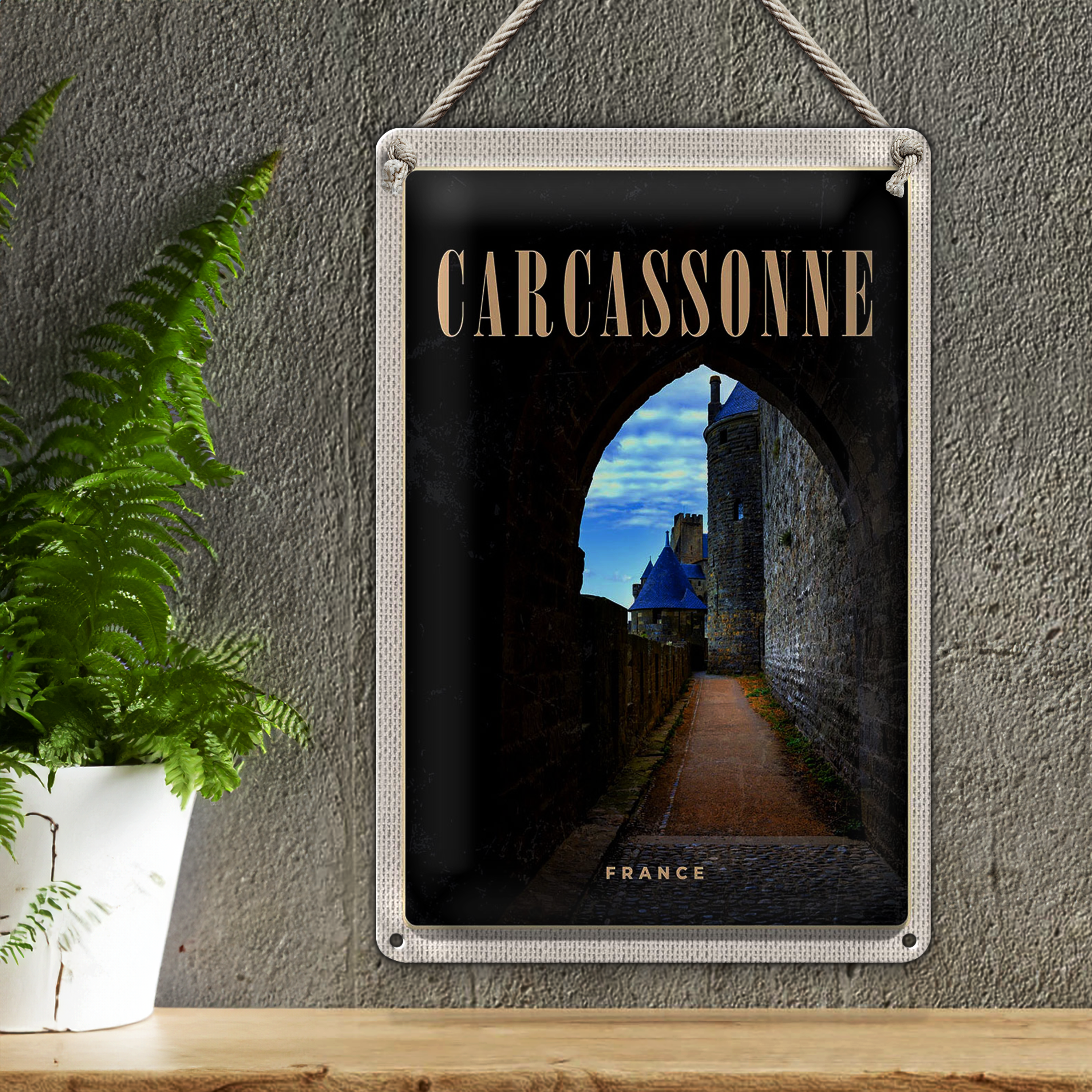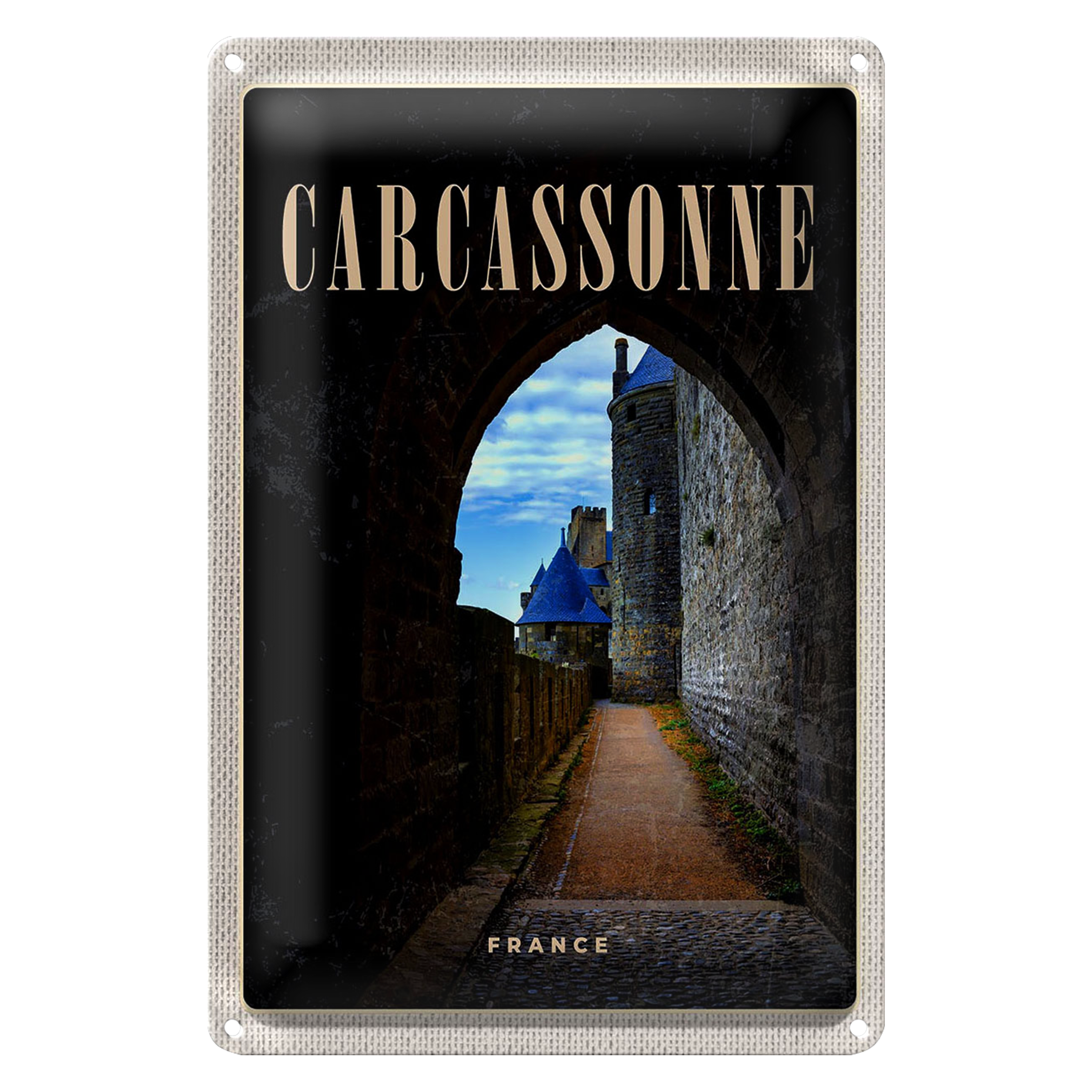 Blechschild Reise 20x30cm Carcassonne France Burg Altstadt