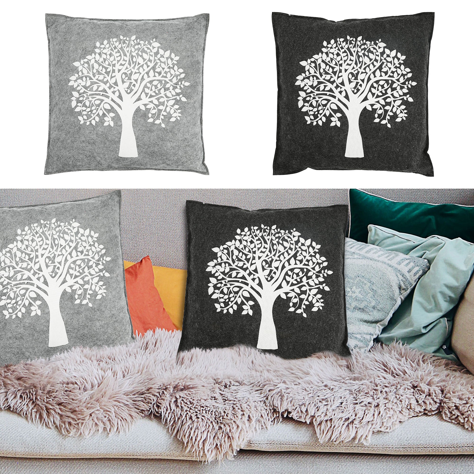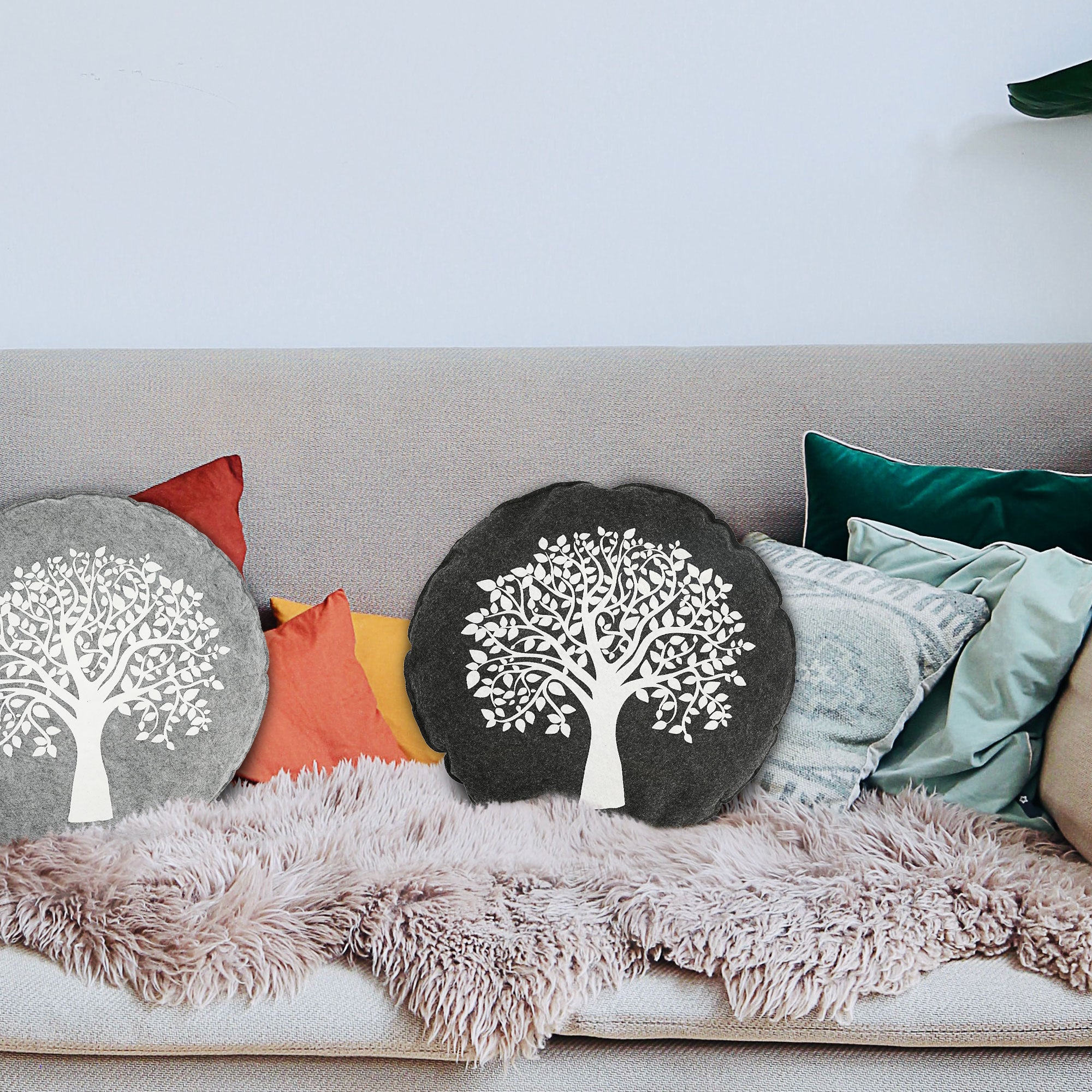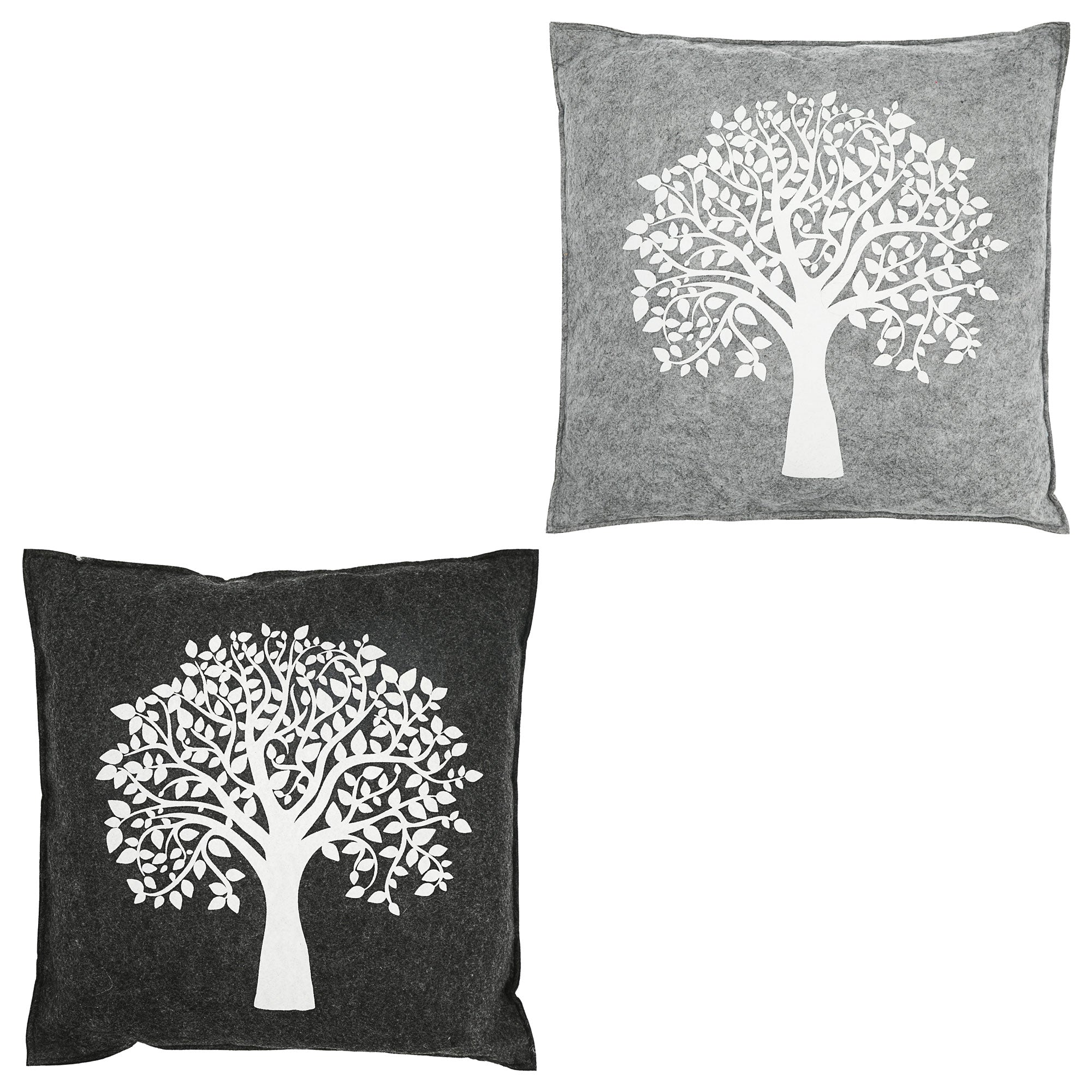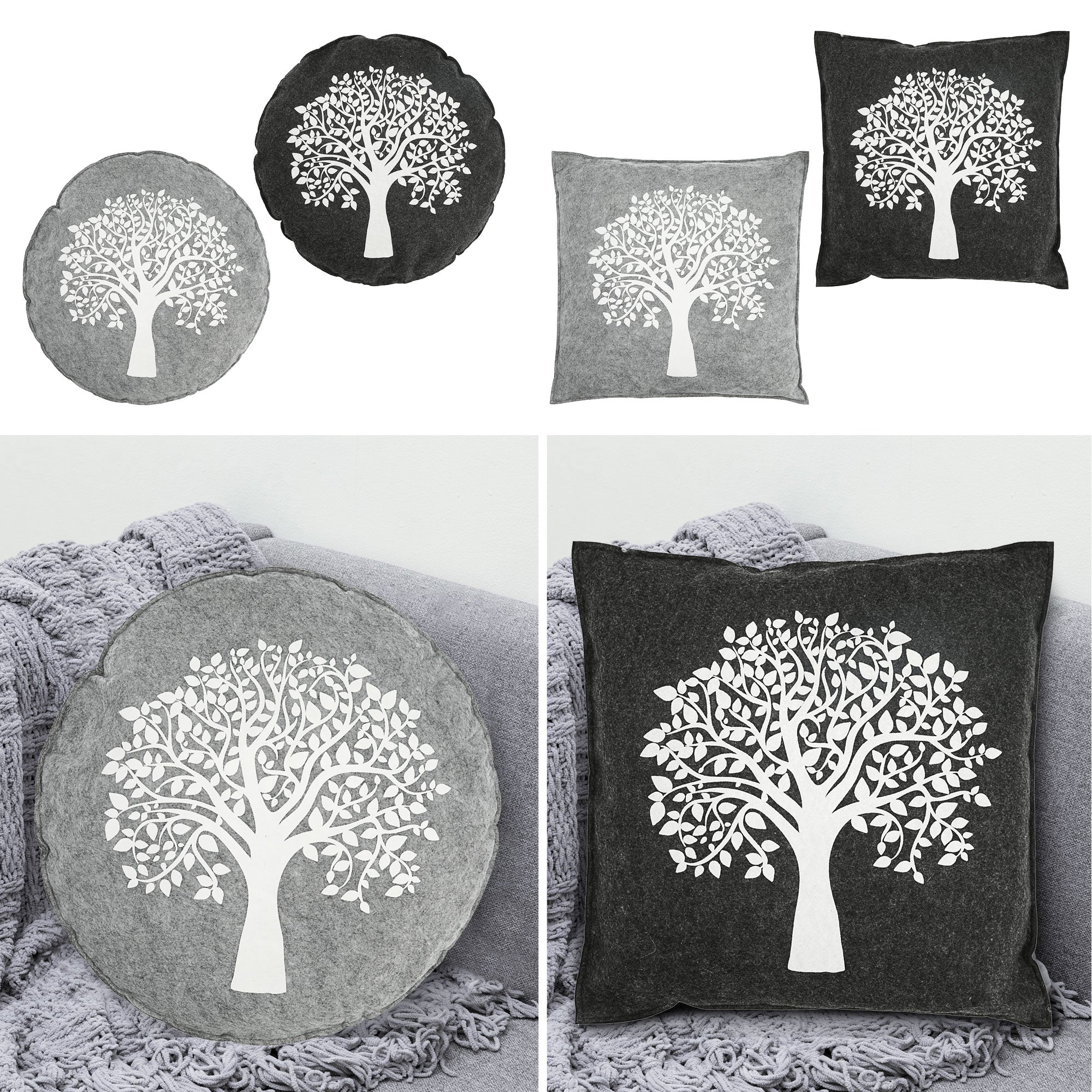 2x Kissen Aufdruck "Lebensbaum" hell dunkelgrau Filz quadratisch/rund 38x38cm Sofakissen Dekokissen