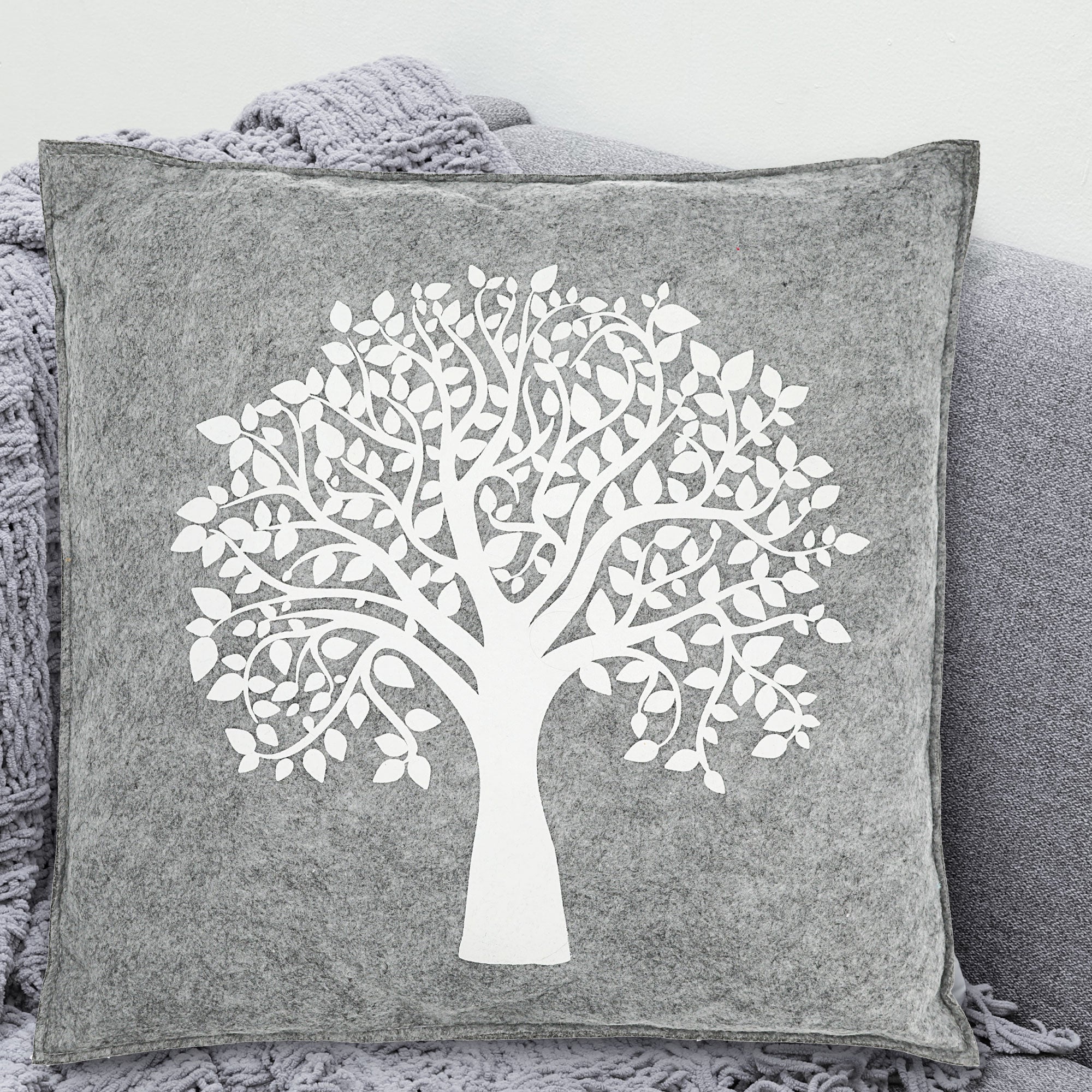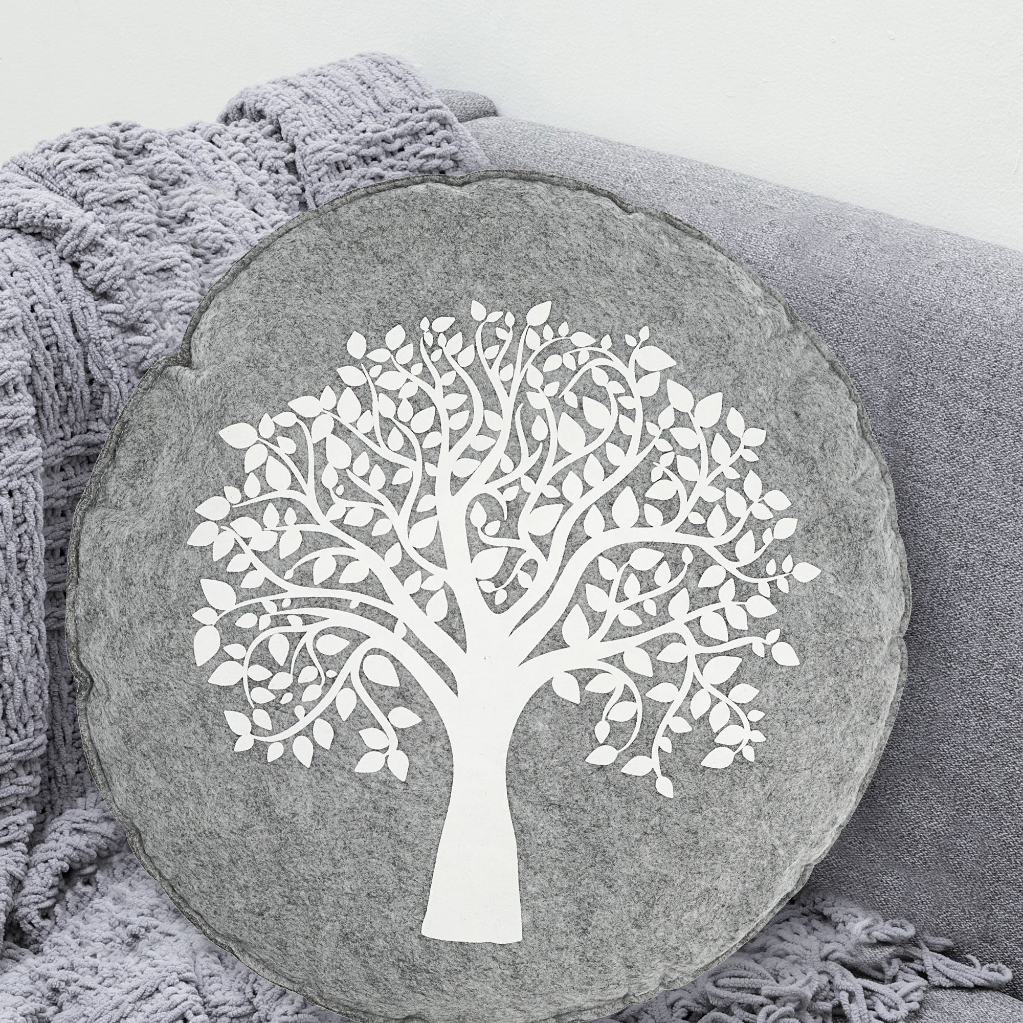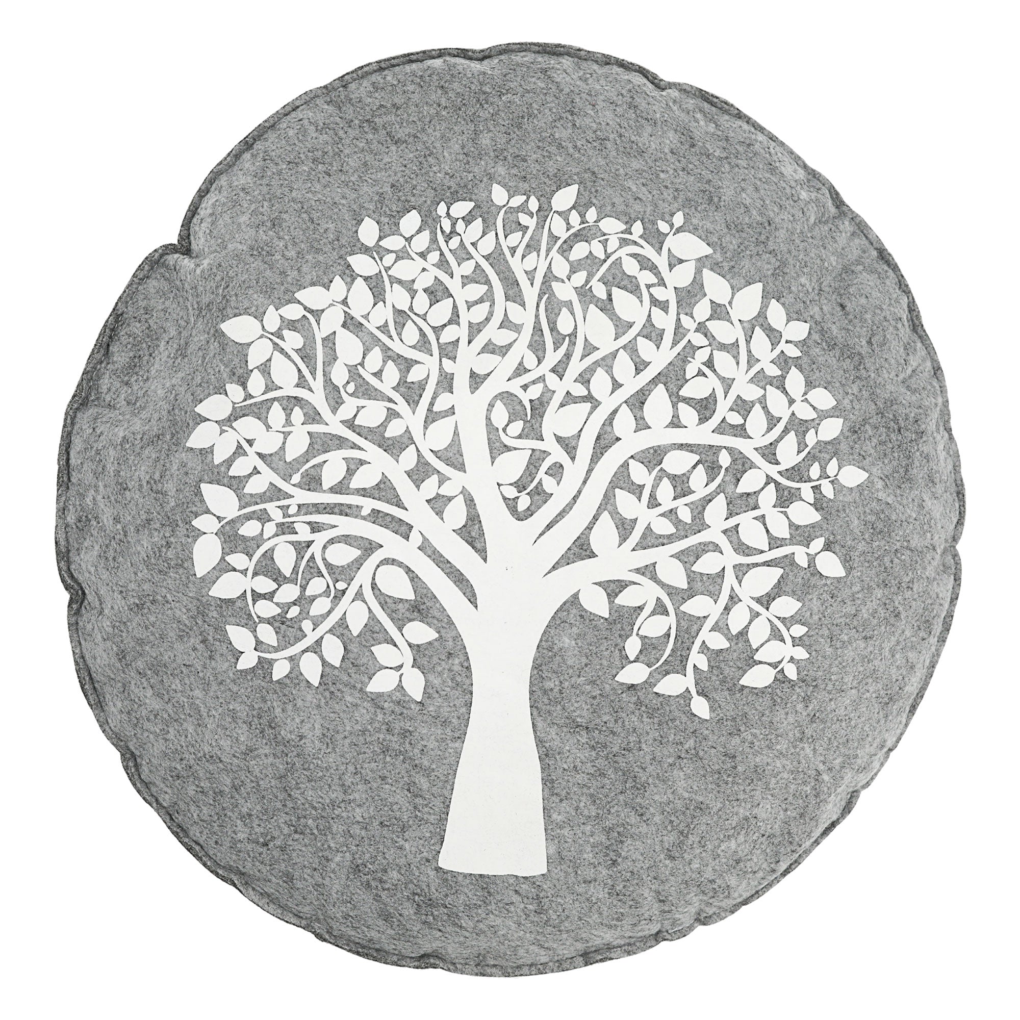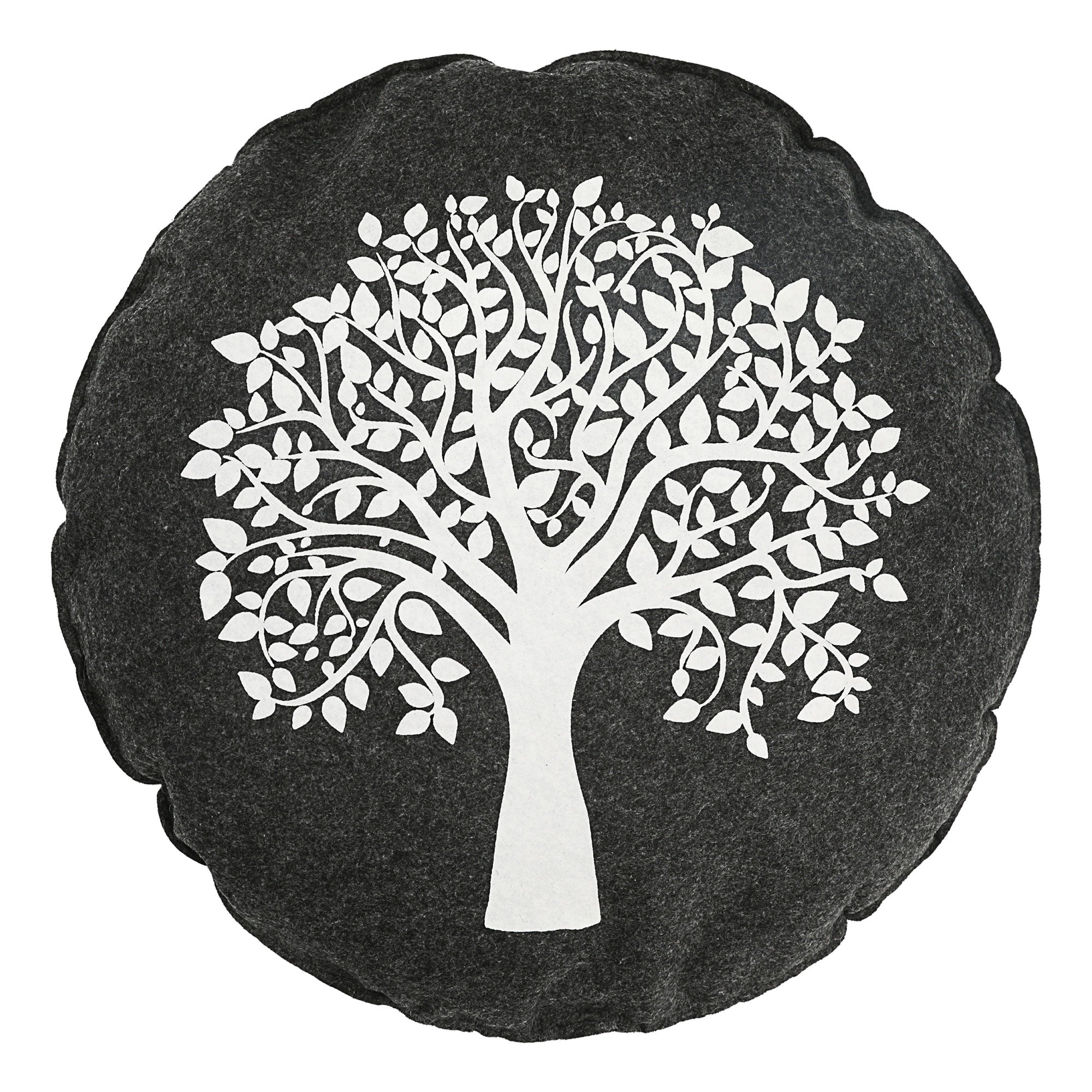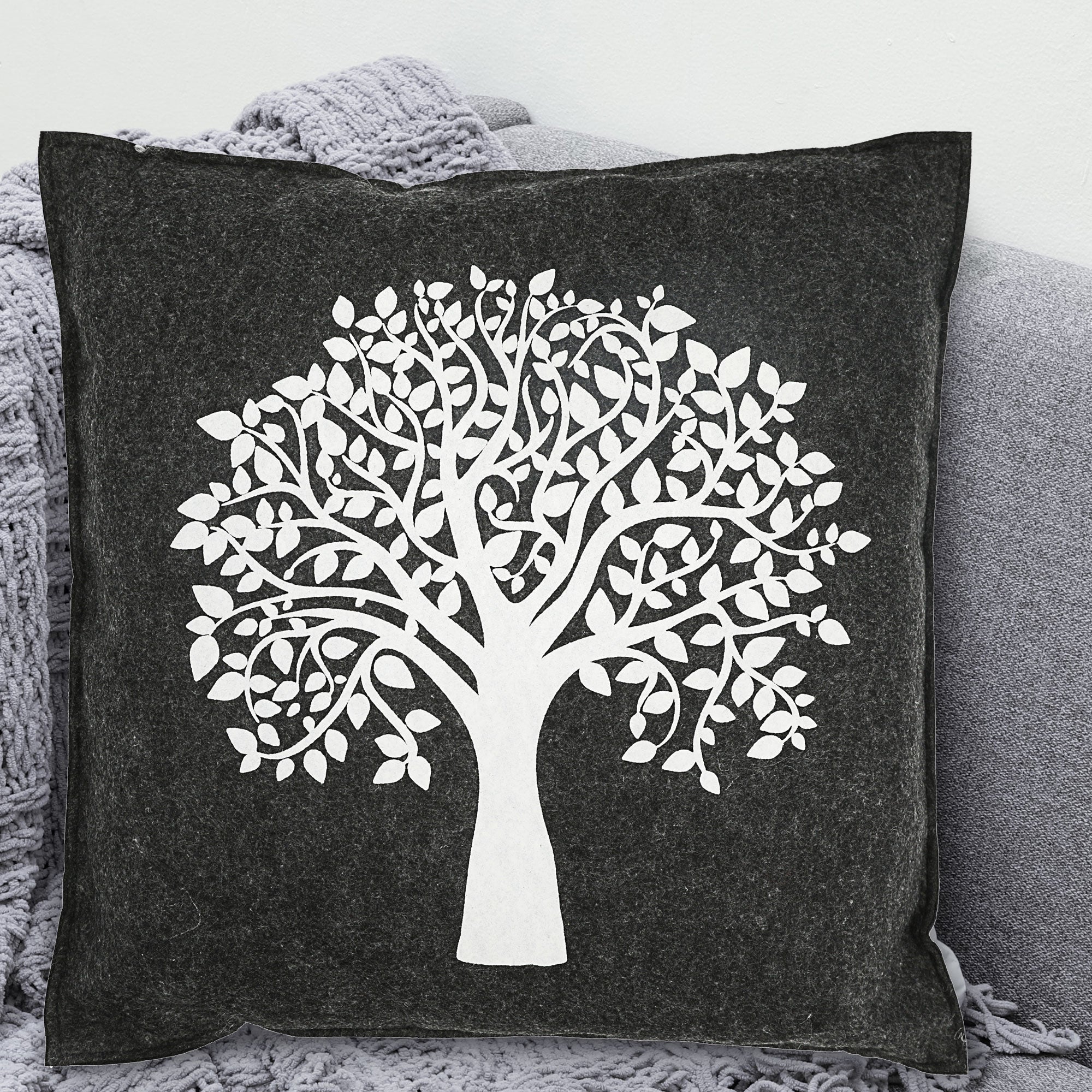 2x Kissen Aufdruck "Lebensbaum" hell dunkelgrau Filz quadratisch/rund 38x38cm Sofakissen Dekokissen