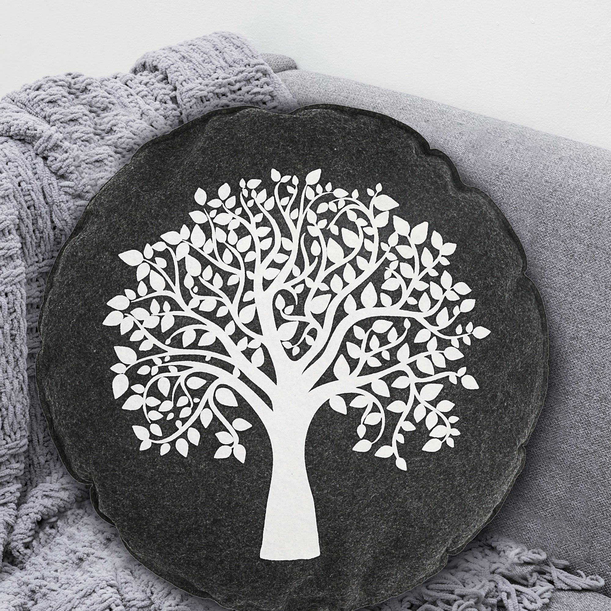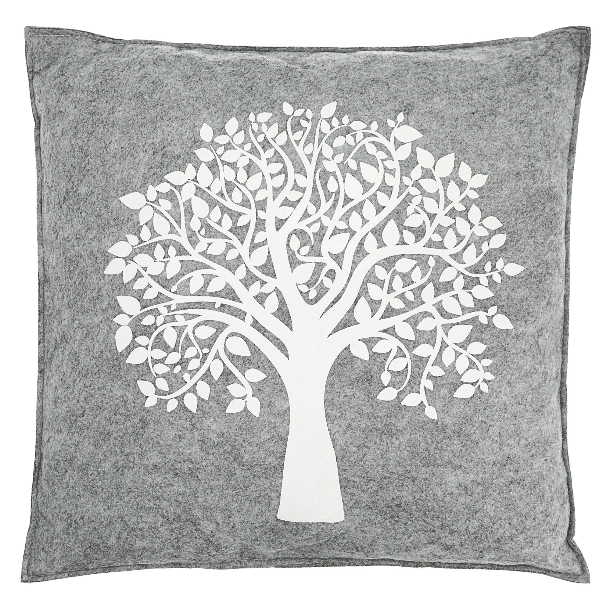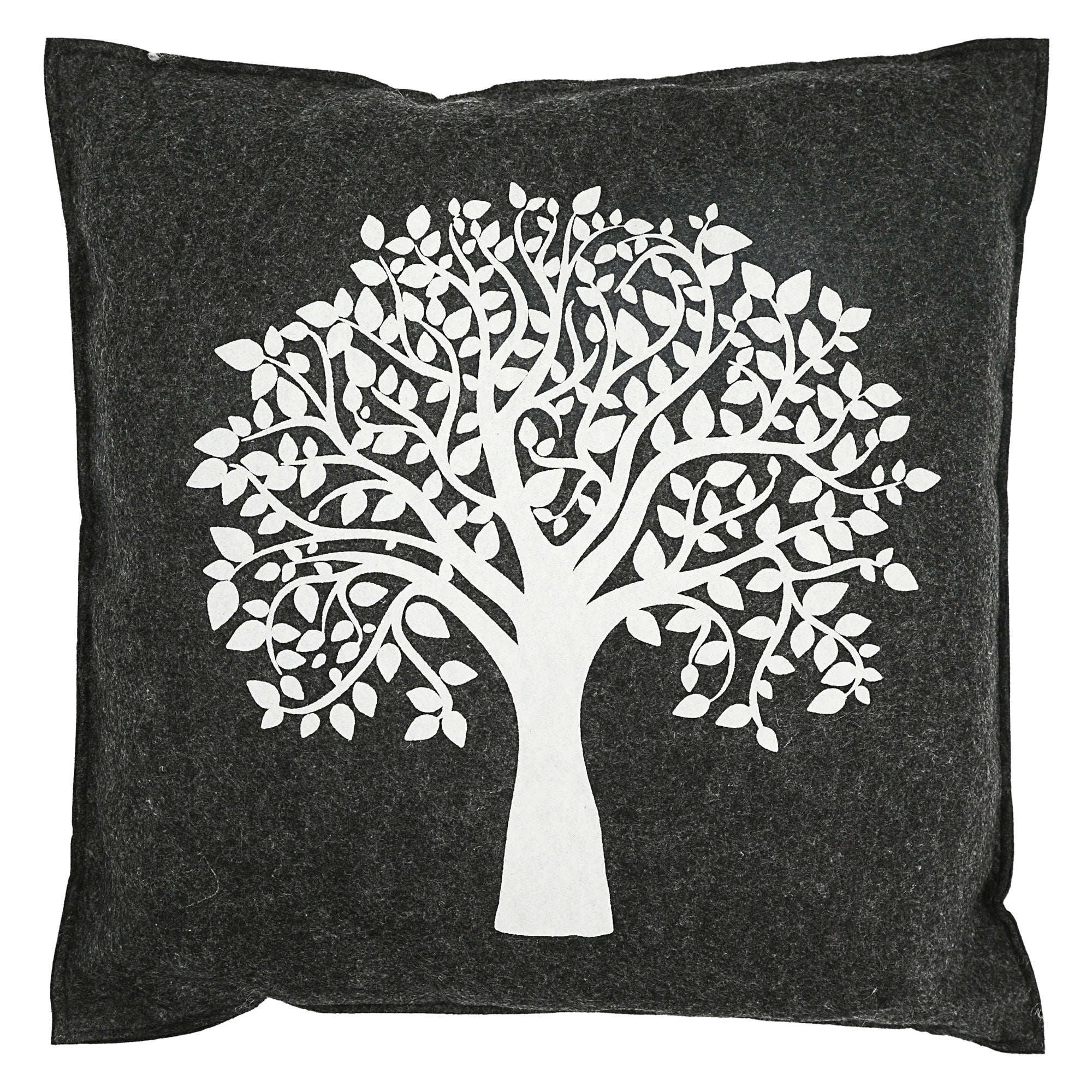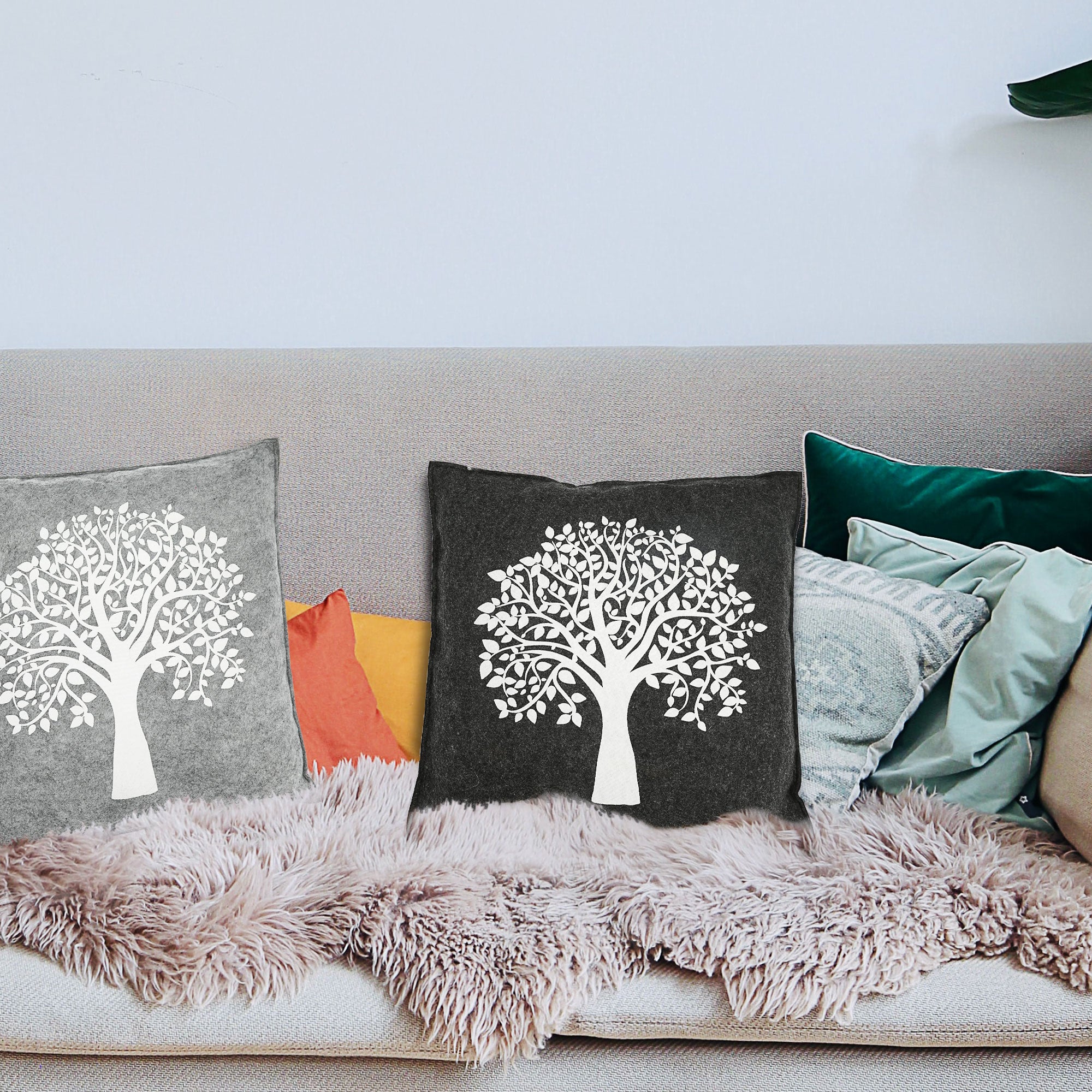 2x Kissen Aufdruck "Lebensbaum" hell dunkelgrau Filz quadratisch/rund 38x38cm Sofakissen Dekokissen