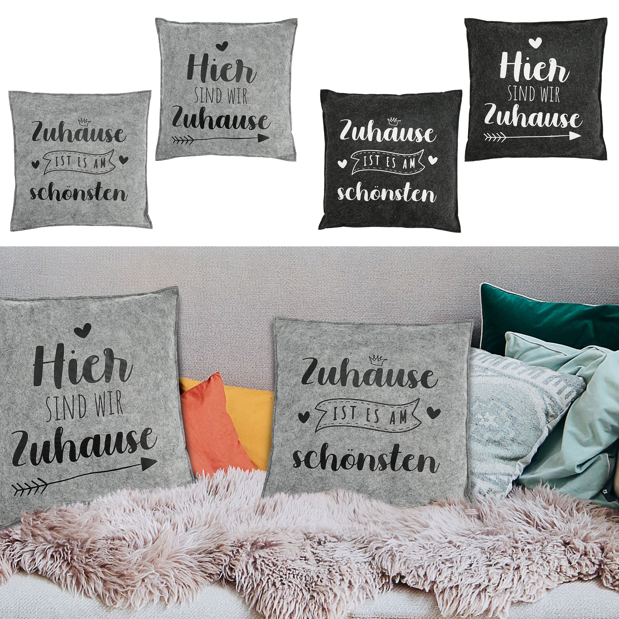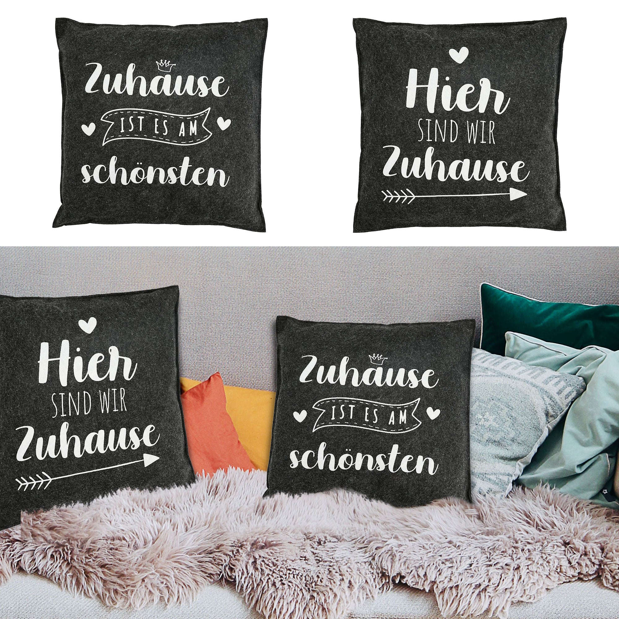| 2er Set Kissen Filz Spruch Zuhause | ||||||||||||