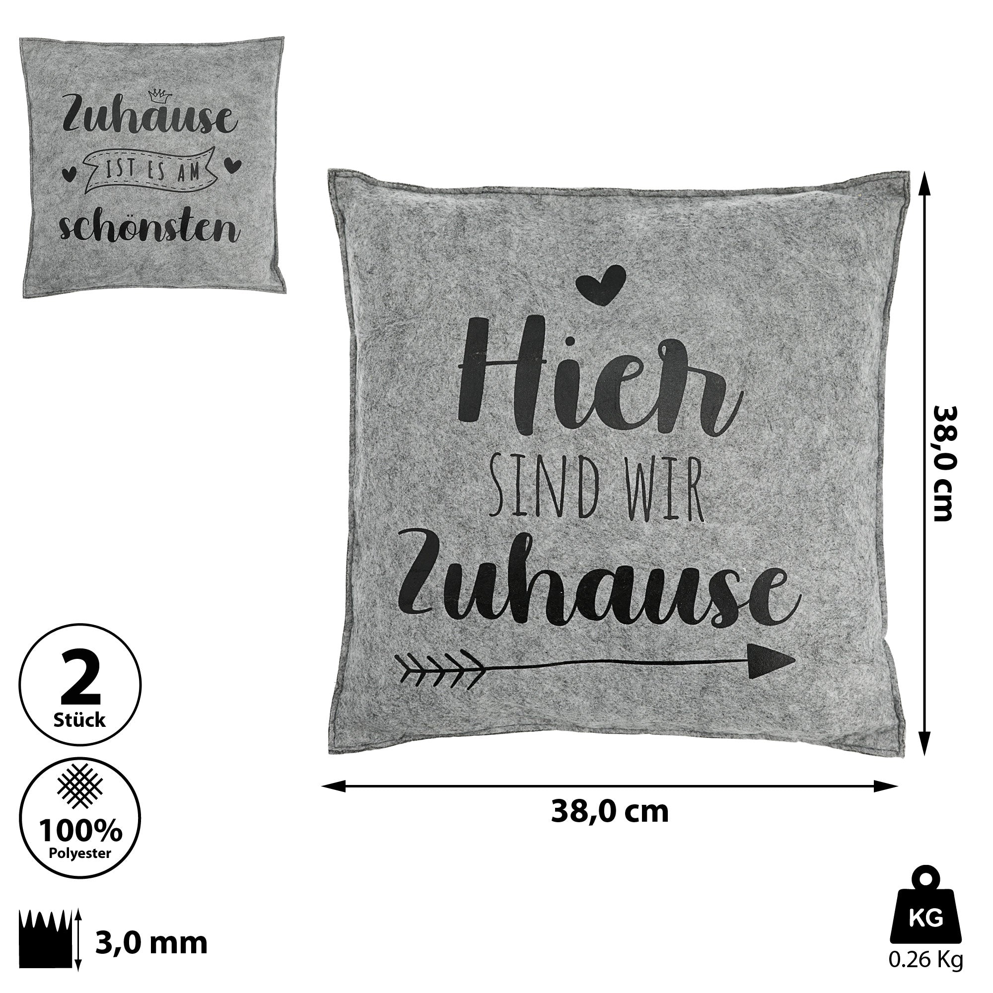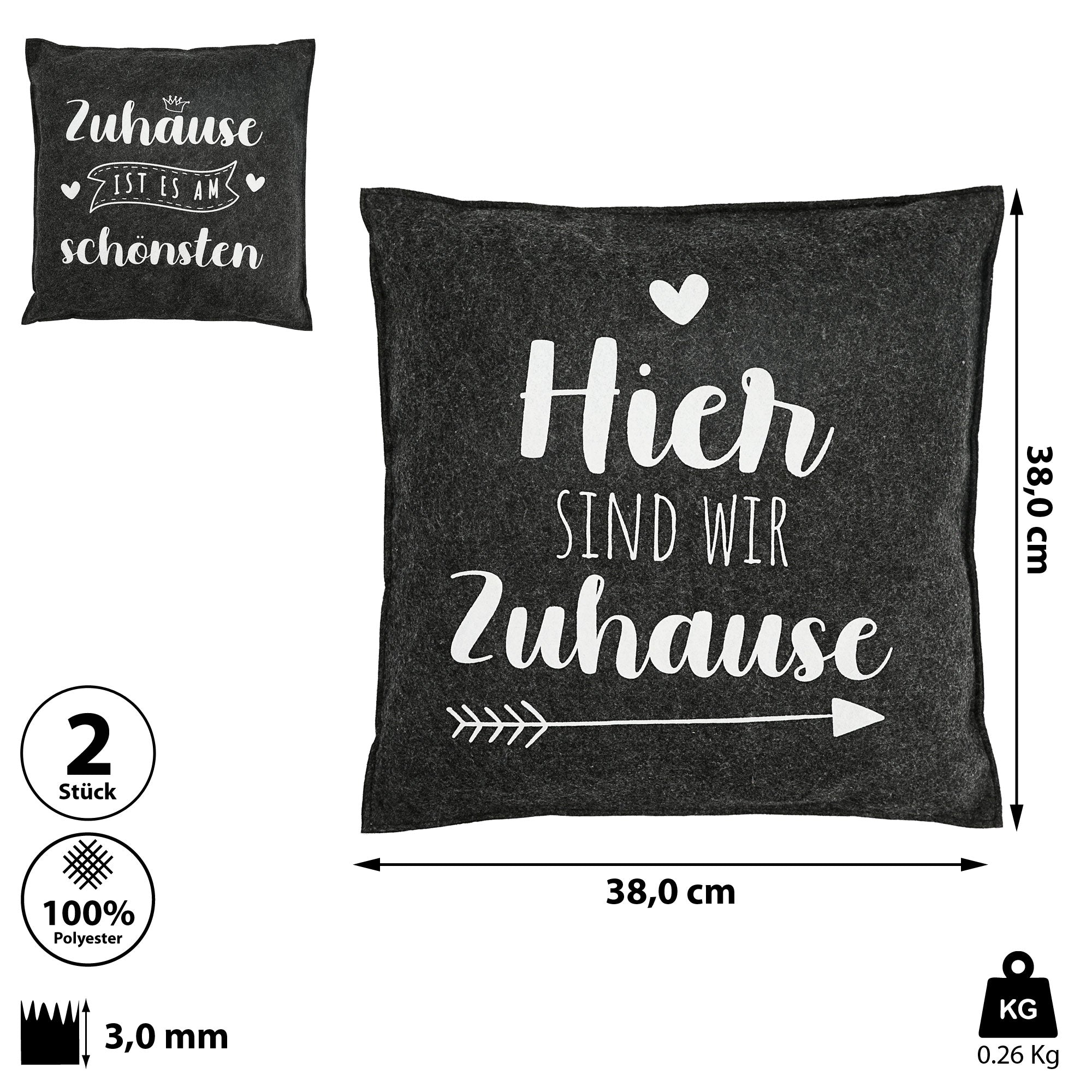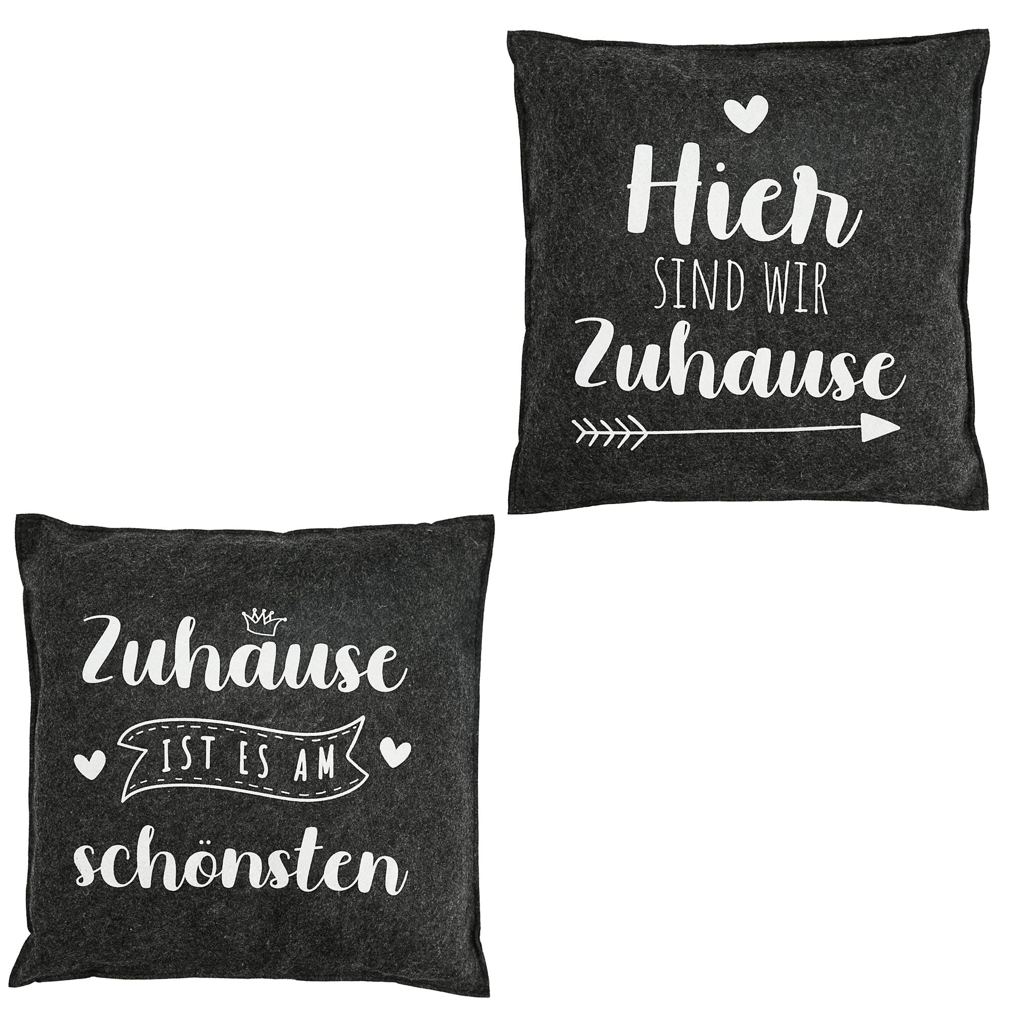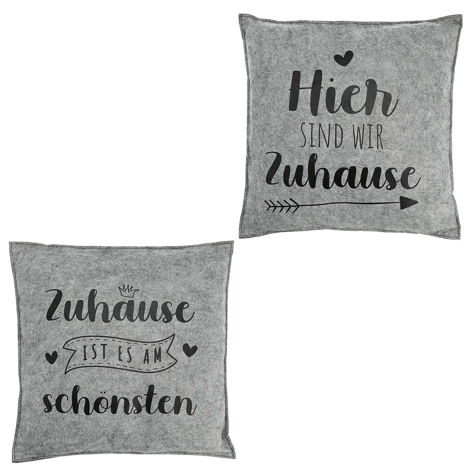 Kissen Filz 2er Set Spruch Zuhause hell-/dunkelgrau 38x38cm Kuschelkissen Sofakissen Dekokissen