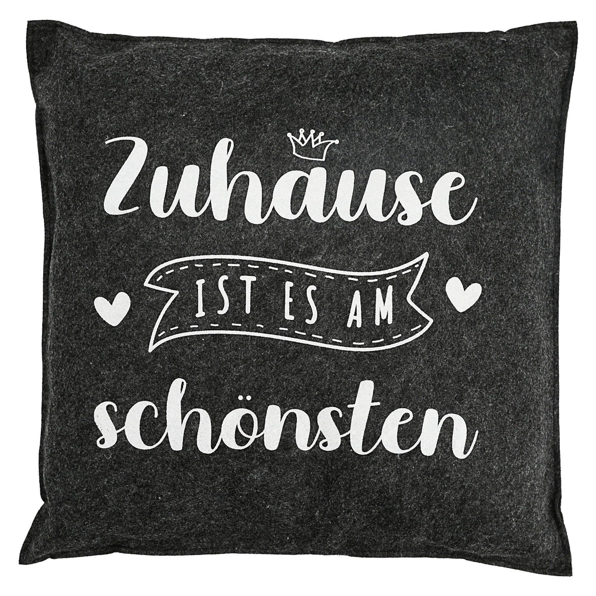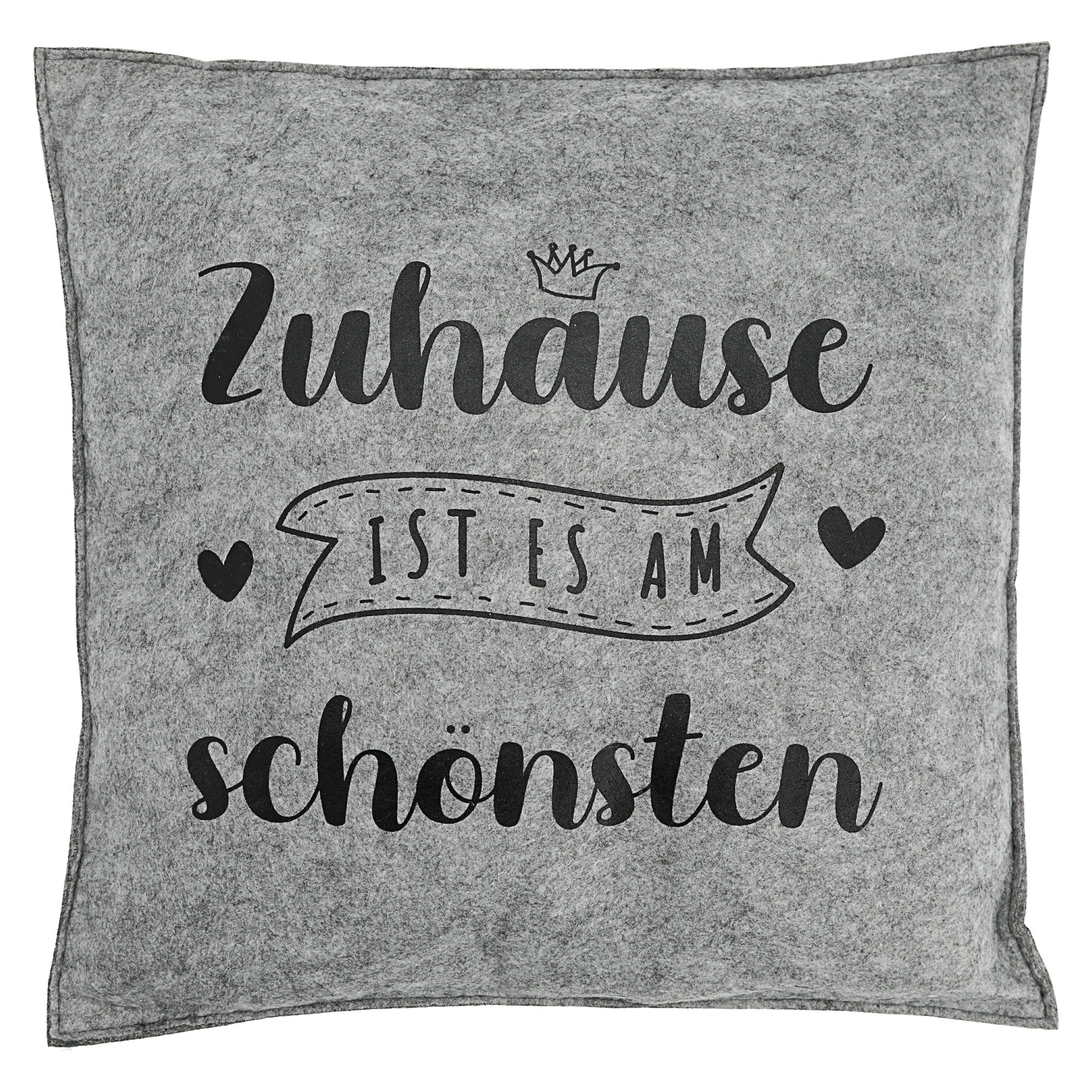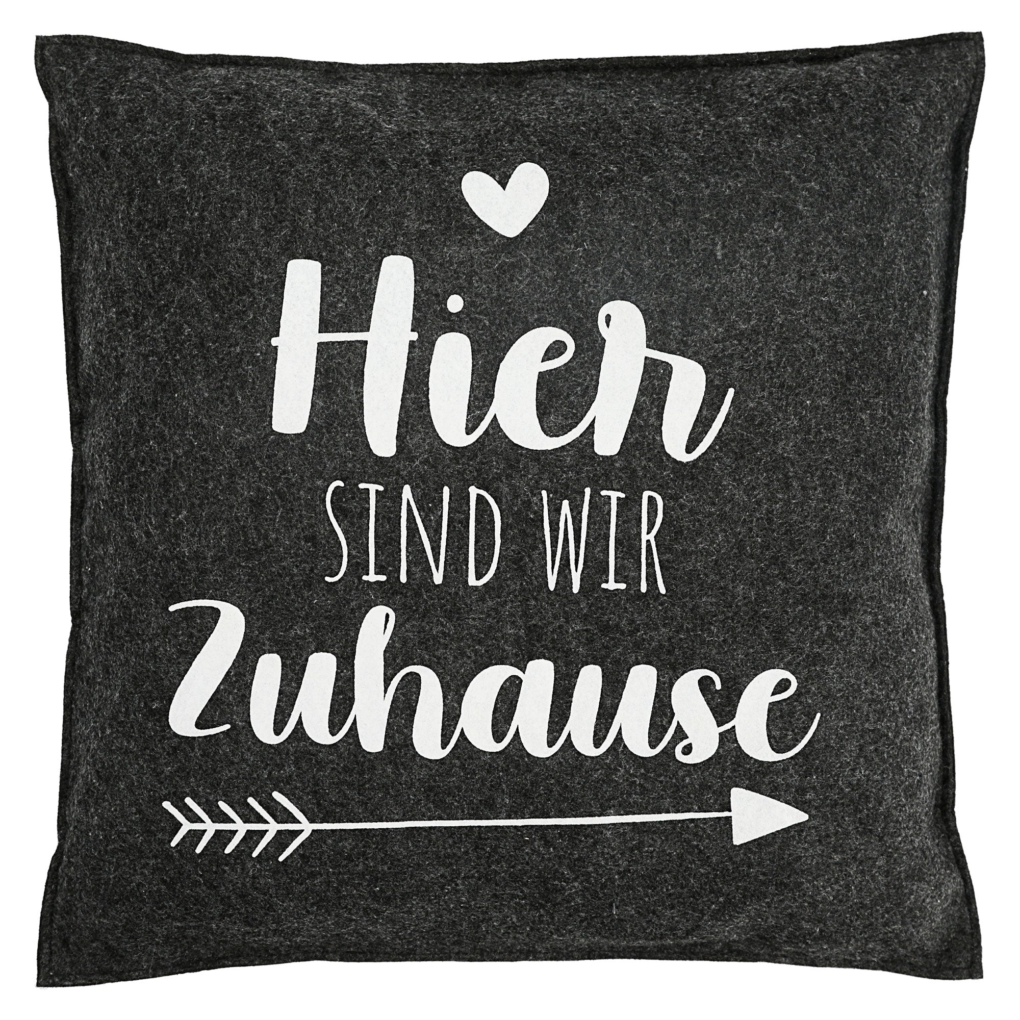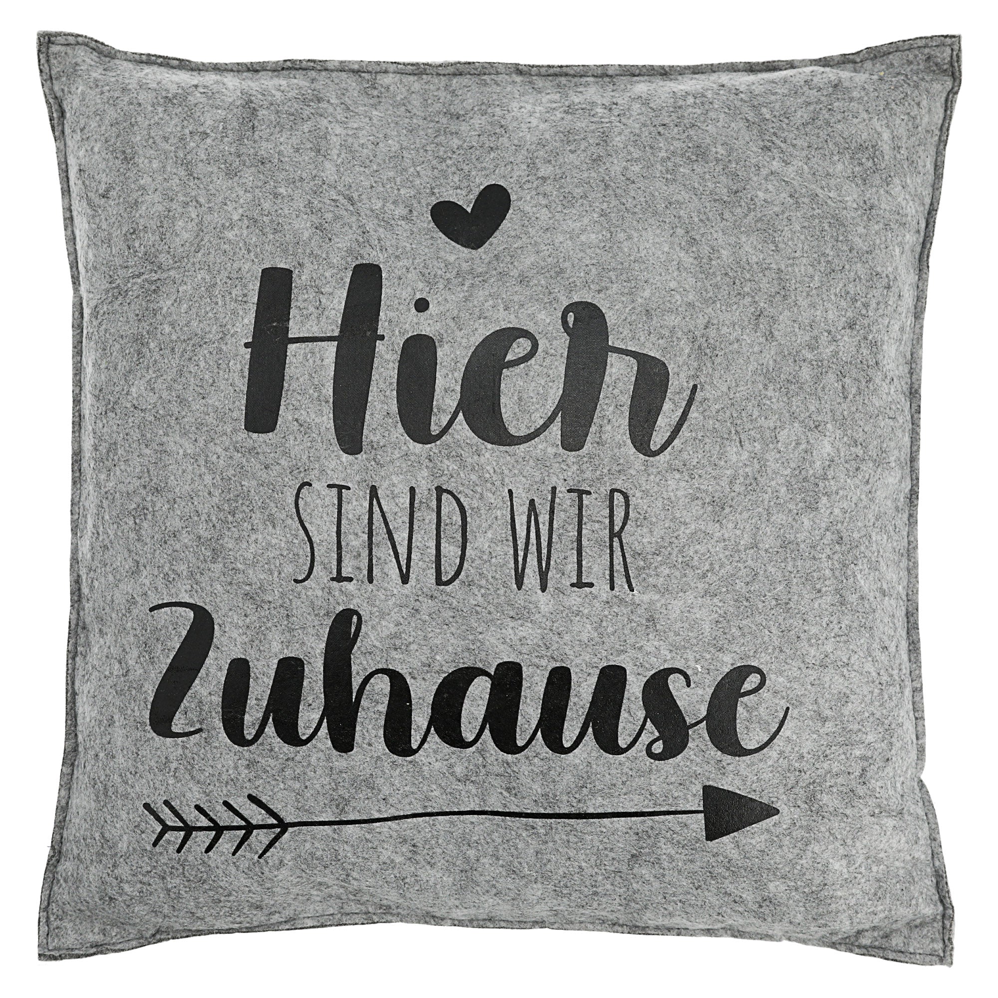 Kissen Filz 2er Set Spruch Zuhause hell-/dunkelgrau 38x38cm Kuschelkissen Sofakissen Dekokissen
