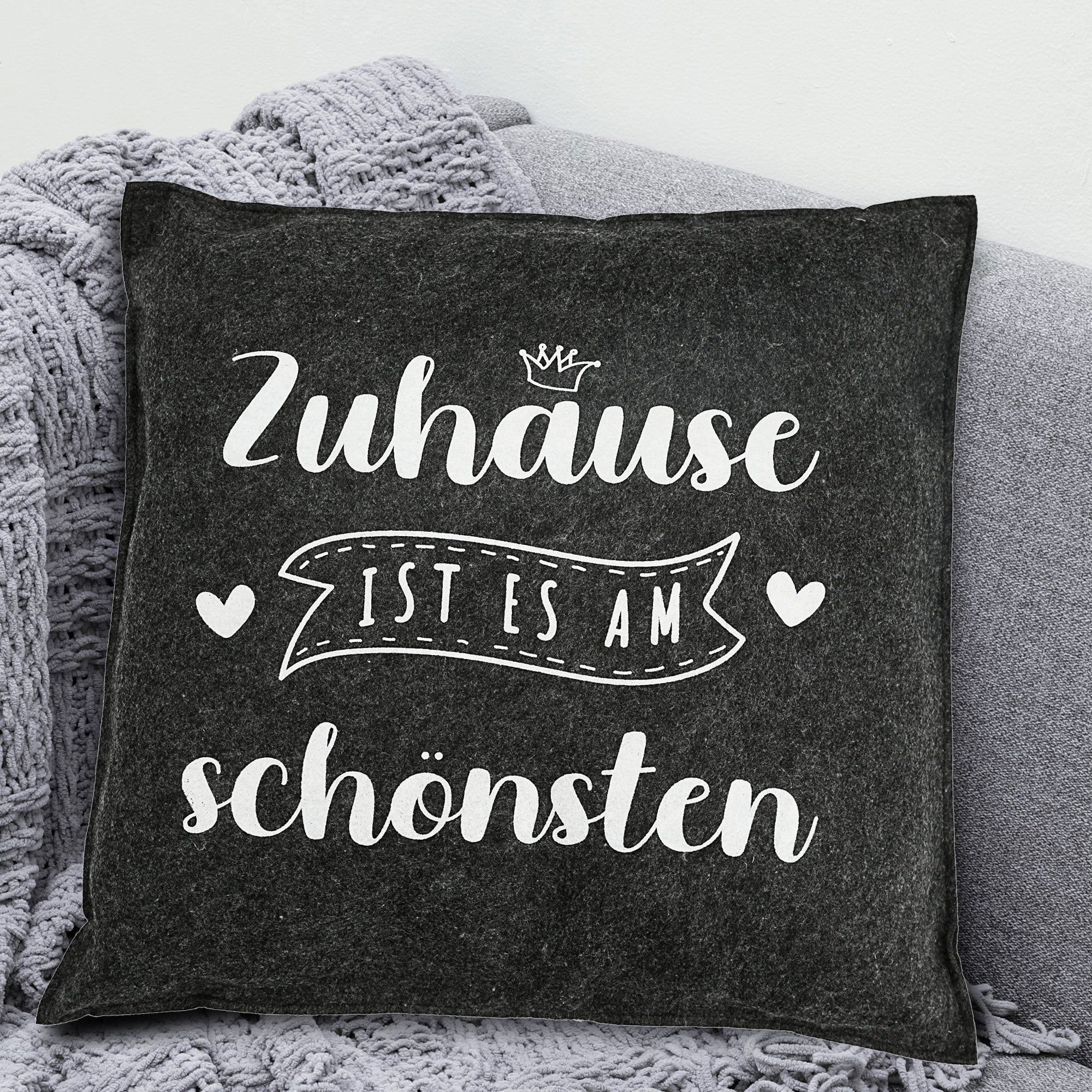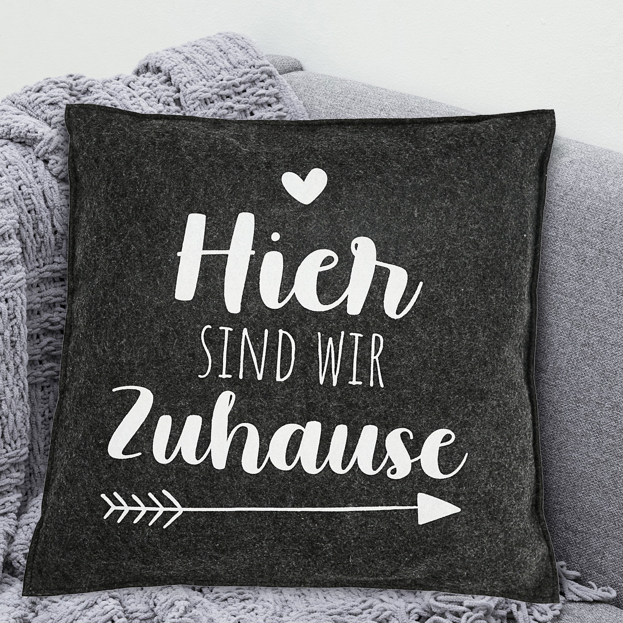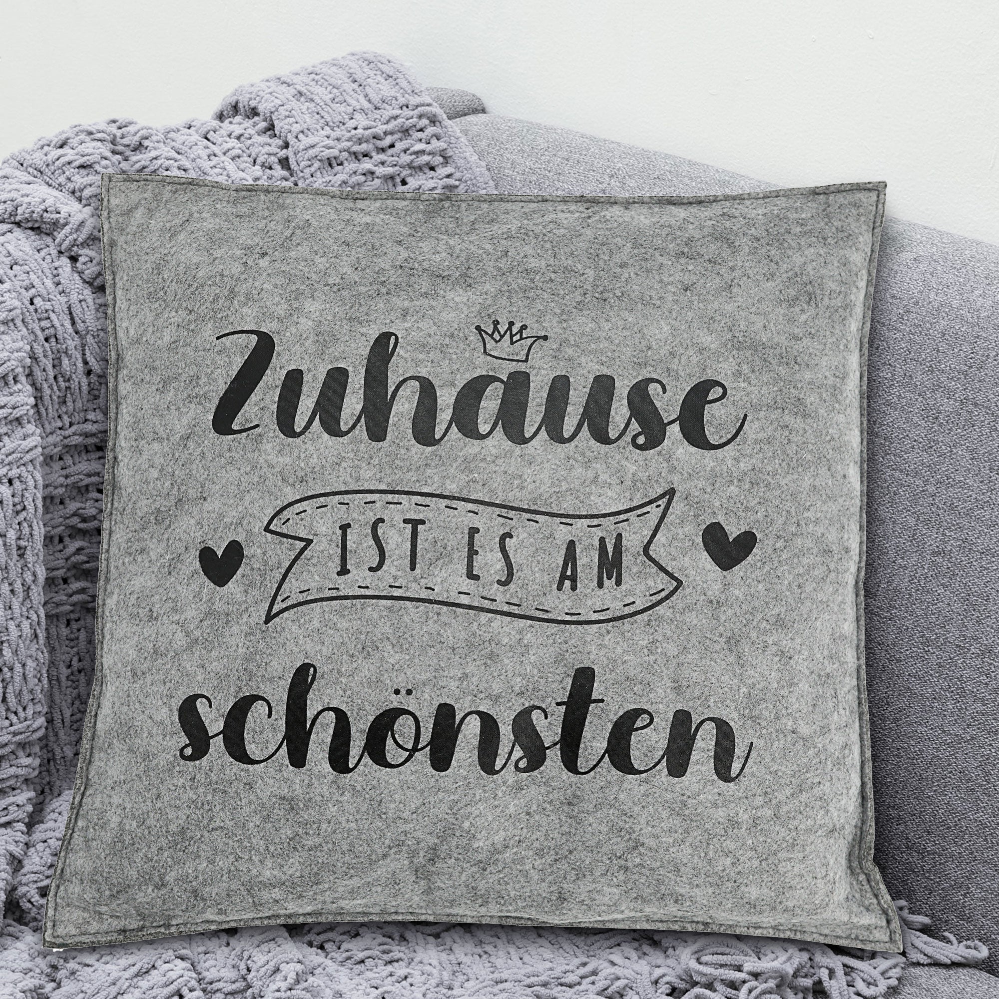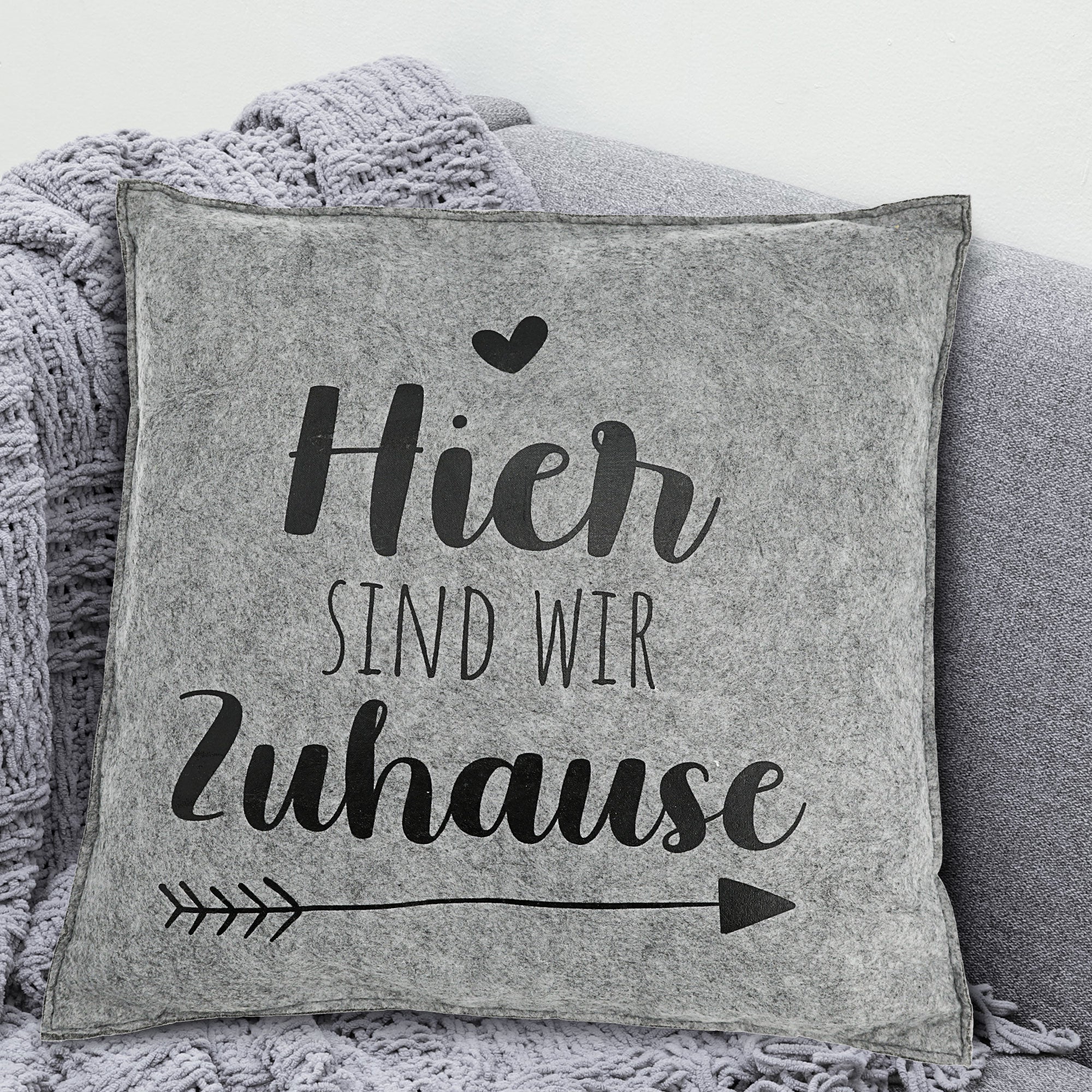 Kissen Filz 2er Set Spruch Zuhause hell-/dunkelgrau 38x38cm Kuschelkissen Sofakissen Dekokissen
