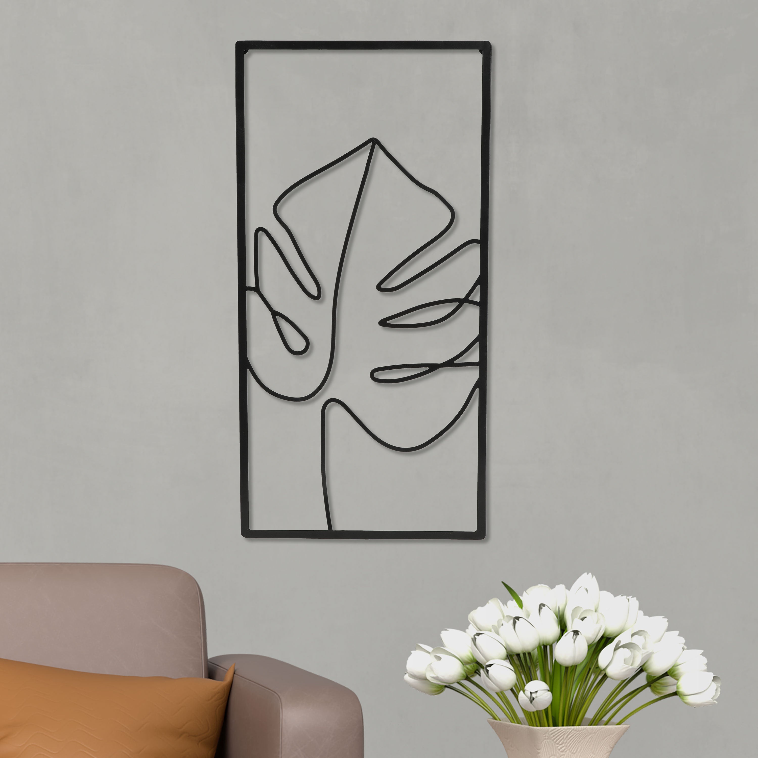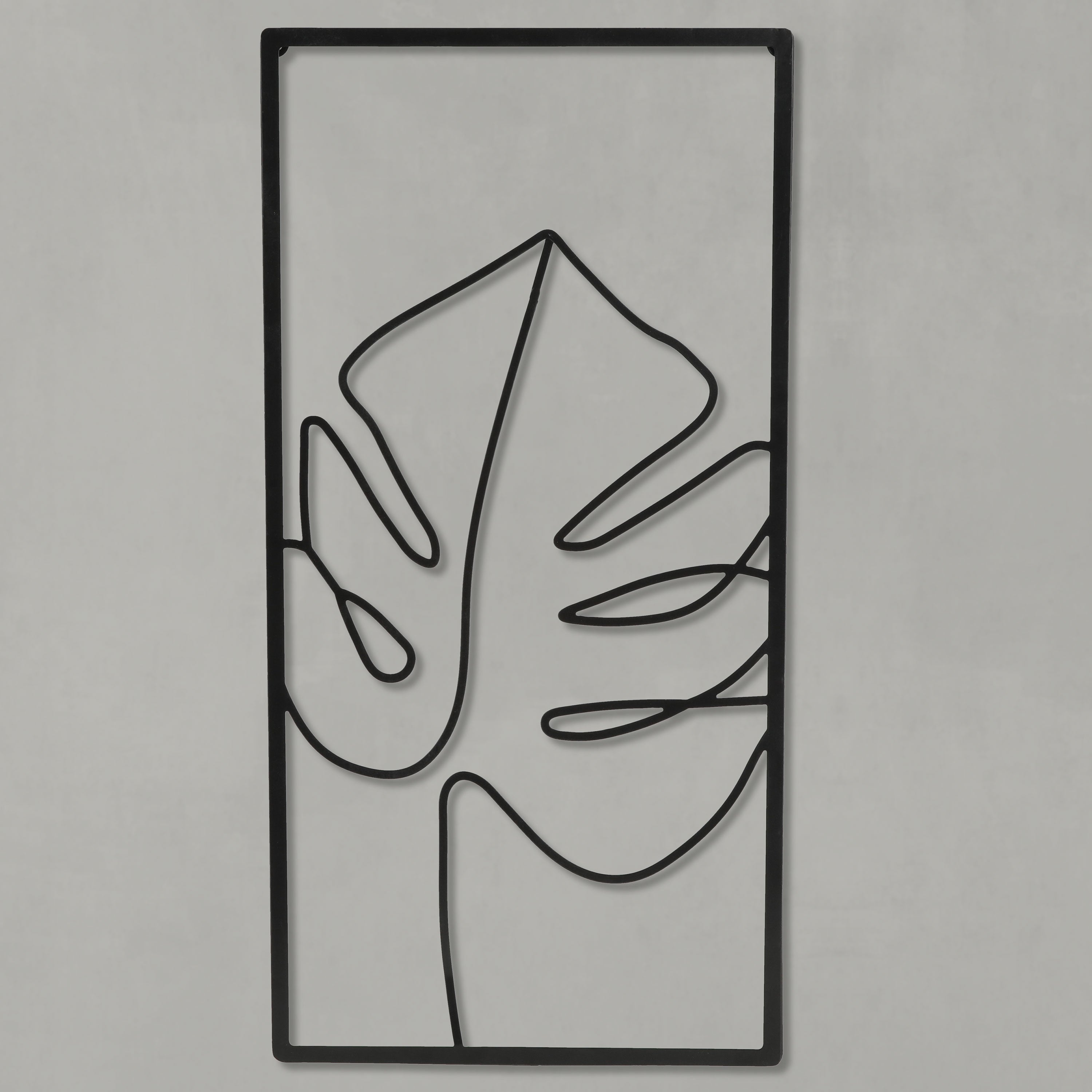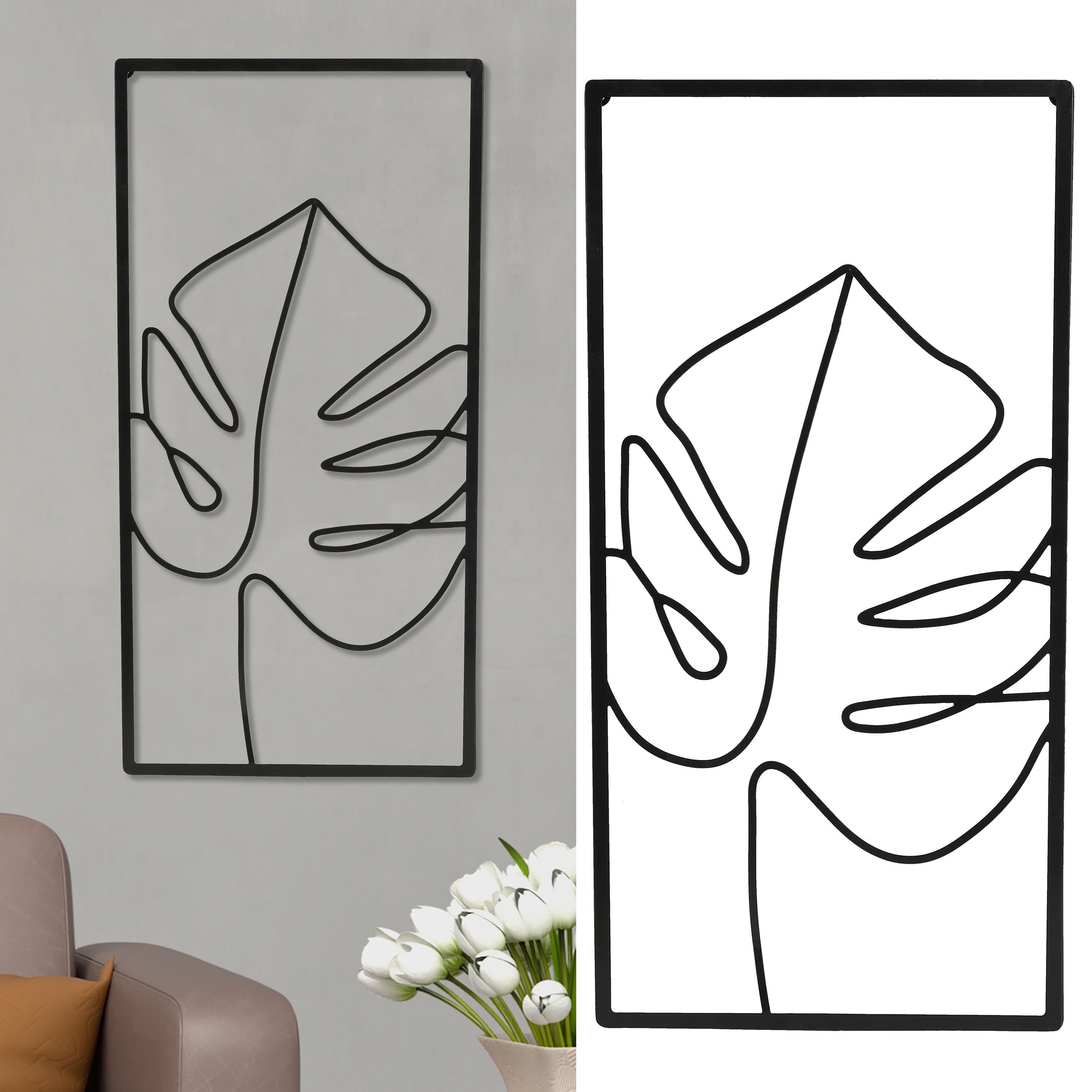 Metallbild "Ahornblatt" Skulptur 3D Wandbild Rahmen Eisen 30x60cm schwarz Ahornblatt