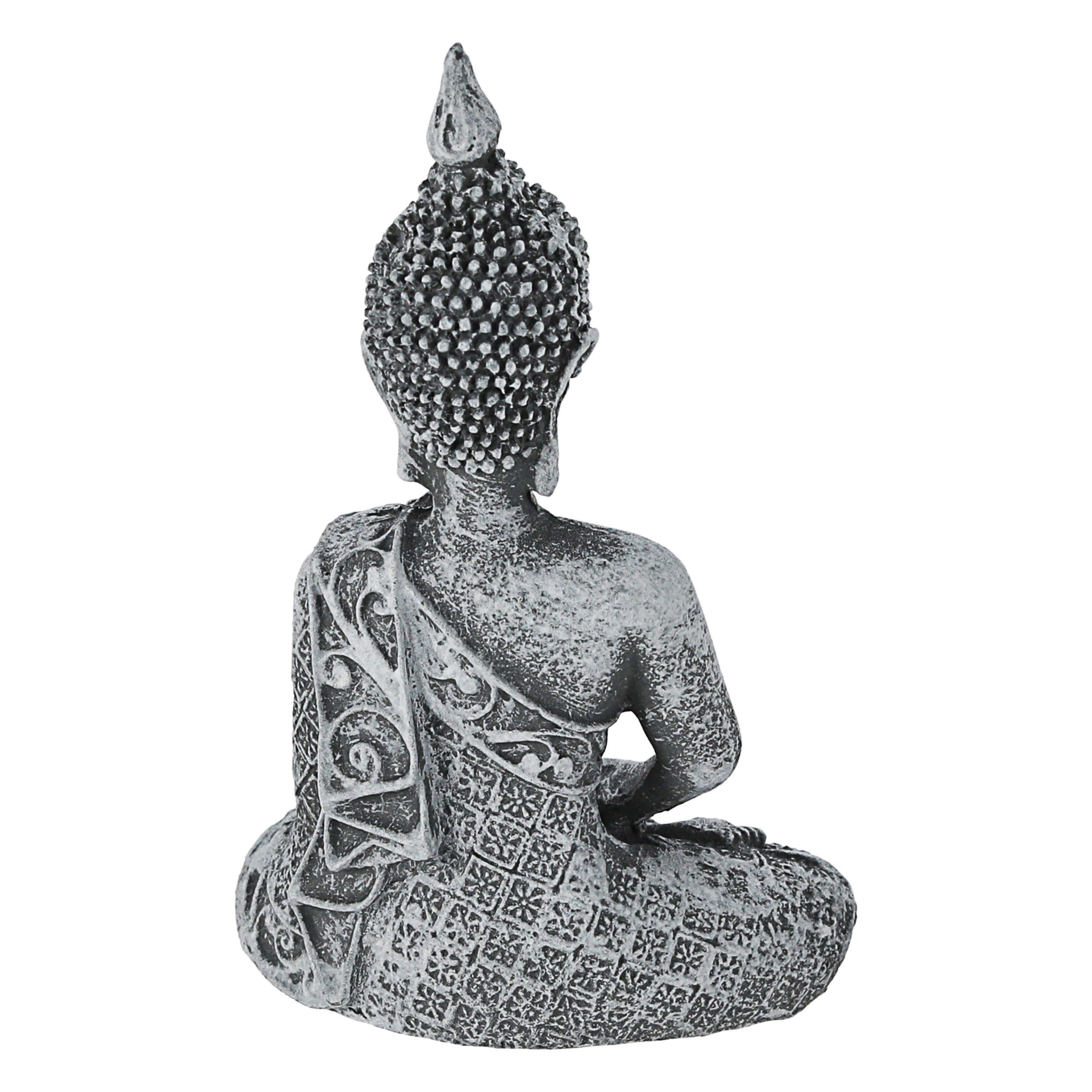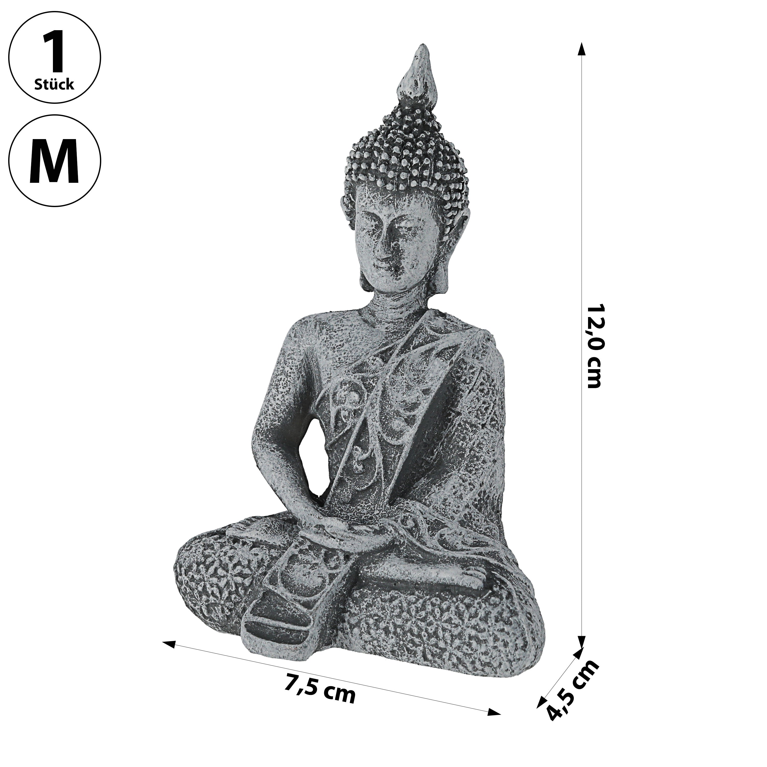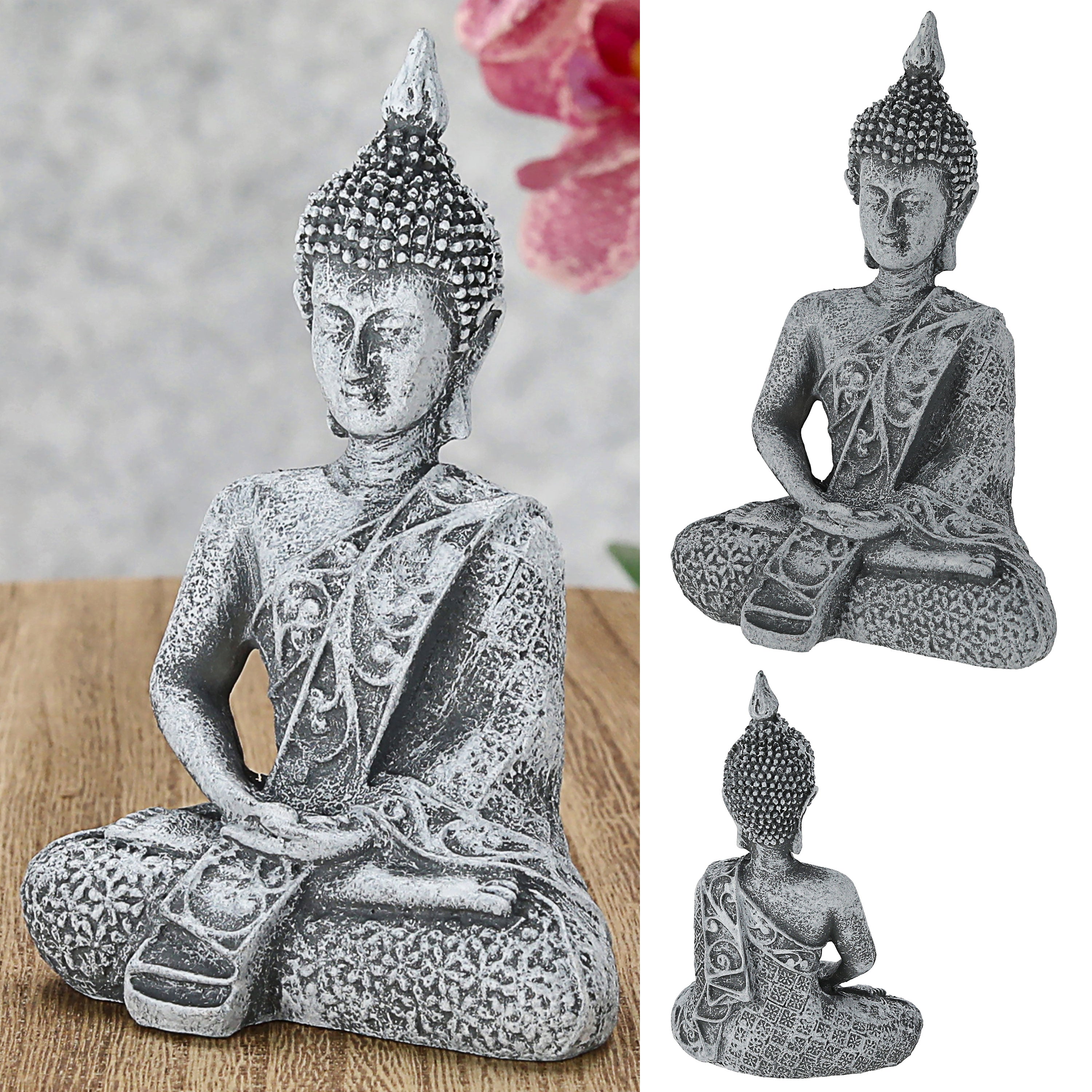 Buddha sitzend 7,5x12x4,5cm silber Polyresin Statue Skulptur Feng Shui Lotussitz Wohndeko Meditation