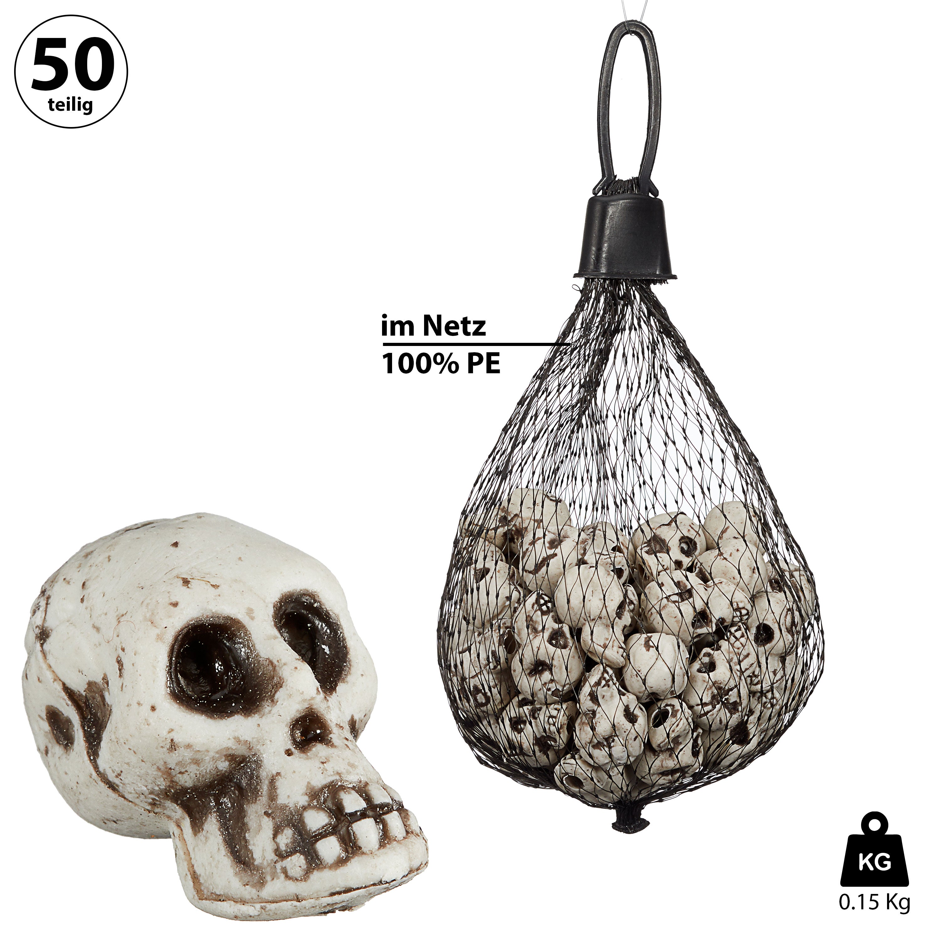 Totenköpfe Streudeko 50tlg Kunststoff 1,4x2,3x1,7cm Totenkopf Halloween Tischdeko Schädel Gruselparty