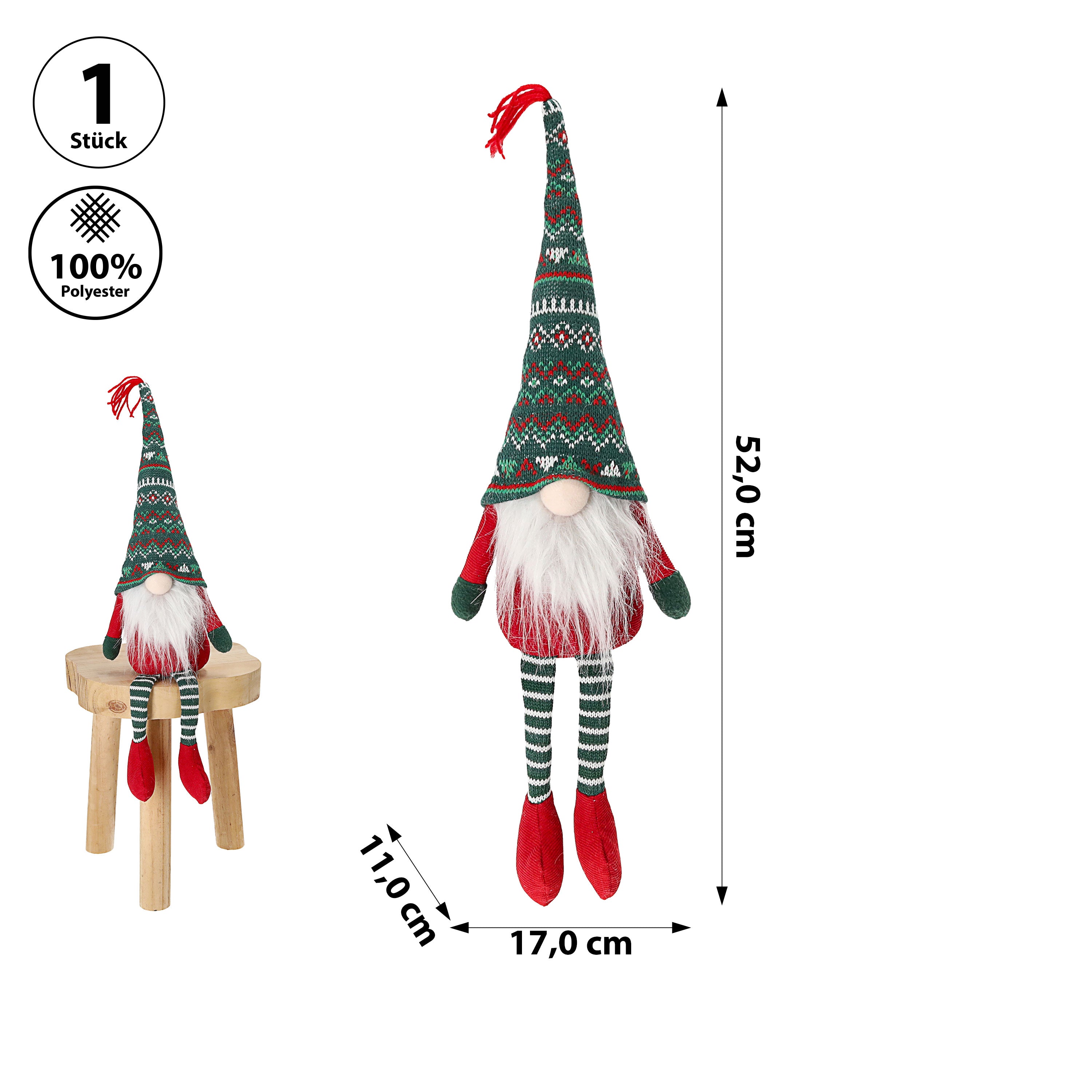 Wichtel 'Sterne' Kantenhocker Polyester 14x40x9cm rot weißKantensitzer Weihnachtswichtel funkelnde Sterne Adventsdeko Weihnachtsdeko Plüschfigur Wichtelmann