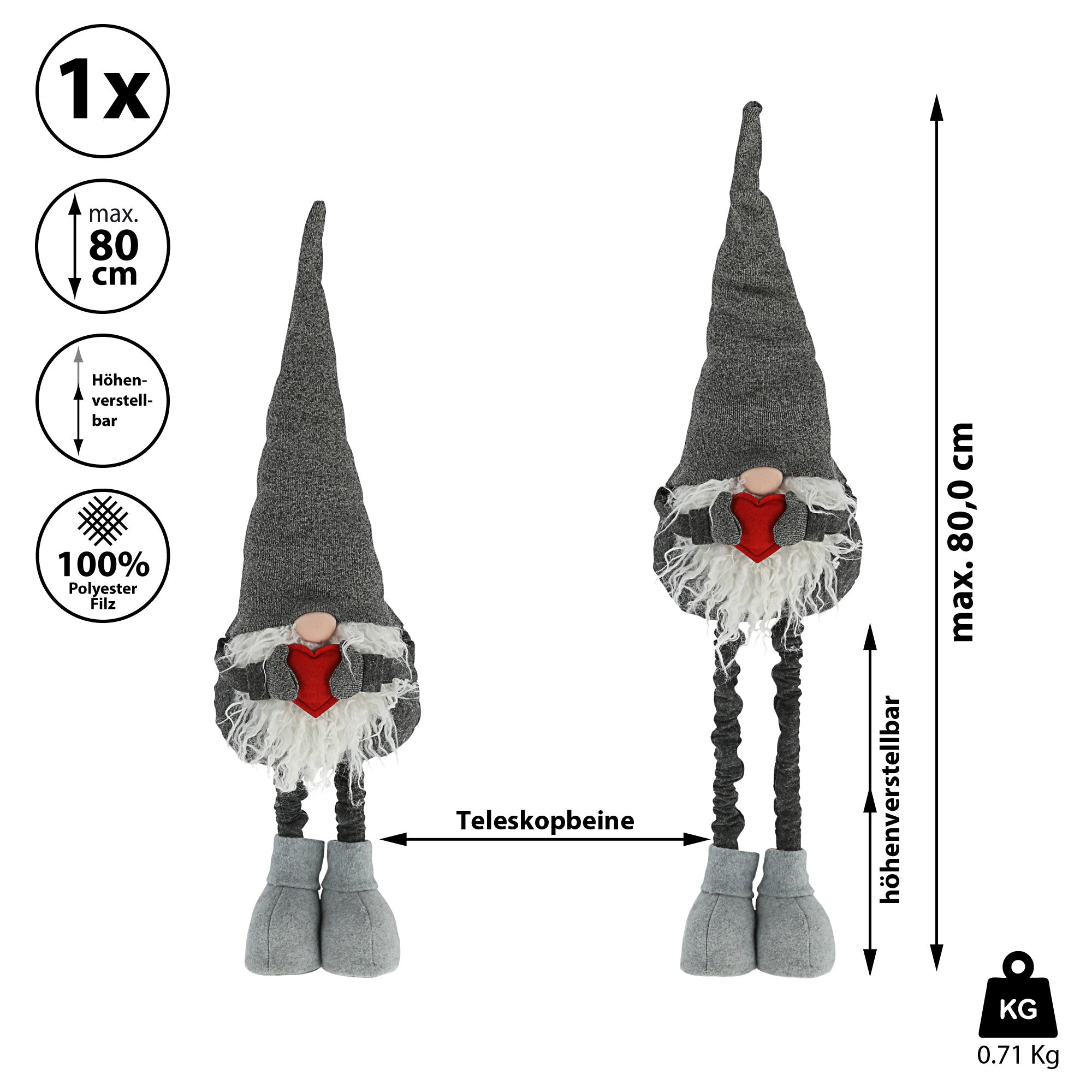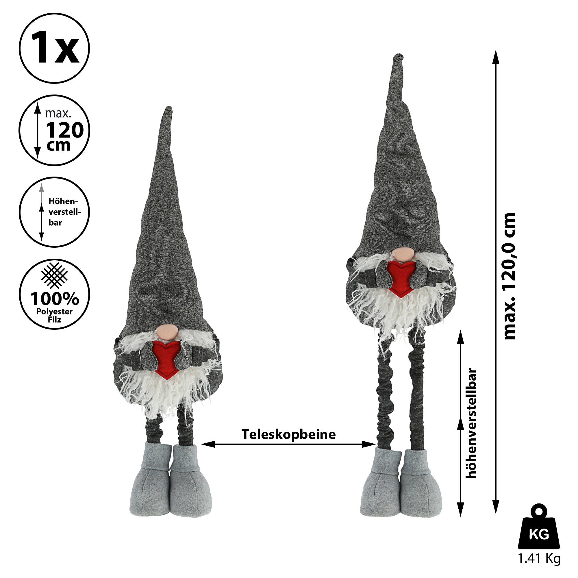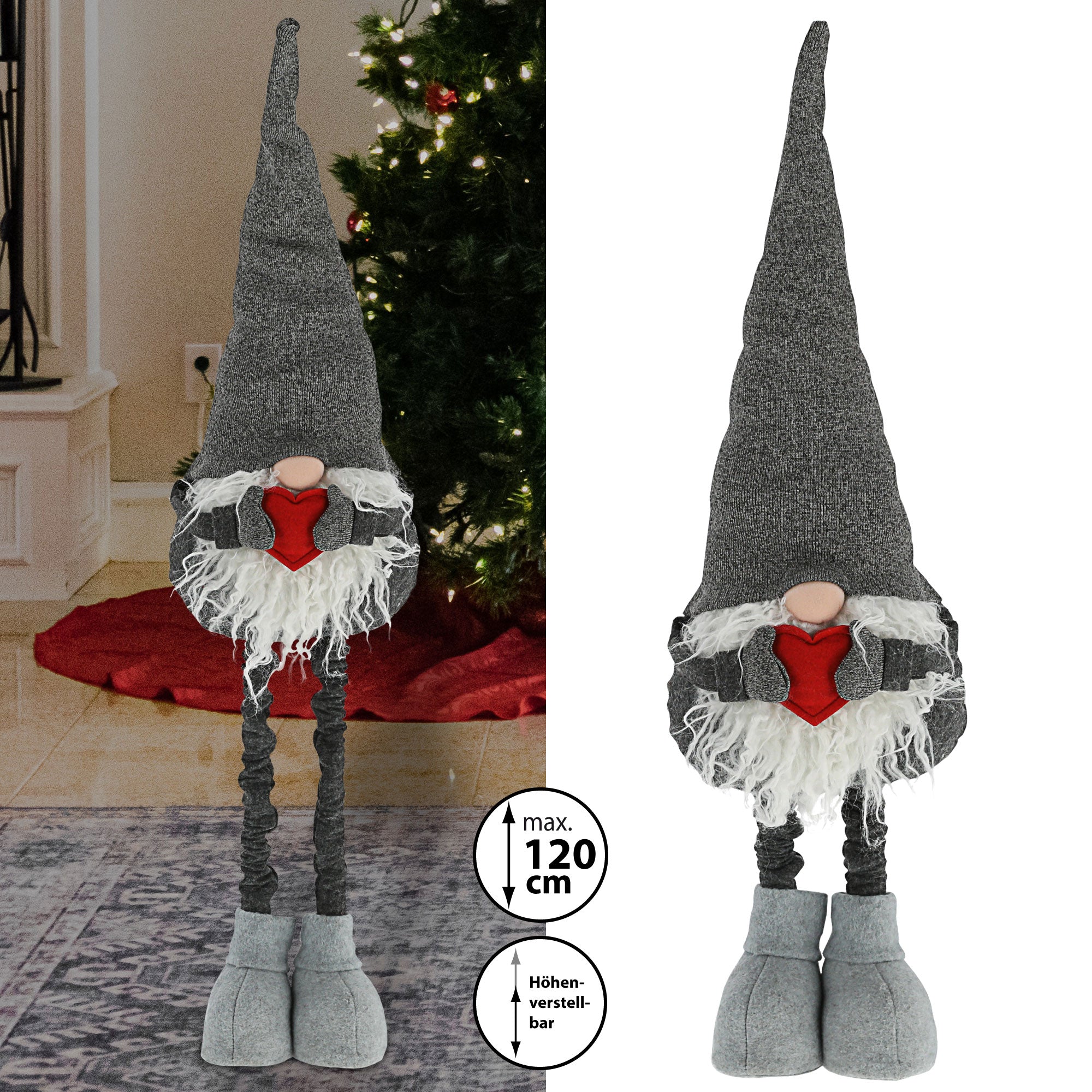 Wichtel "Udo" grau mit Teleskopbeinen max. H:80/120cm Wichtelmännchen Weihnachtswichtel Zwerg Adventsdeko Weihnachtsdeko