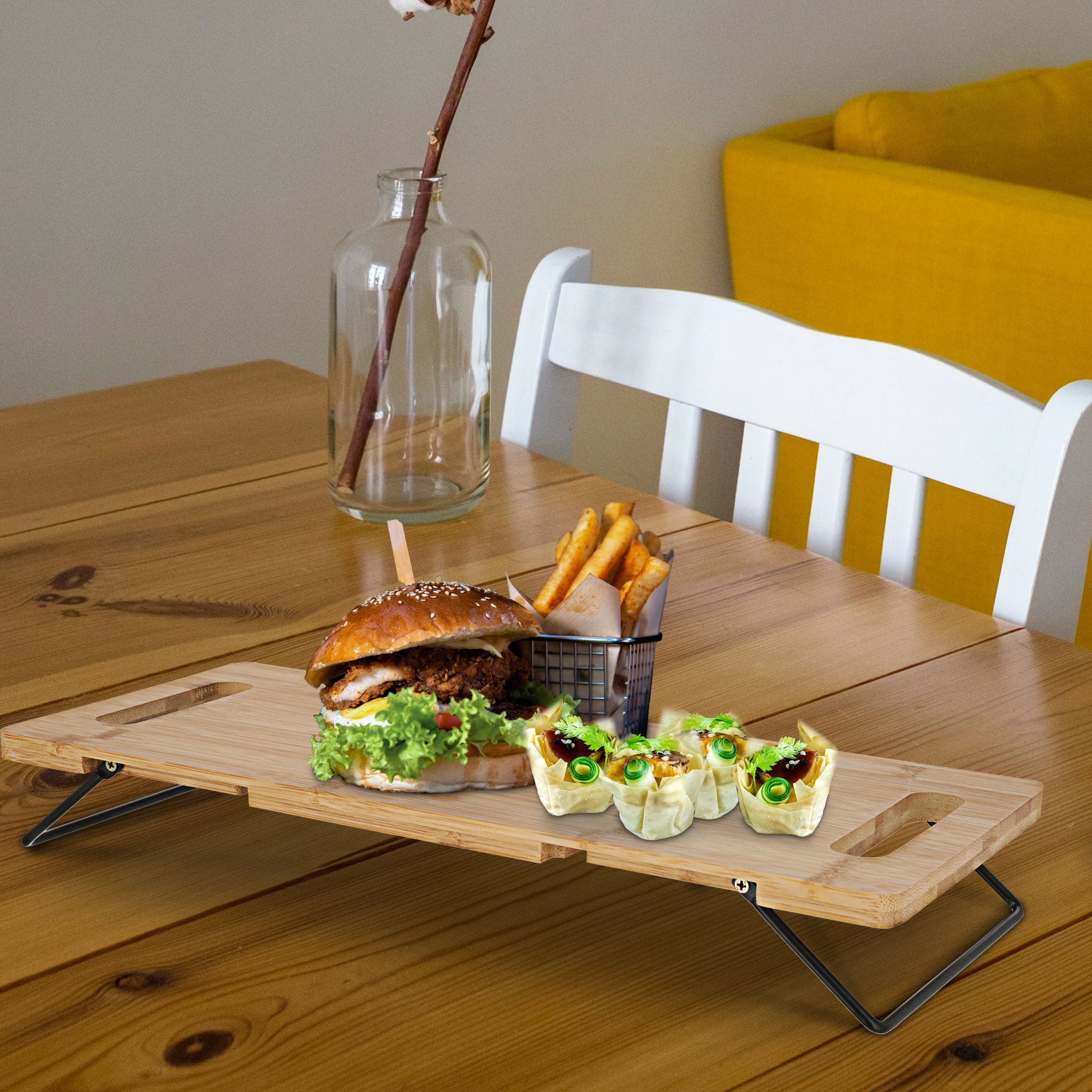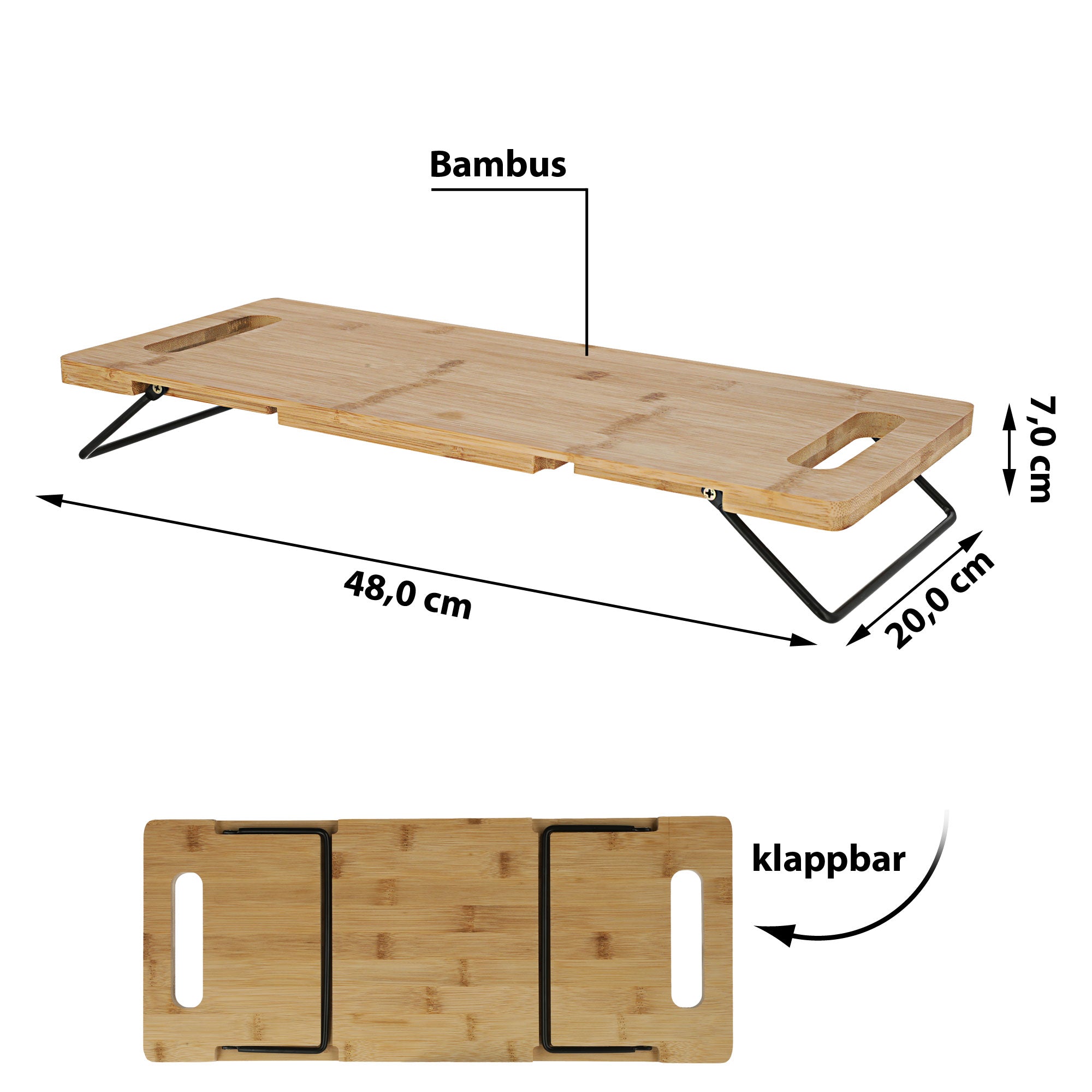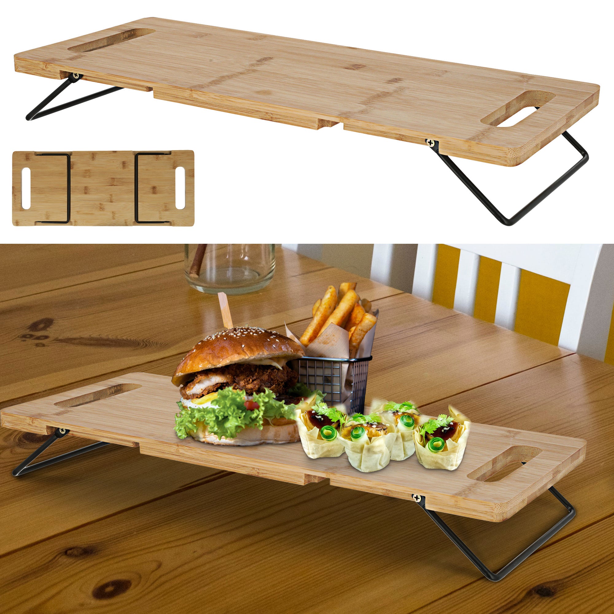 Bambus Tablett Metall-Füße klappbar Dekotablett Serviertablett Frühstücktablett Tischtablett