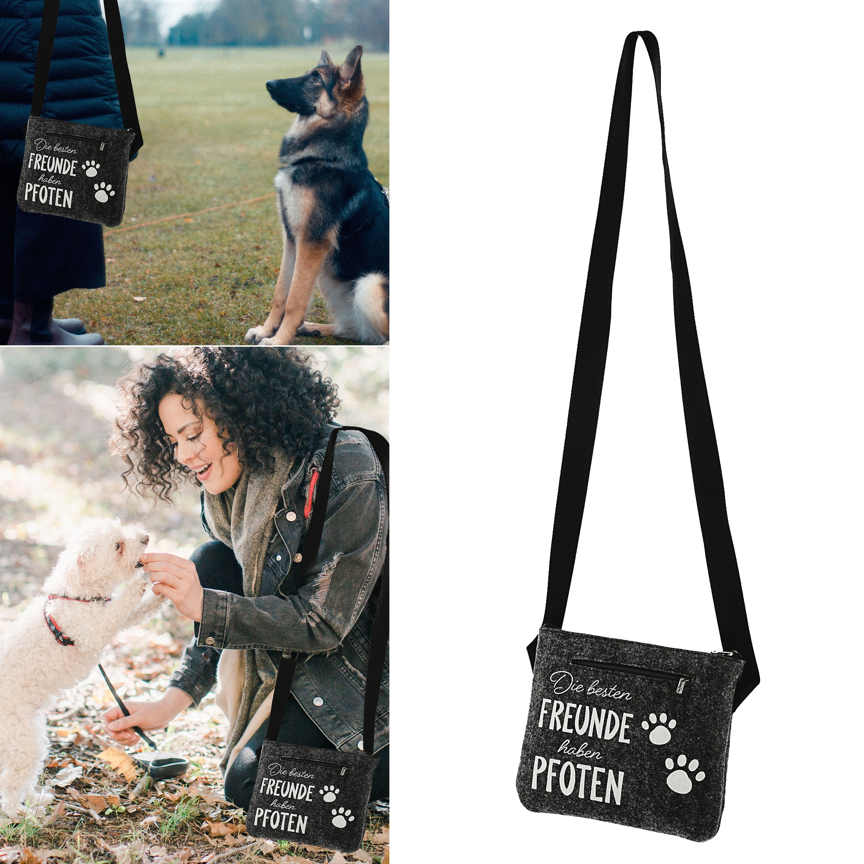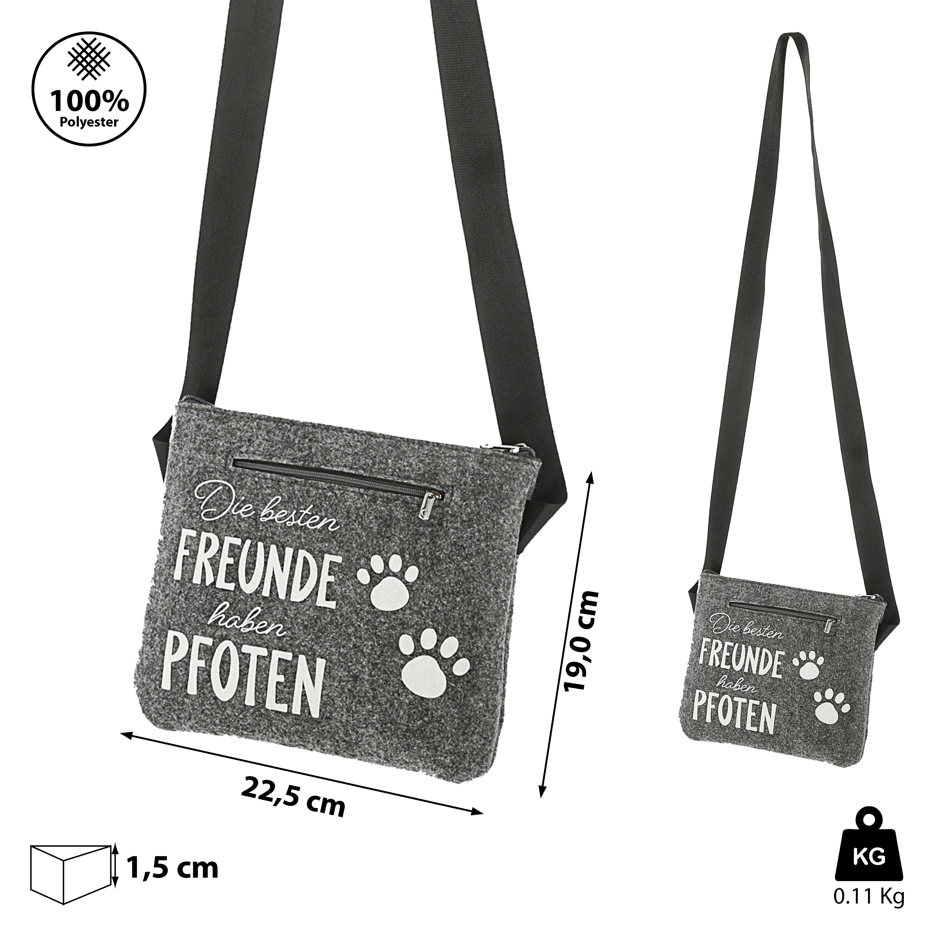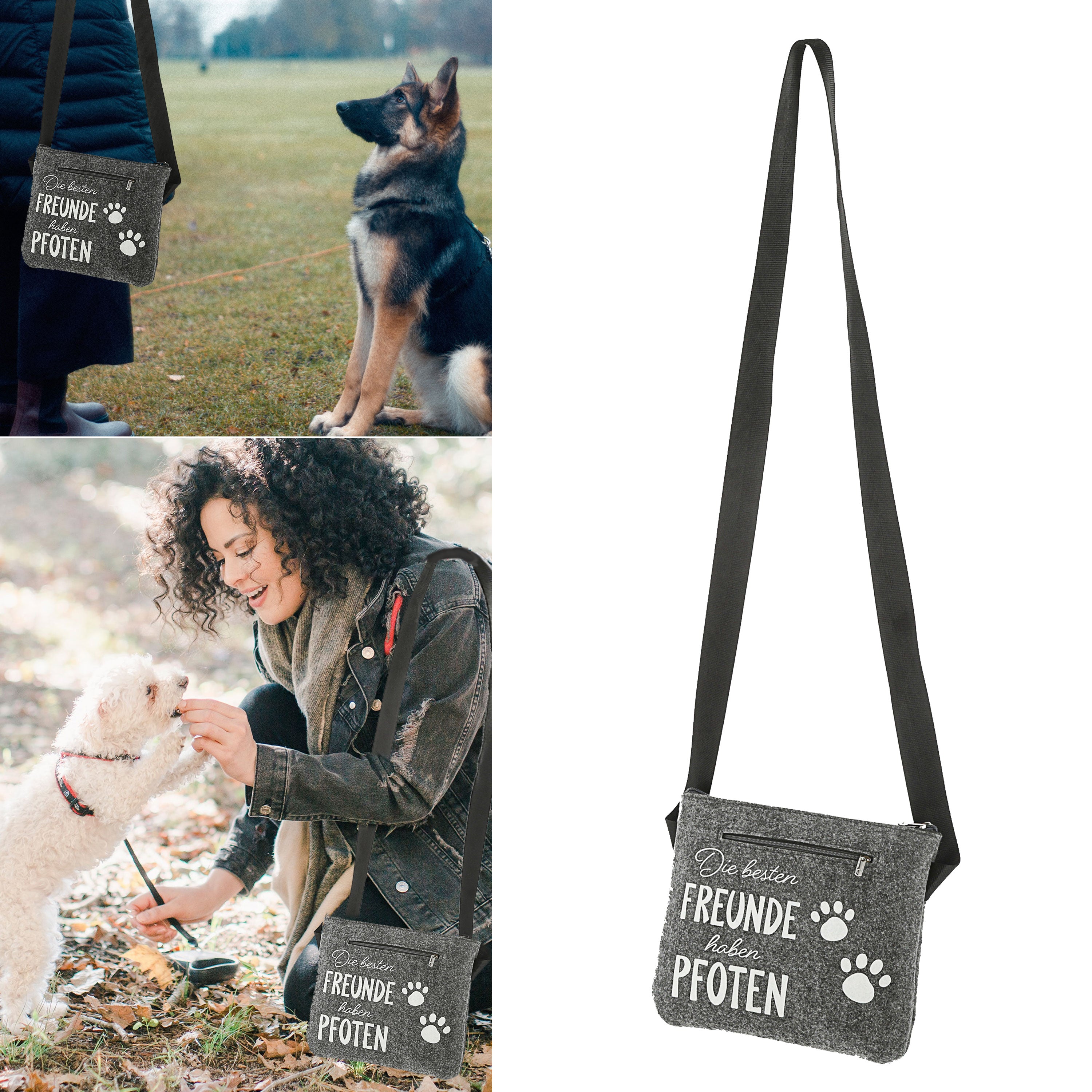 Hunde Leckerli Tasche Spruch "Pfote"/"BestFriends" hellgrau/anthrazit 22,5x19x1,5cm