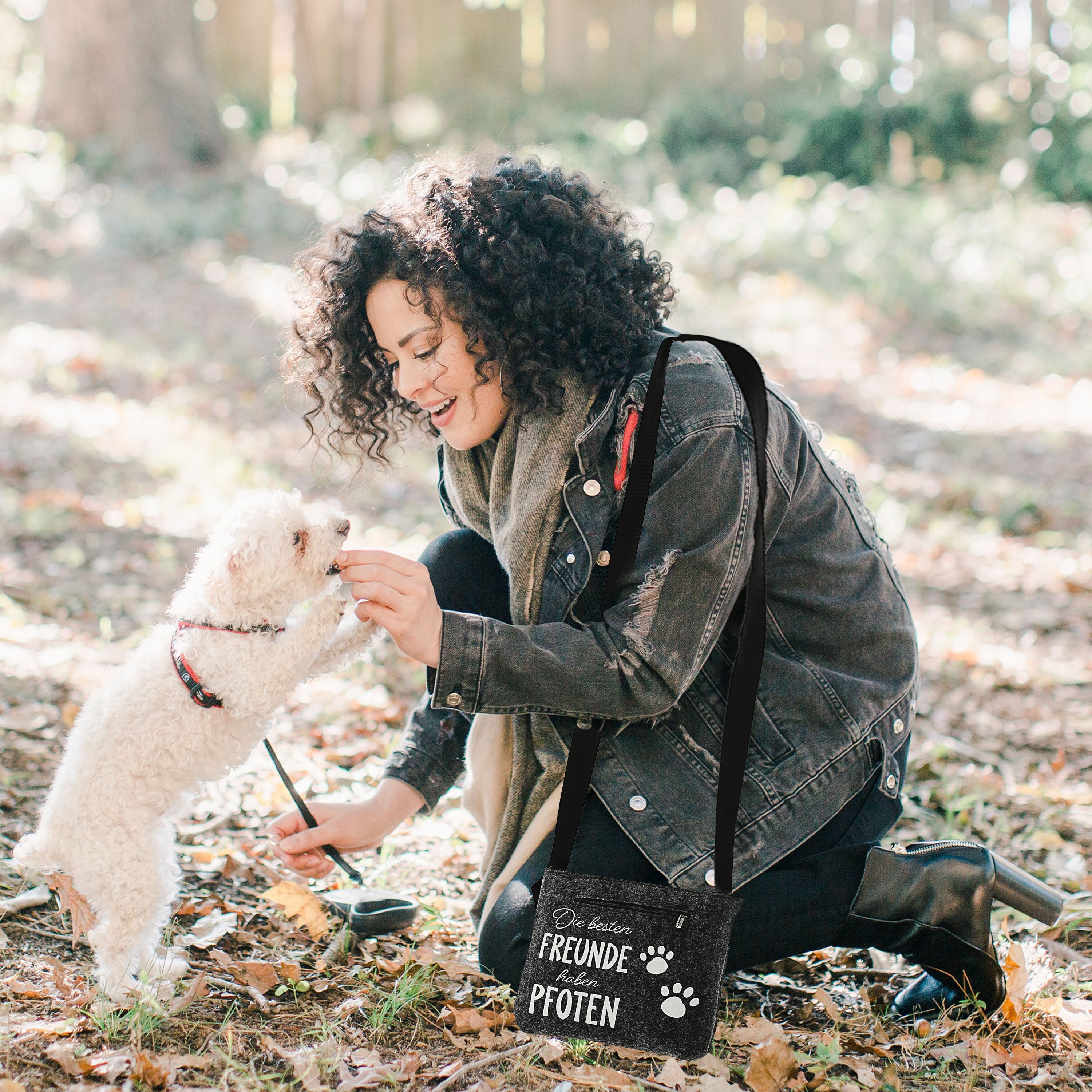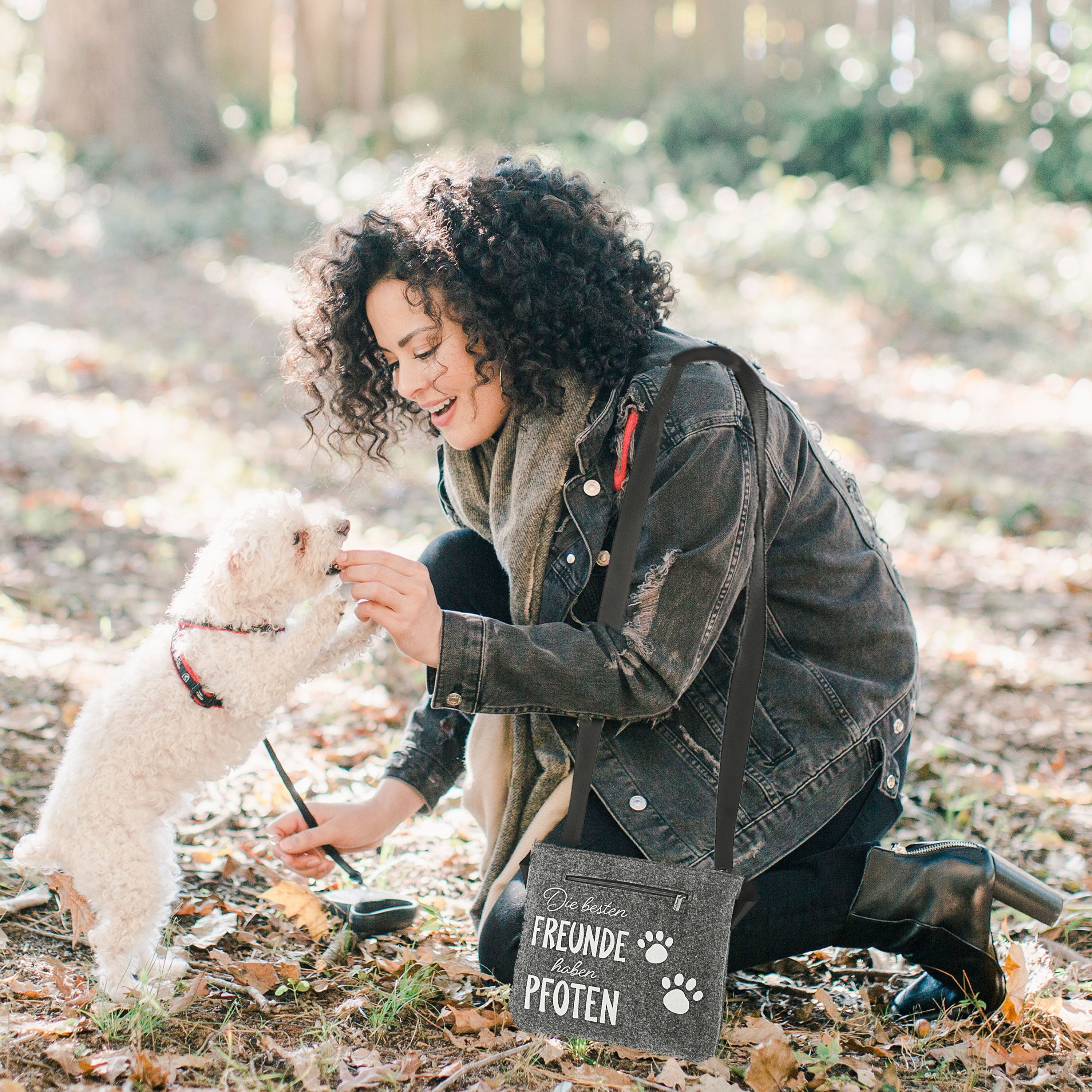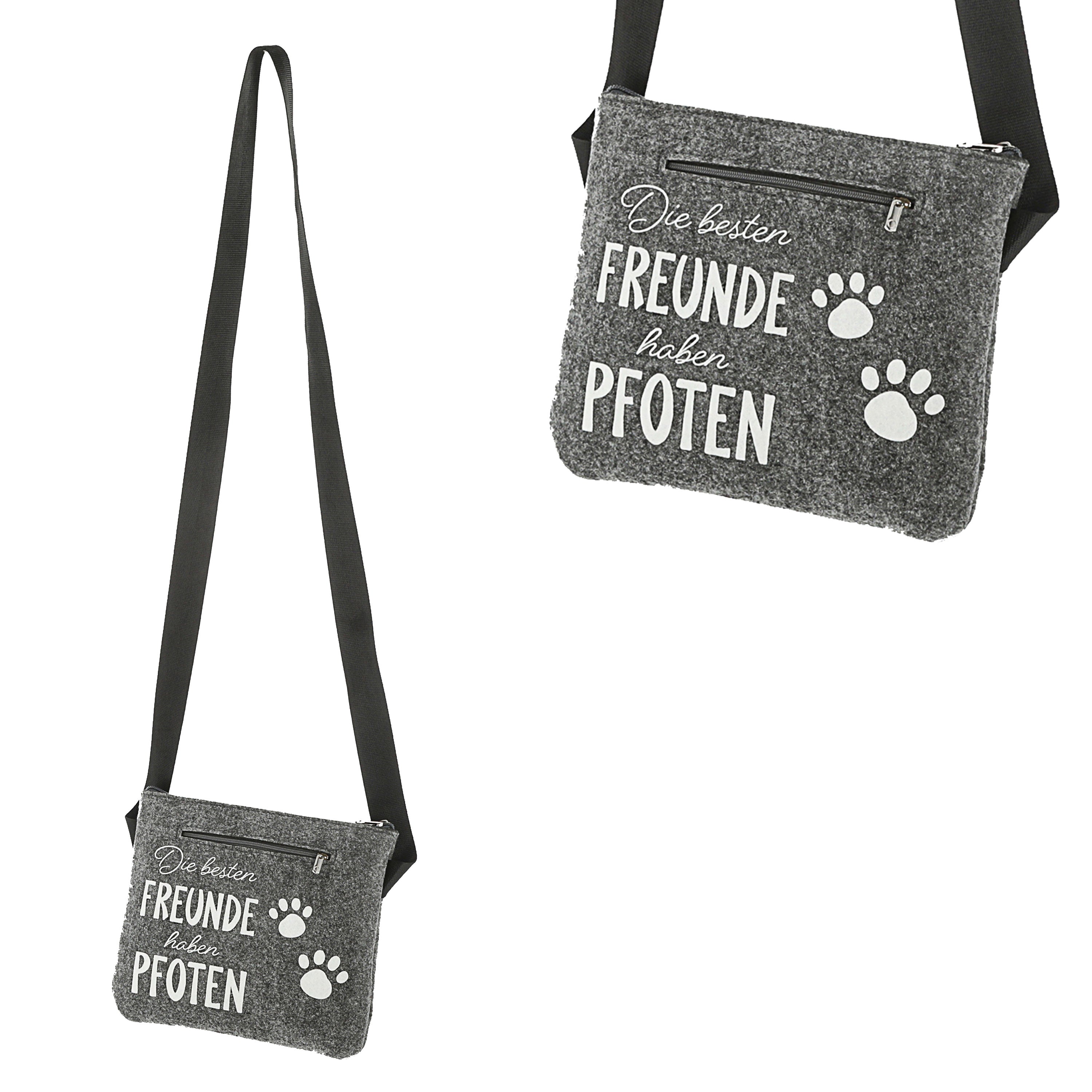 Hunde Leckerli Tasche Spruch "Pfote"/"BestFriends" hellgrau/anthrazit 22,5x19x1,5cm