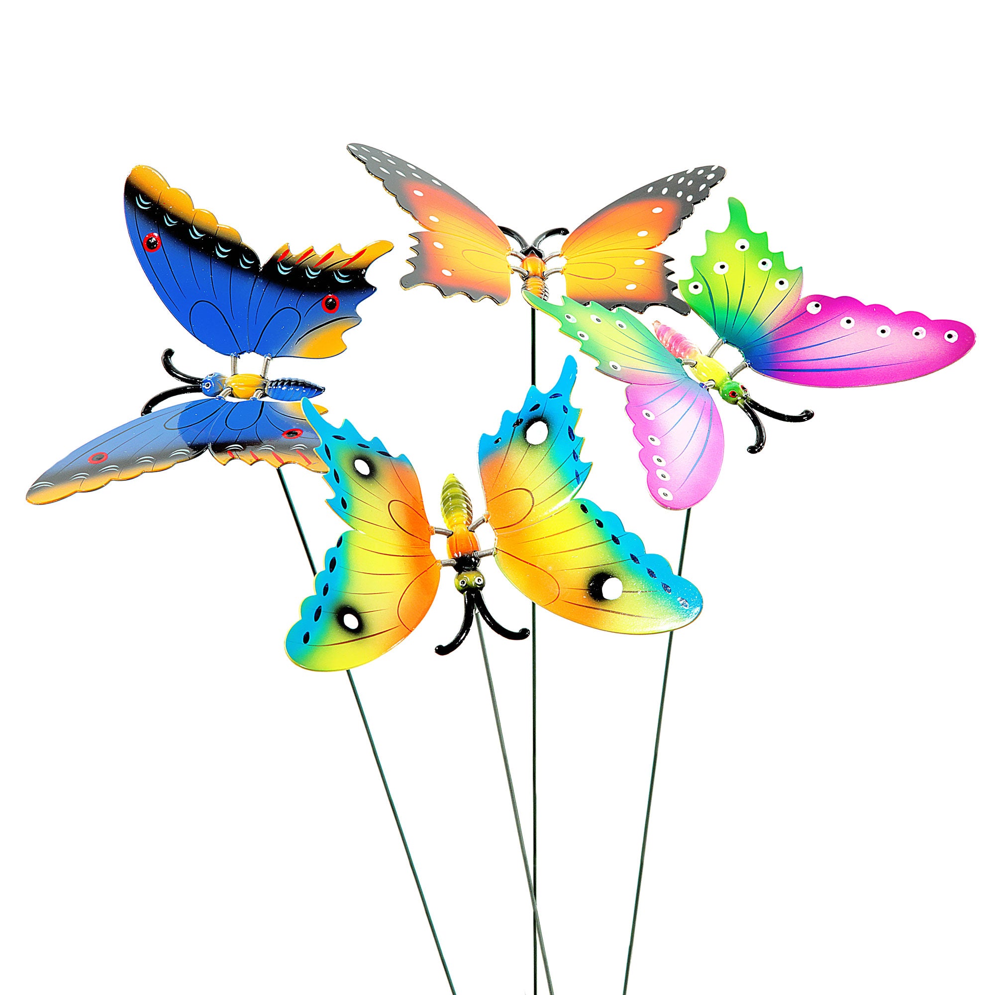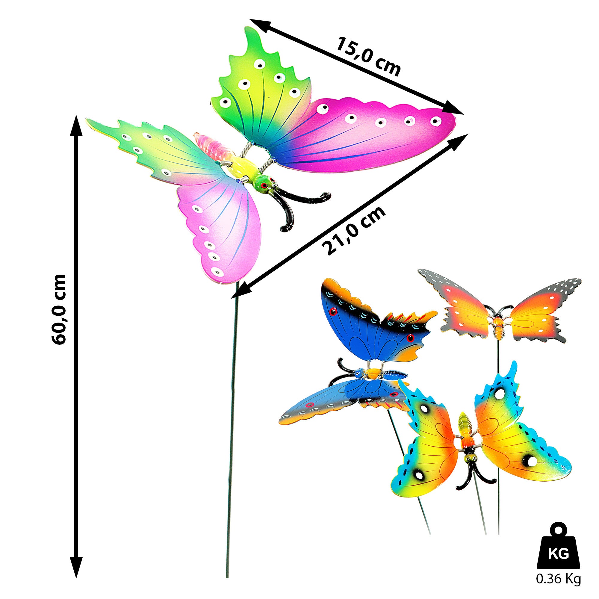 4x Gartenstecker Schmetterling H60 cm Dekostecker Gartendekoration