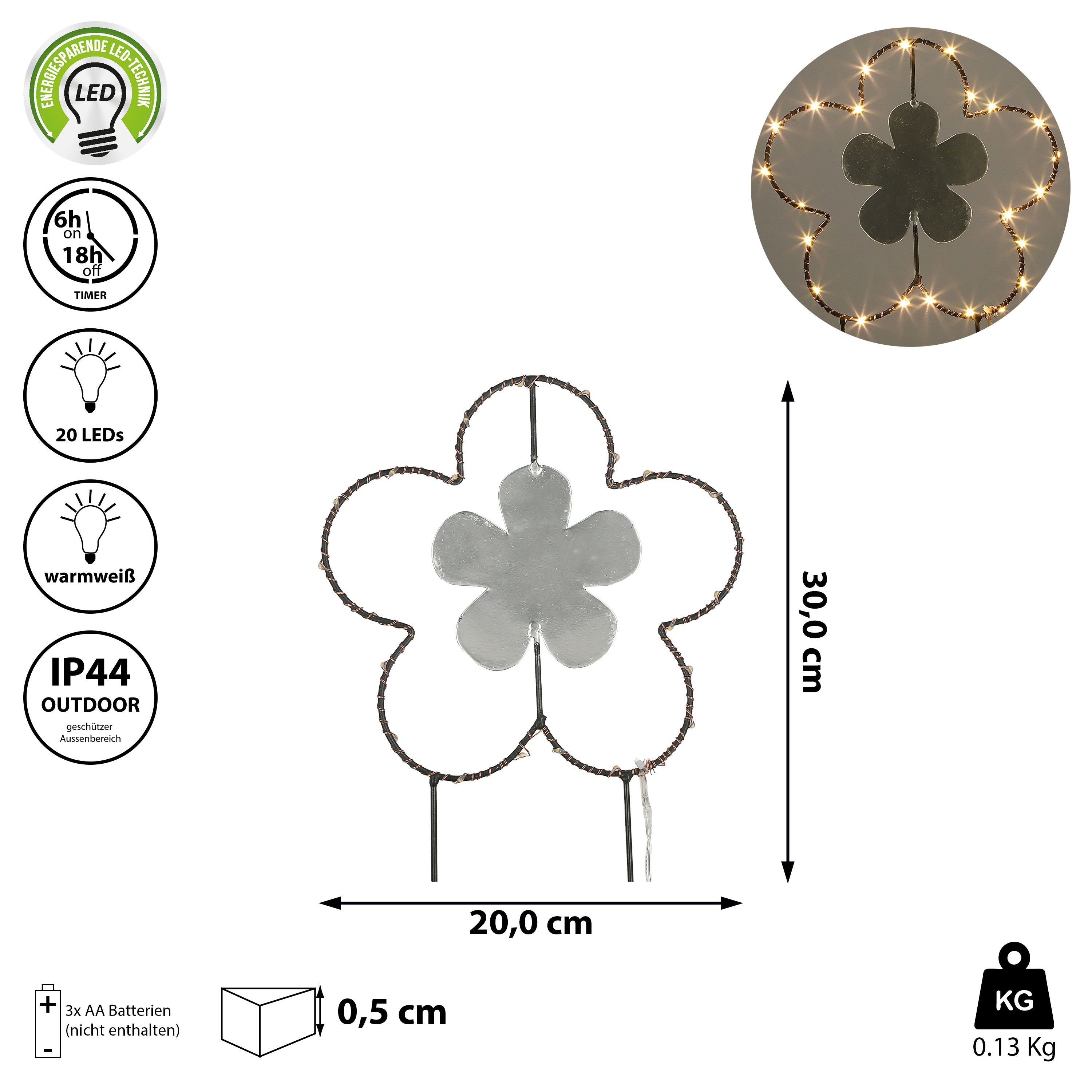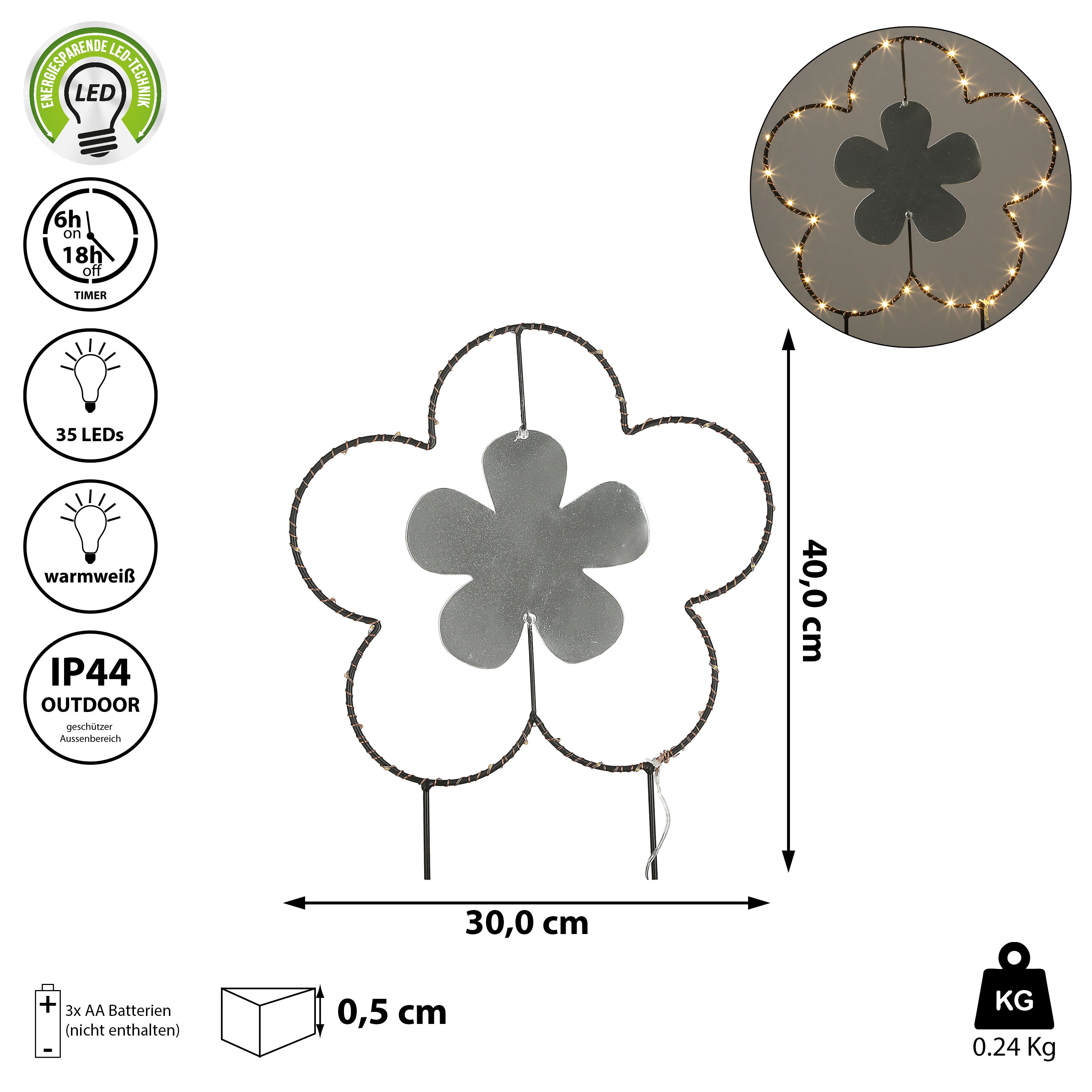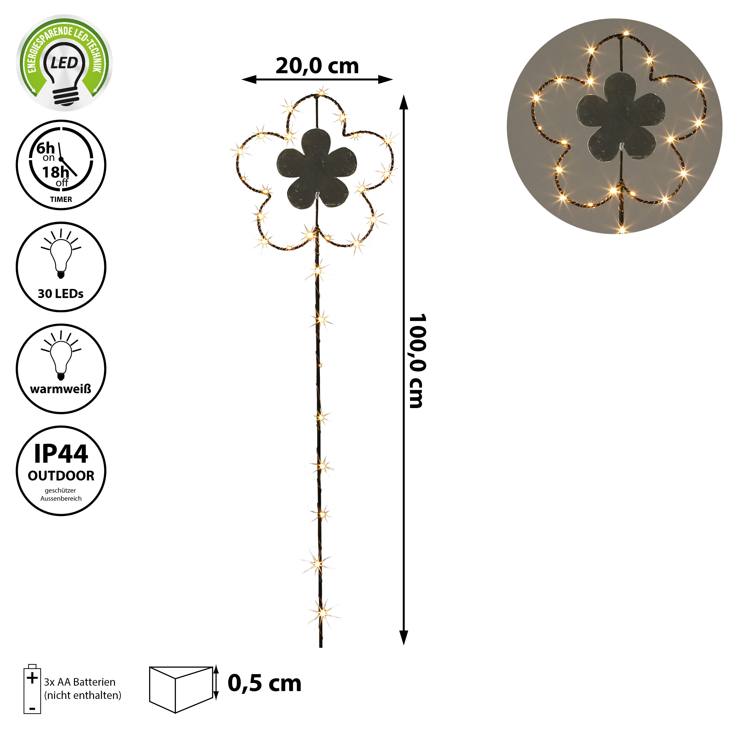 Gartenstecker LED "Blume" H:30/40100cm Eisen batteriebetrieben 6/18 Timer 20/30/35 warmweiße LEDs Gartenlicht Outdoorbeleuchtung