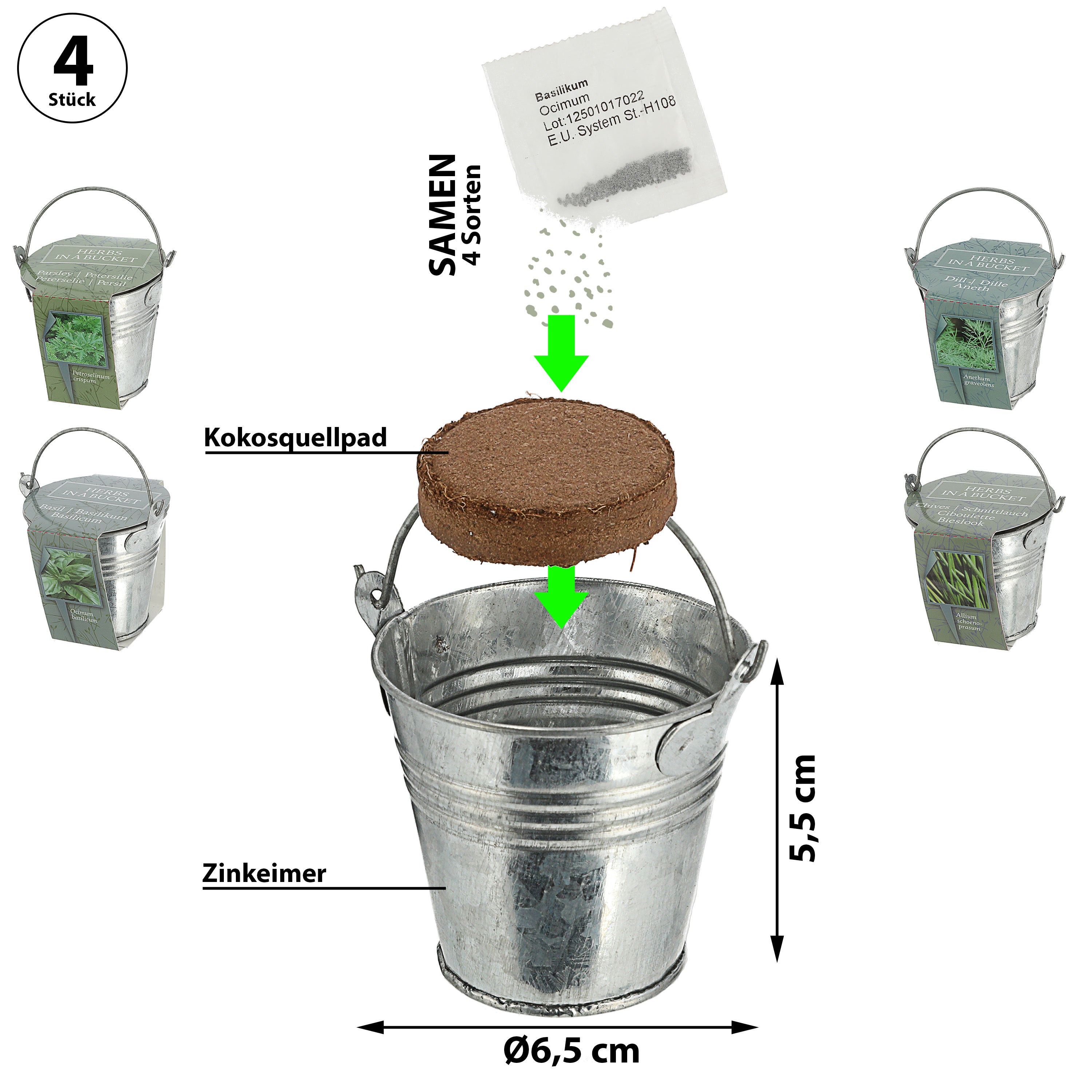 | 4er Set Kräutersamen Mini-Zinkeimer | ||||||||||||
