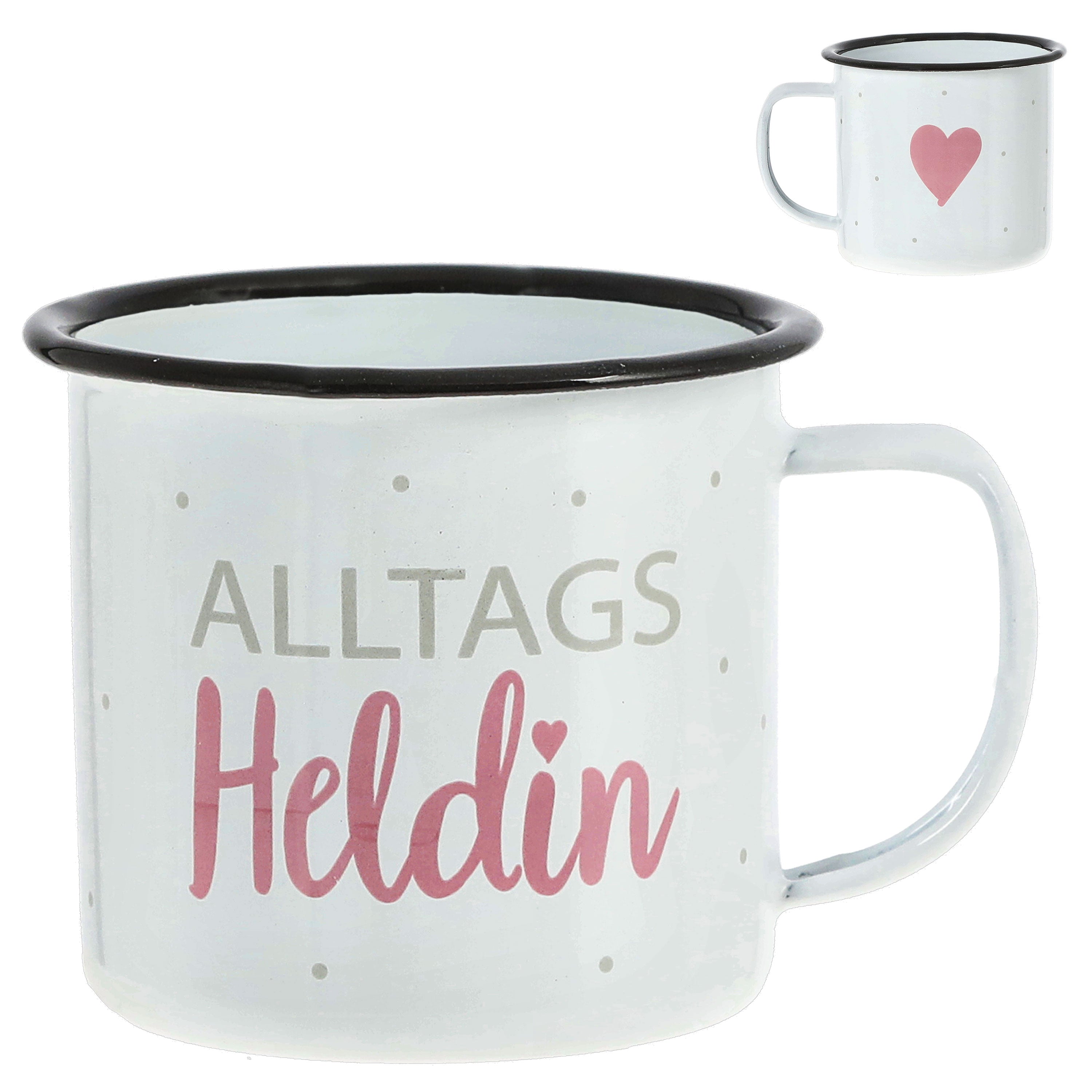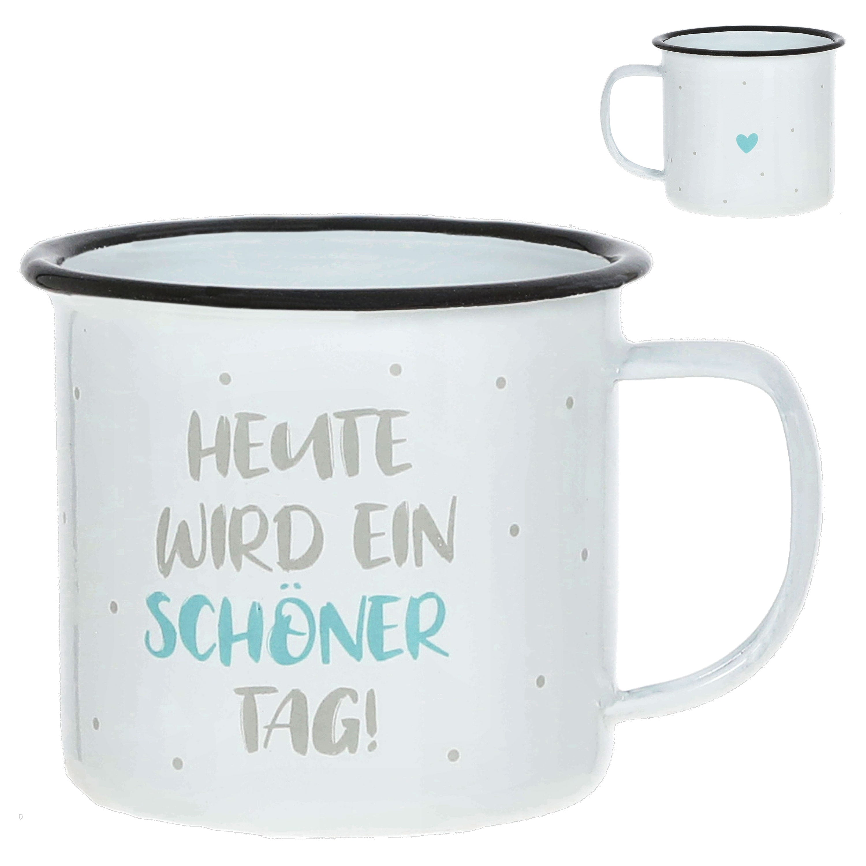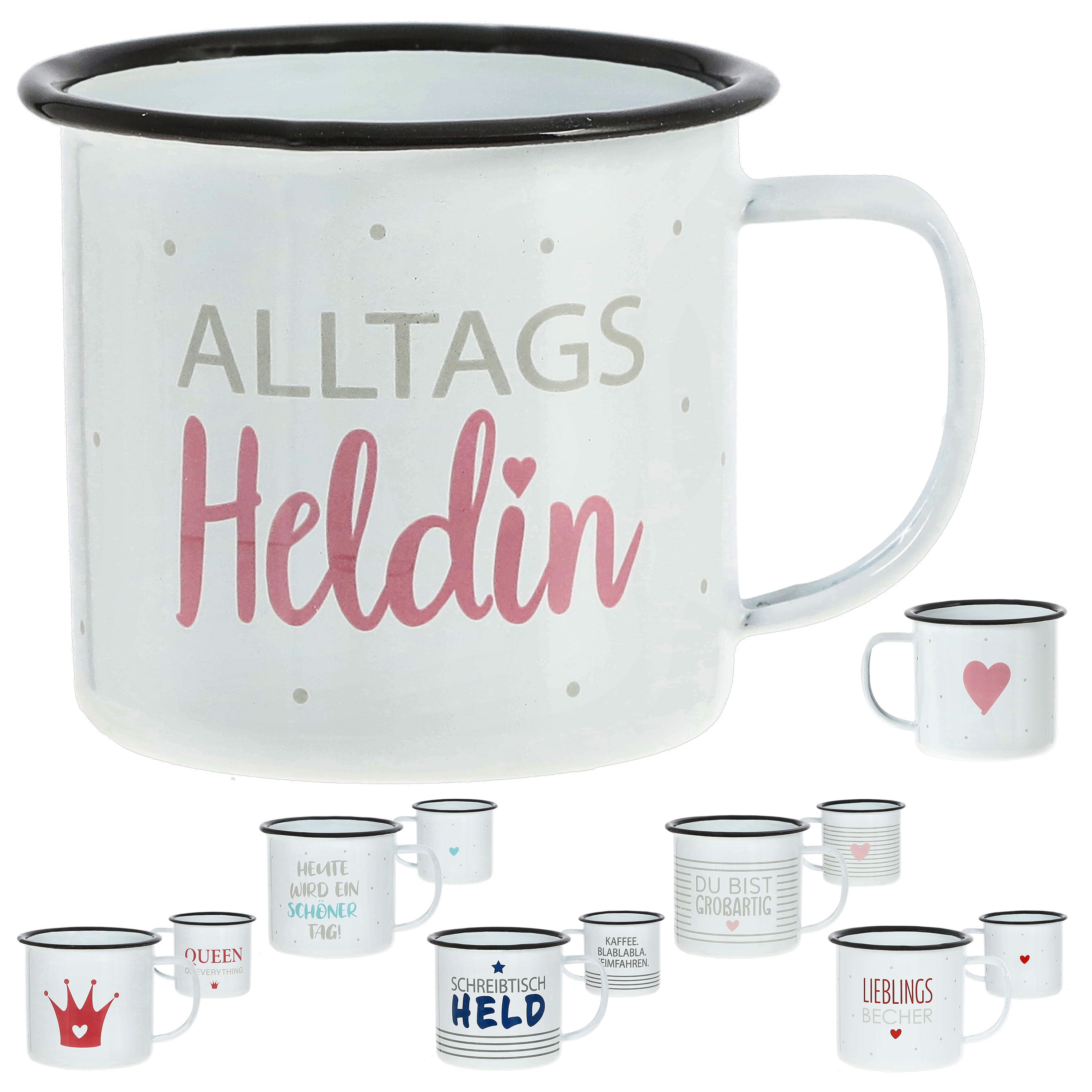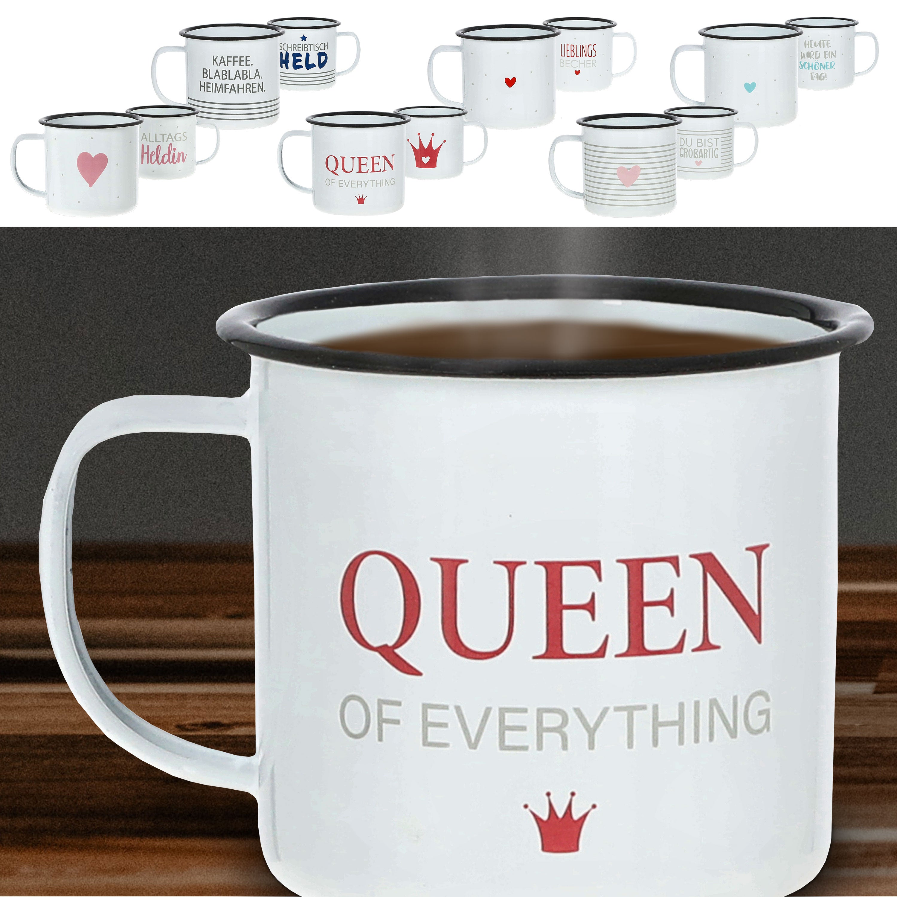 Kaffeebecher 6er Set 'Slogan' 9x8cm Metall 6 Sprüche Becher Tasse 350 ml Teetasse Henkelbecher