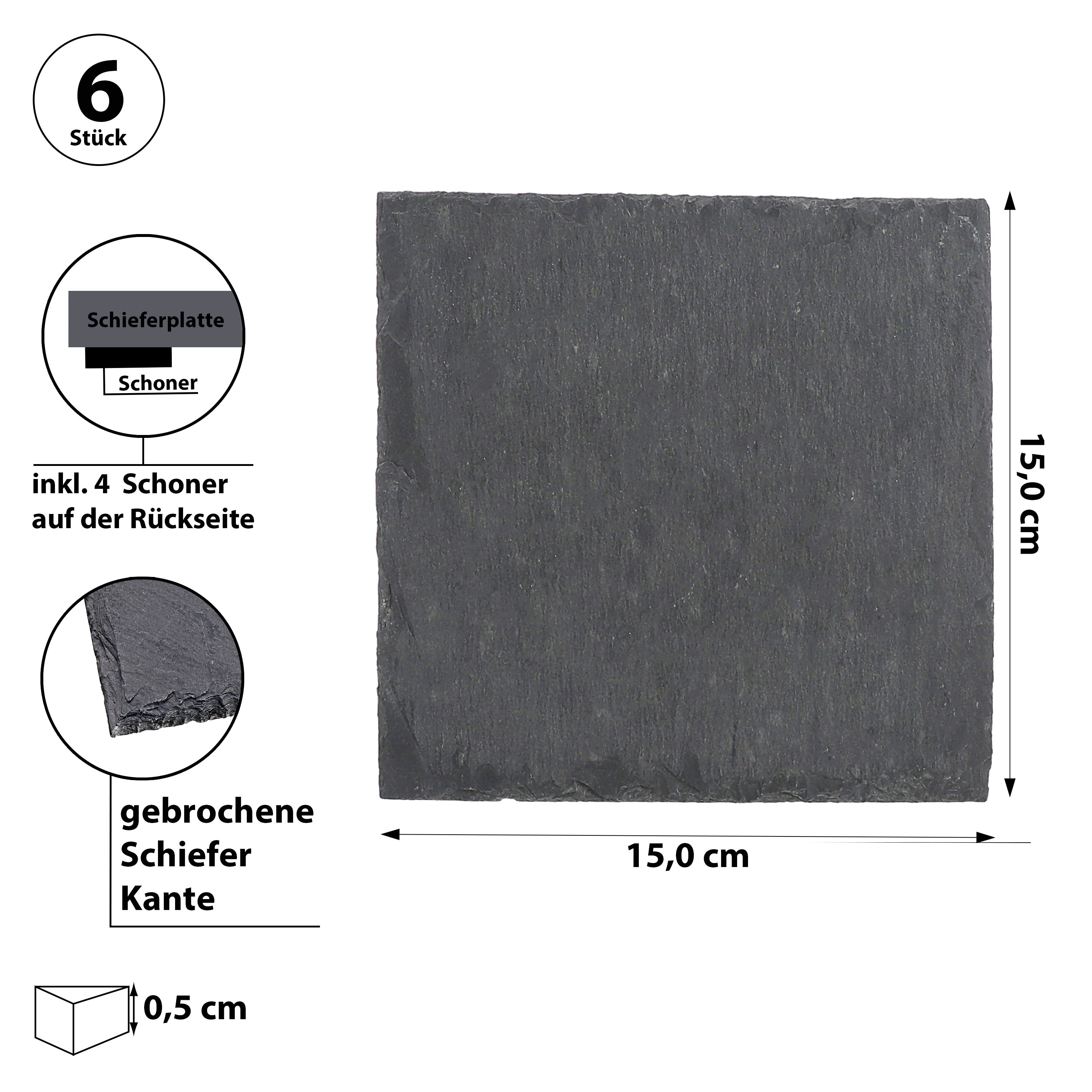 | 6er Set Schieferplatte quadratisch mit Filzschonern | ||||||||||