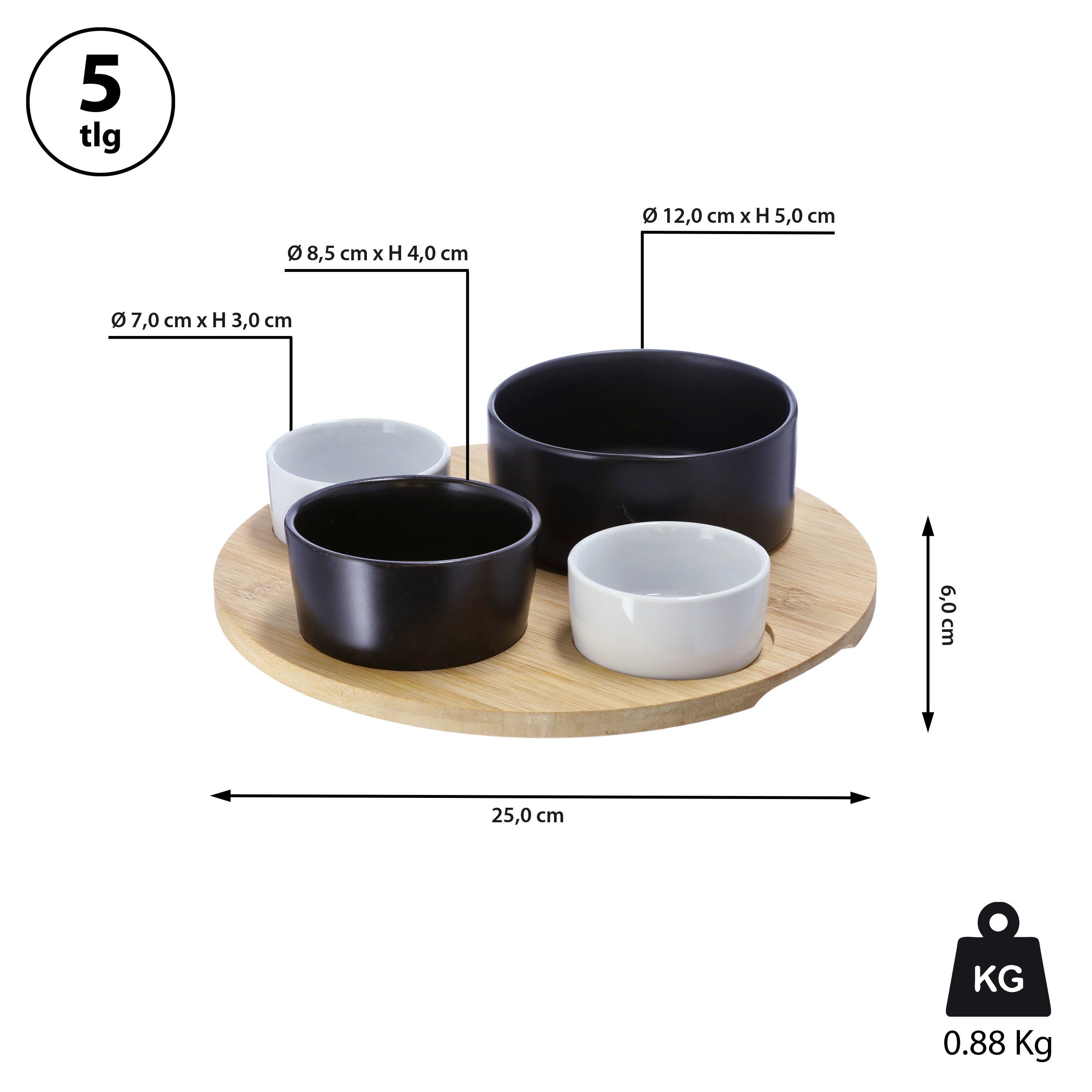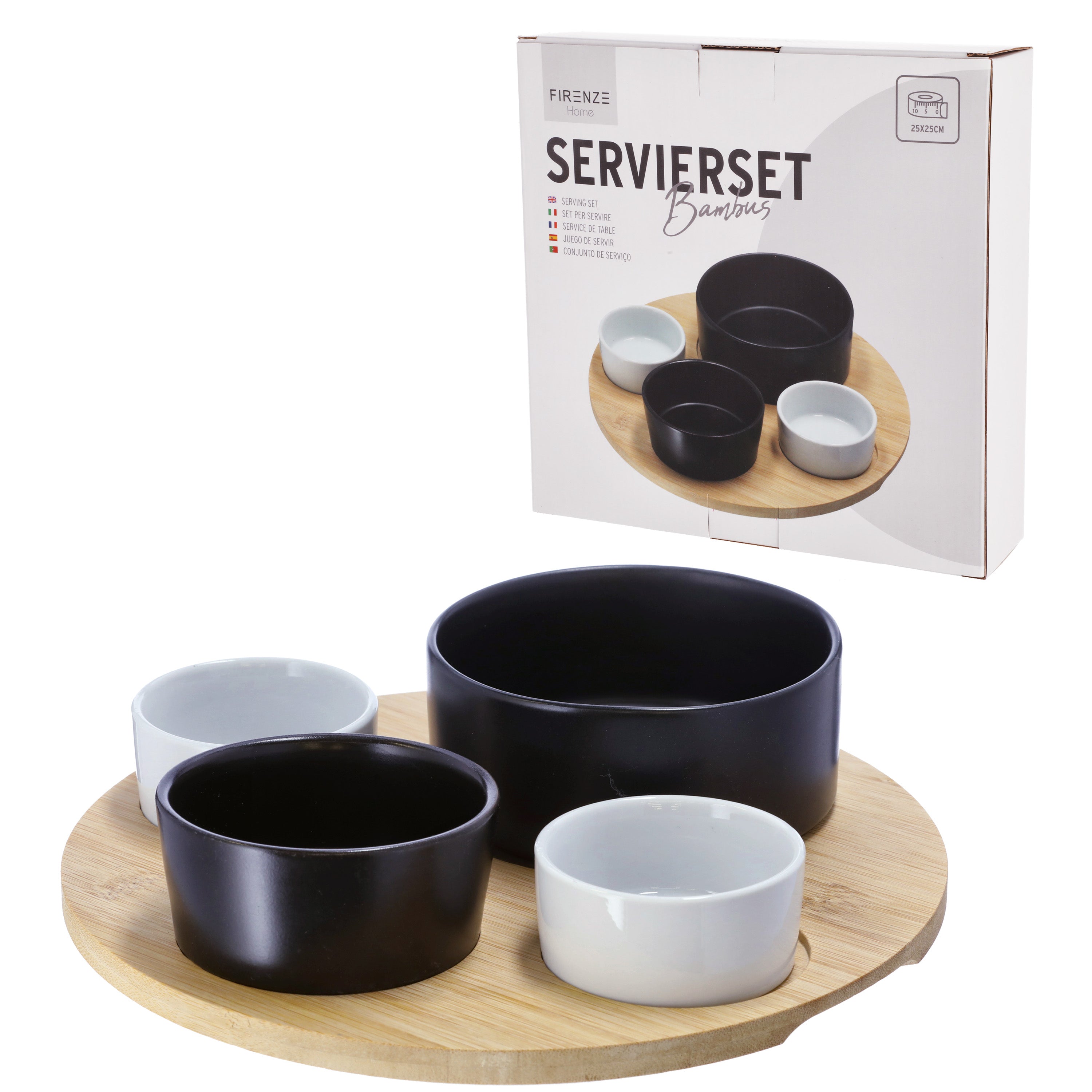 Servierschalen Set Tablett Bambus Porzellan 25x25x1cm Schalen Tablett Schüssel Snackschale Servierschale