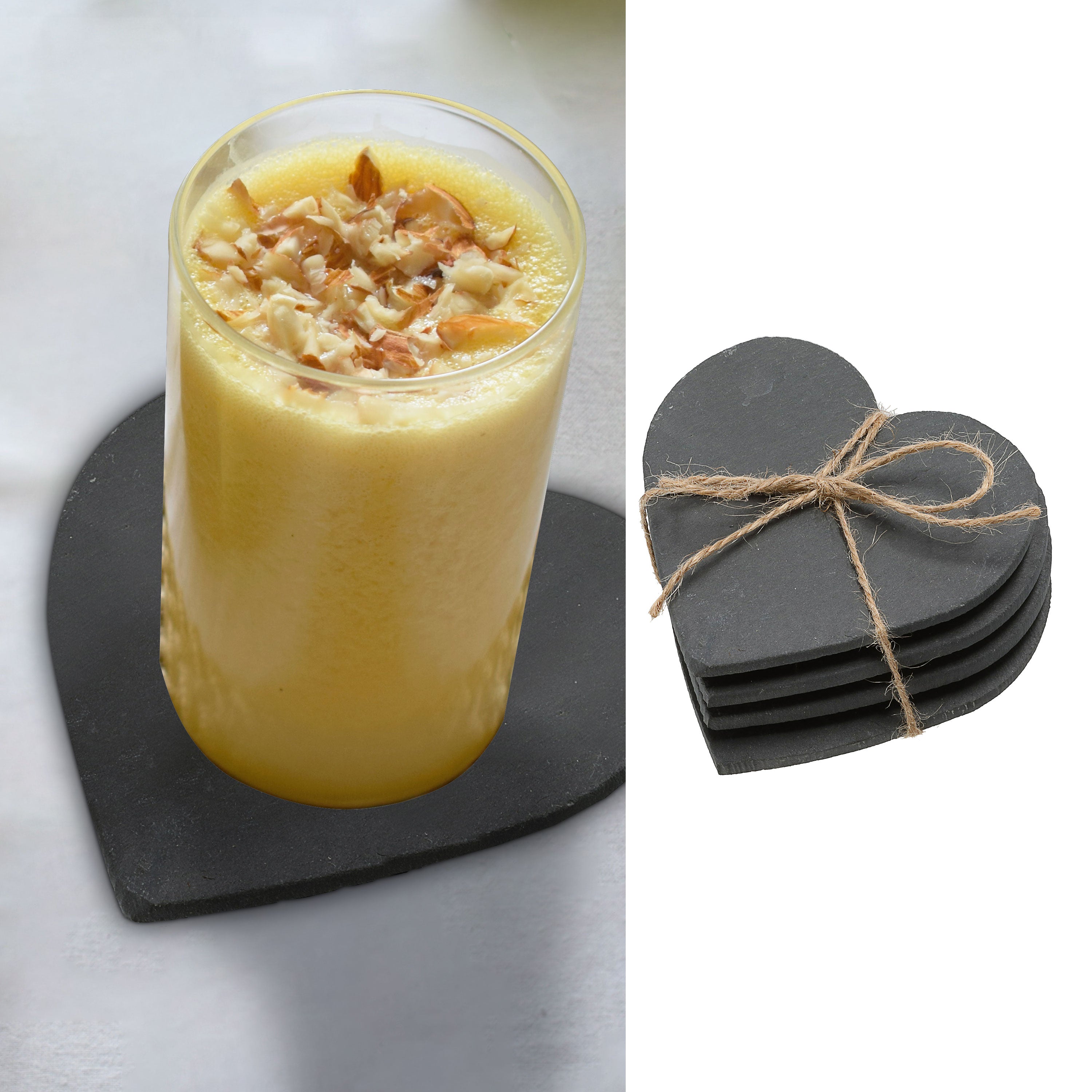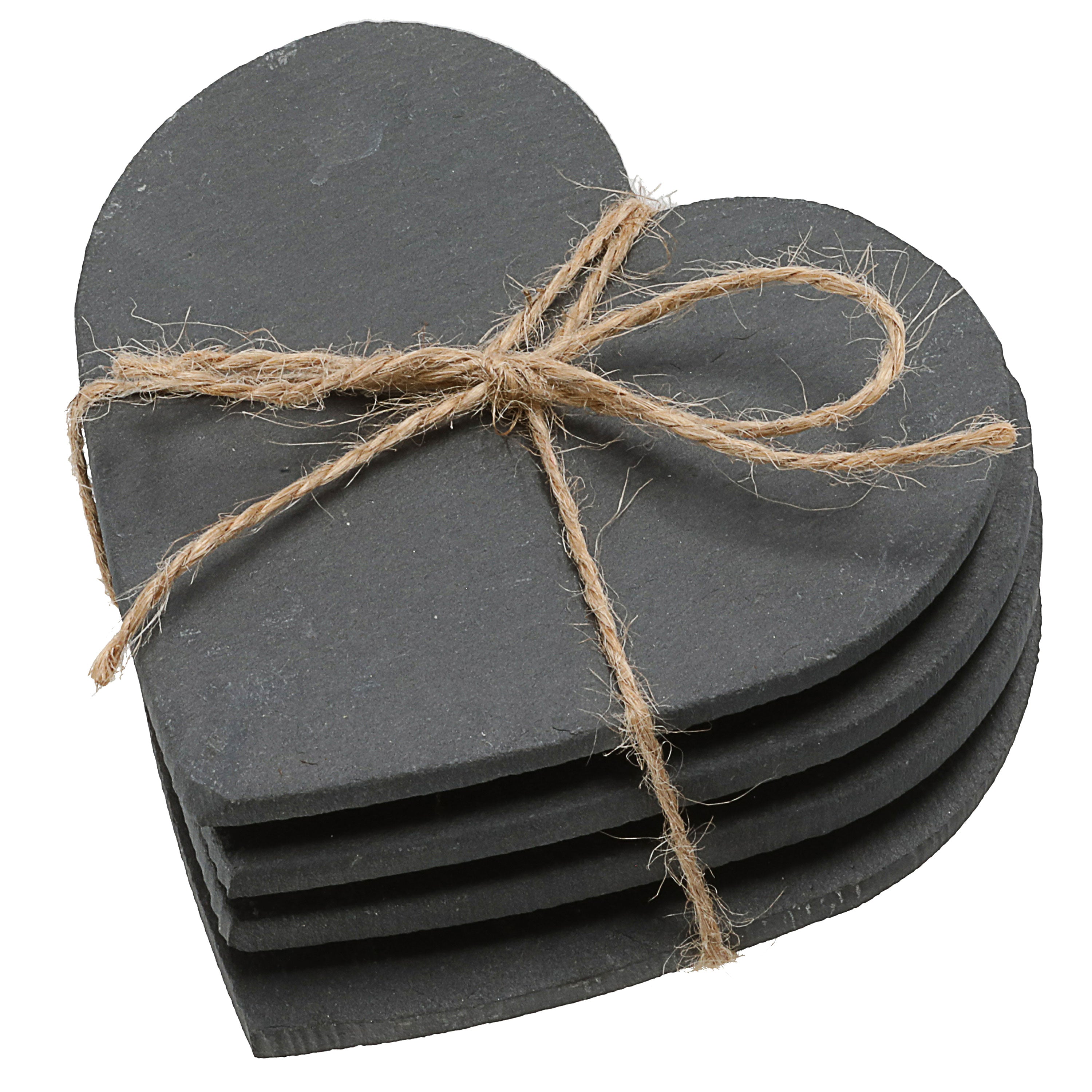 Schieferuntersetzer Herz 4er Set 10x10cm Naturstein Anthrazit Herzform Glasuntersetzer