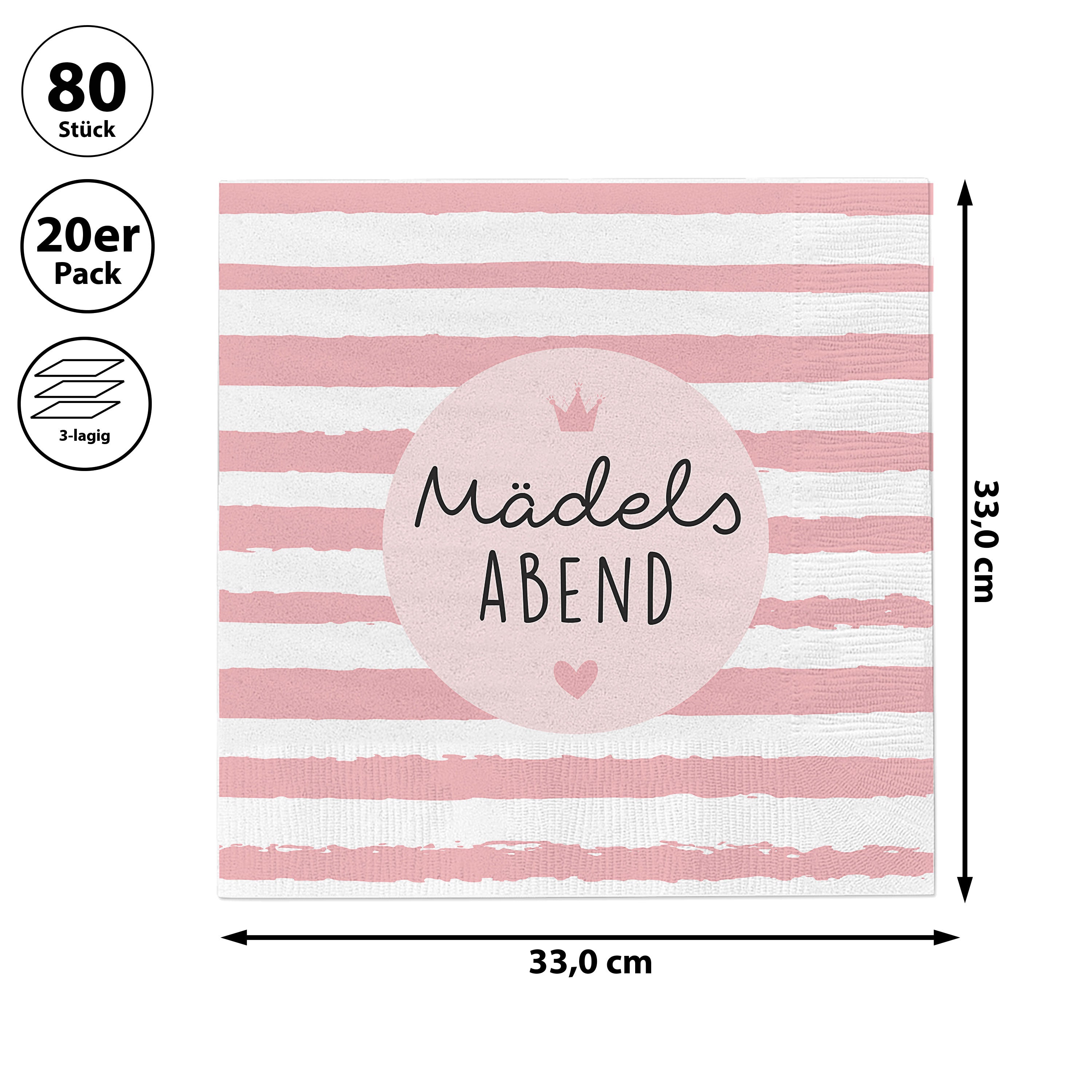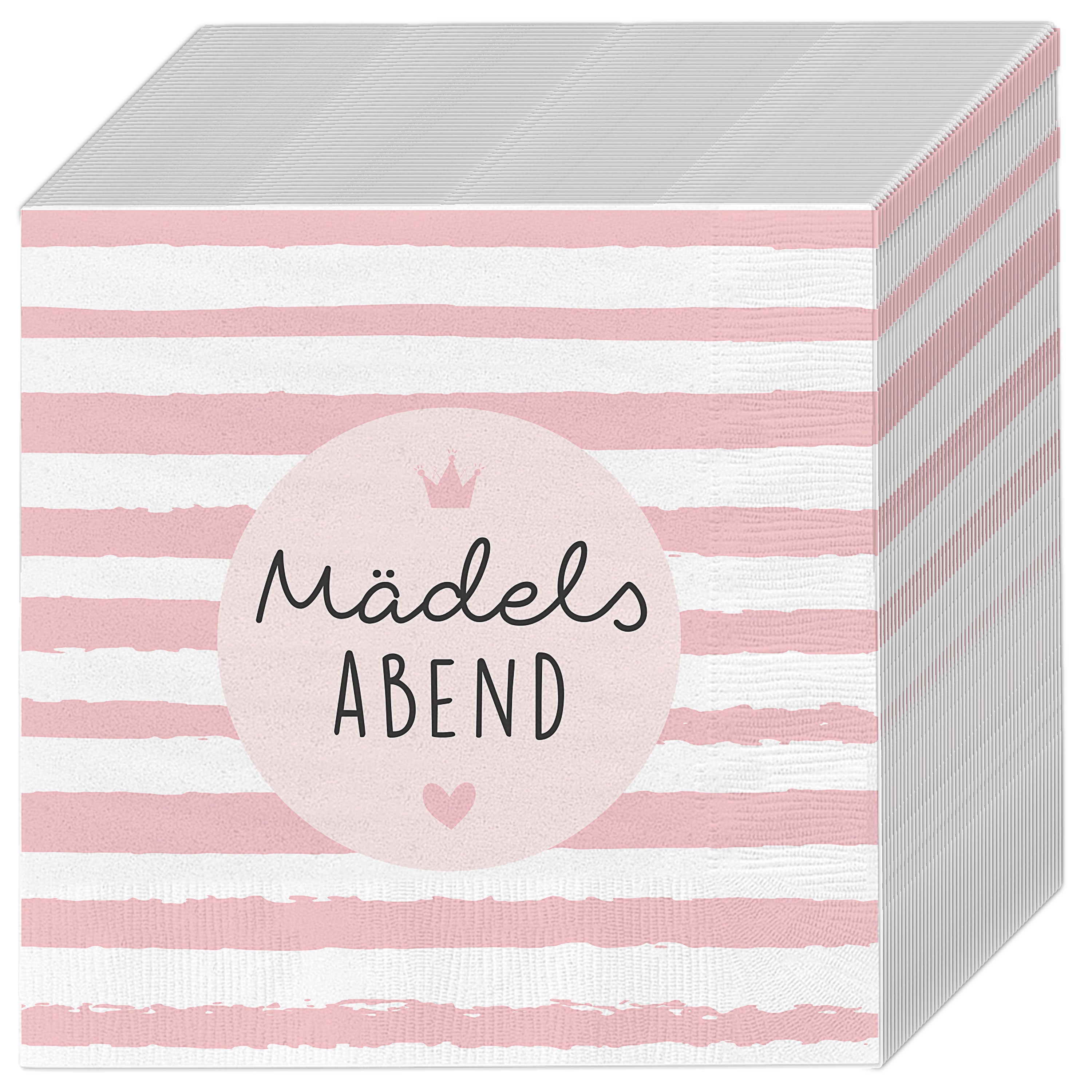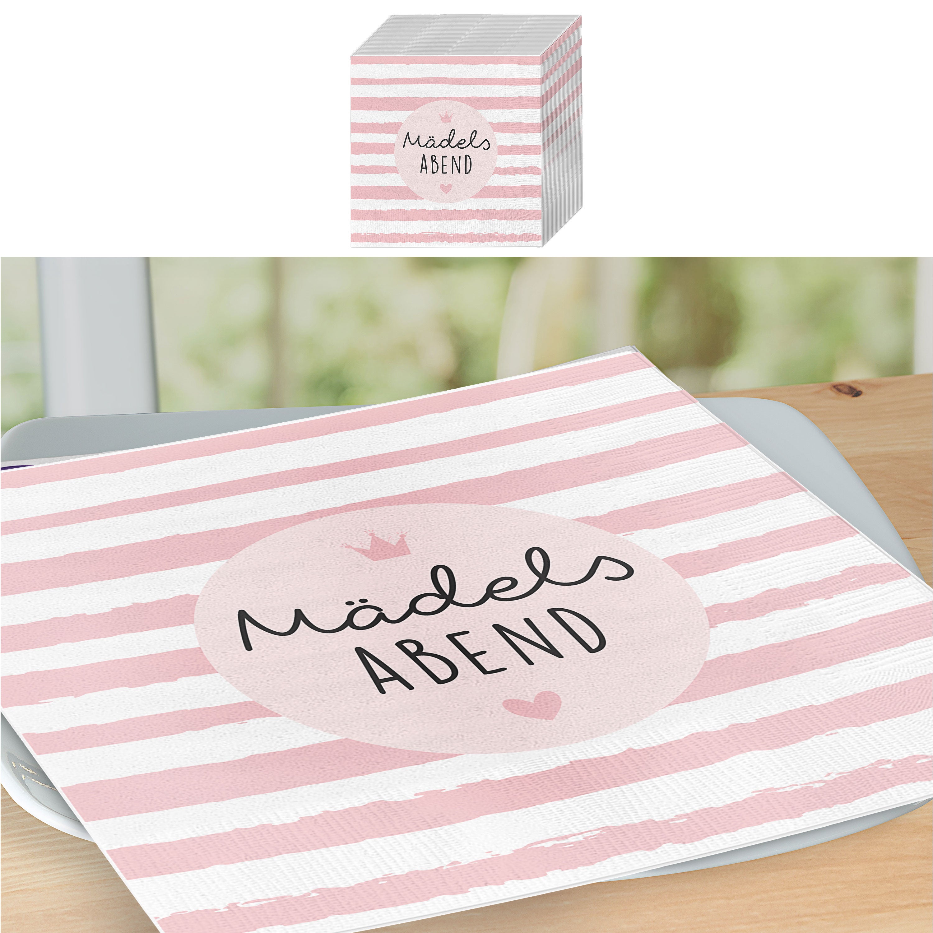 Servietten 'Mädelsabend' 80er Set 33x33cm 3-lagig Papierserviette rosa weiß stoffähnlich Tuch Tischdeko