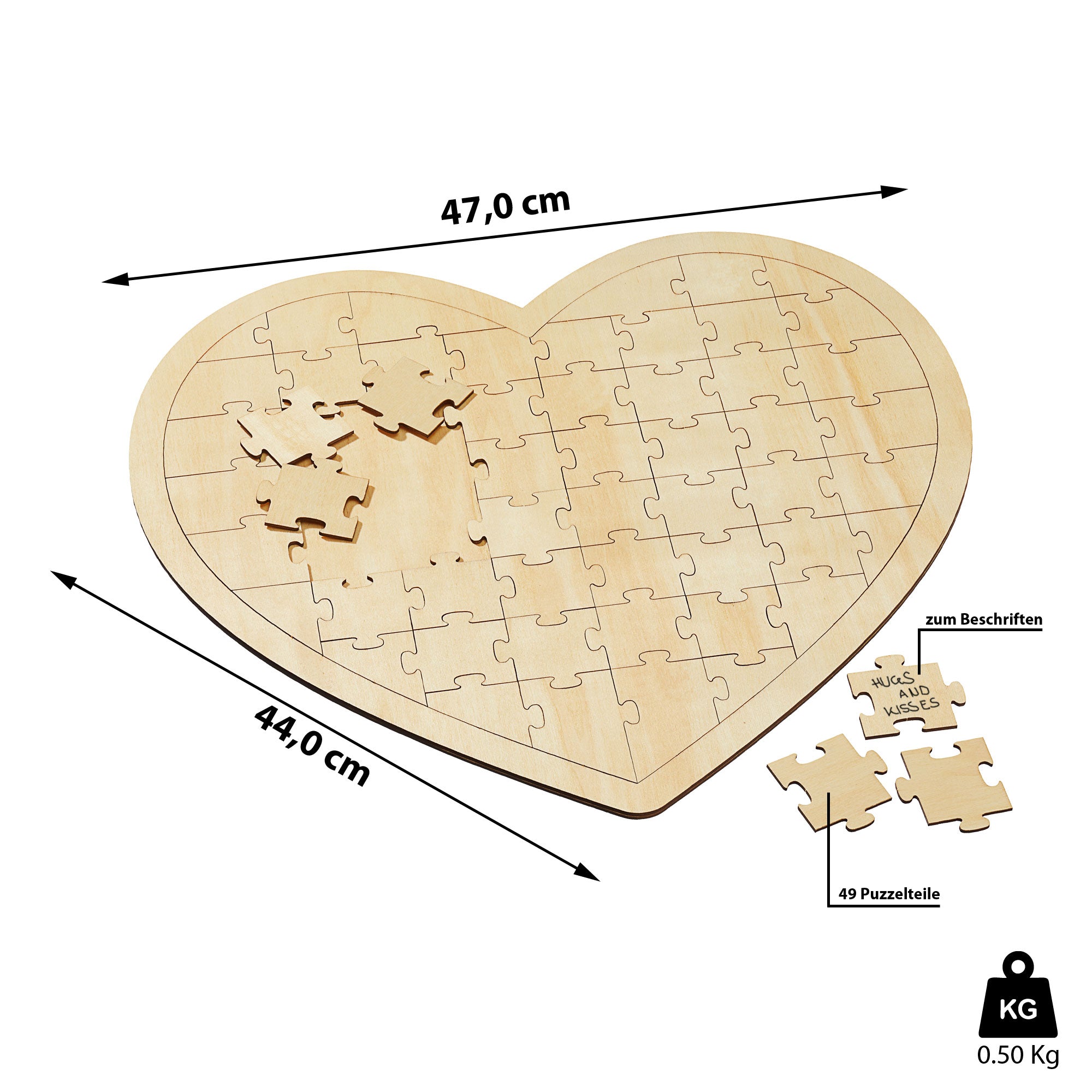 Holz Wunschherz Puzzle 49 Puzzleteile Hochzeit Gästebuch Feier Andenken