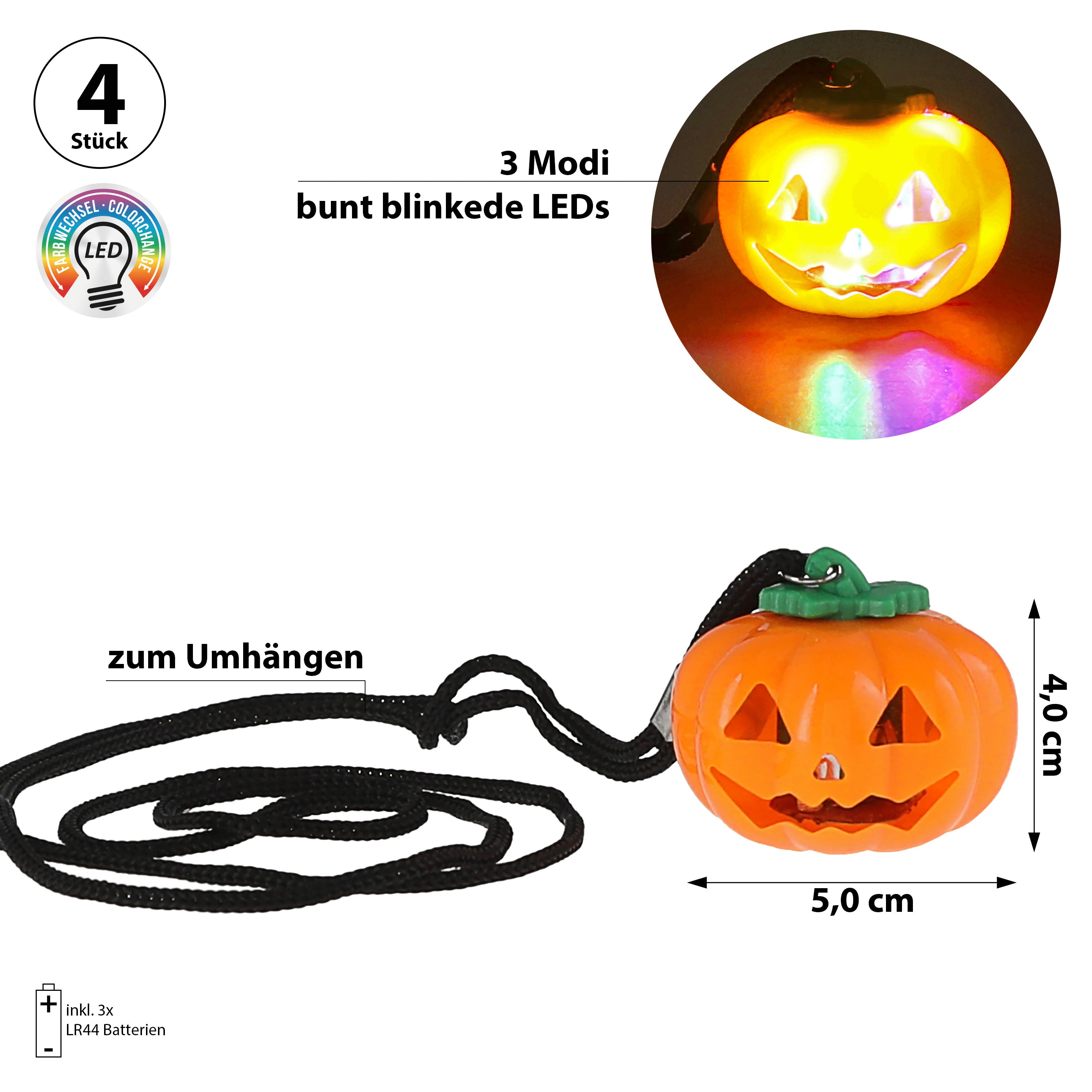 | 4er Set LED Kürbis an Halsband zum Umhängen | ||||||||||||||
