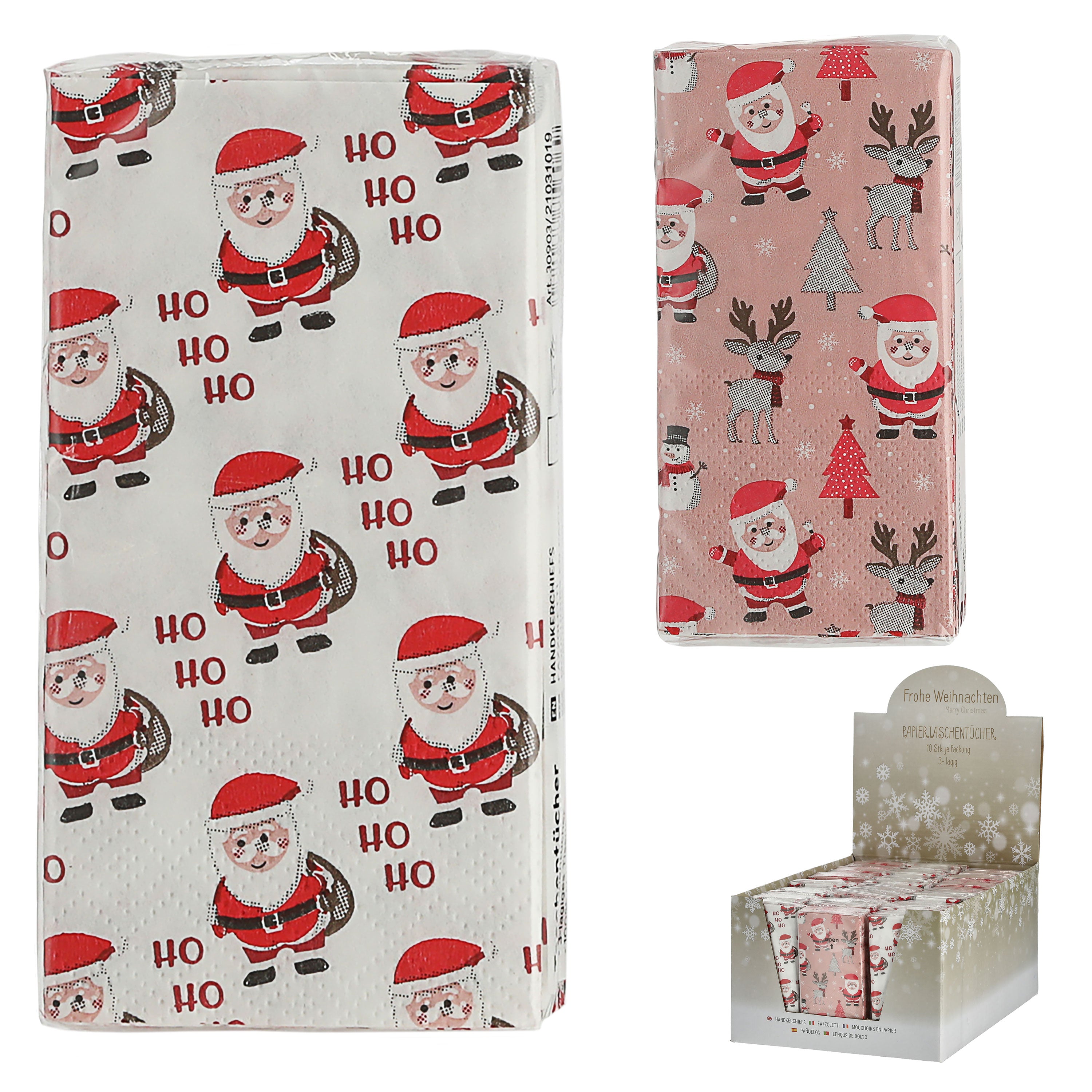 Taschentücher 'Santa' 36x10er Pack Display 5x11x2cm Papier 3lagig Papiertaschentücher Tempo Nikolaus Rentier Tannenbaum HoHoHo 2 Motive