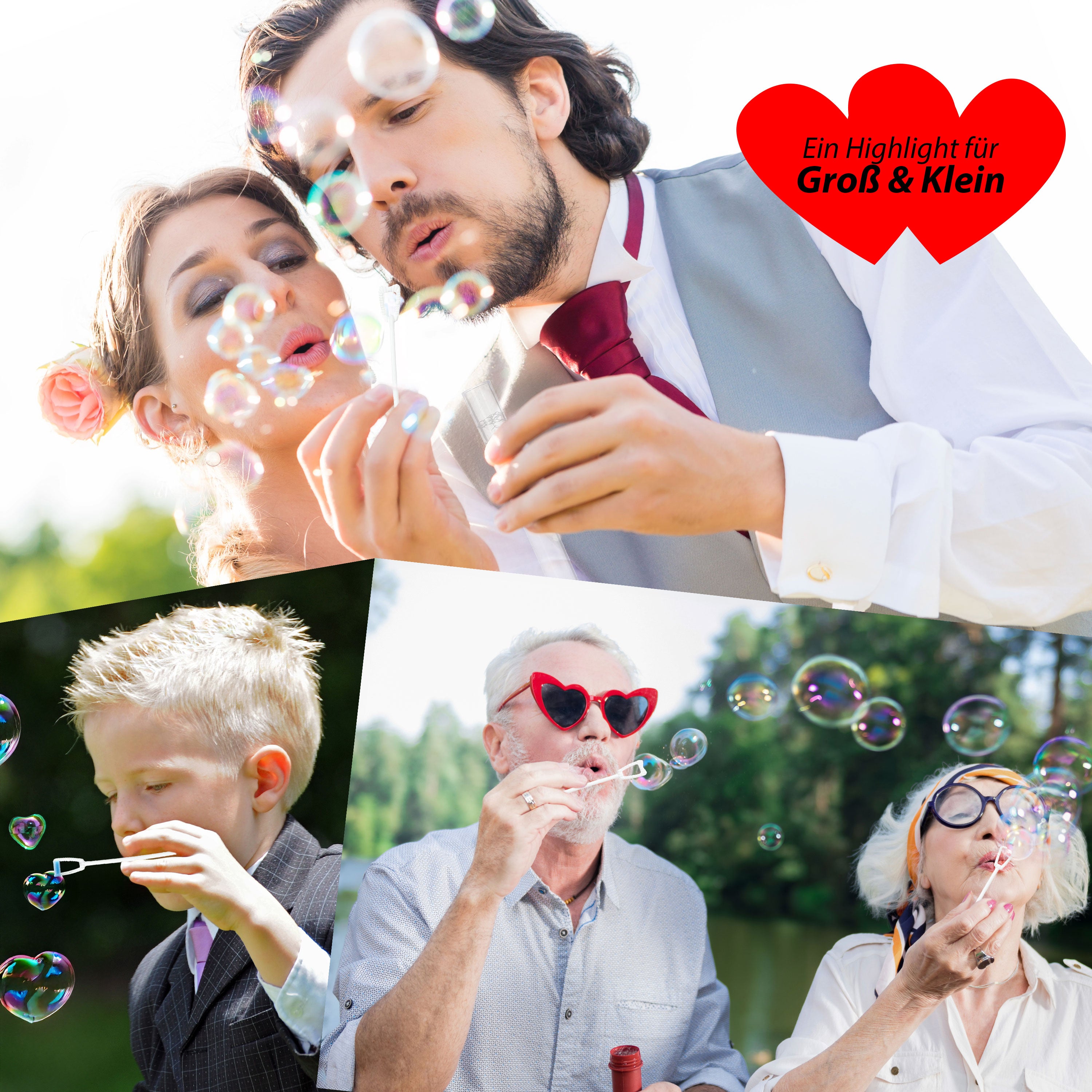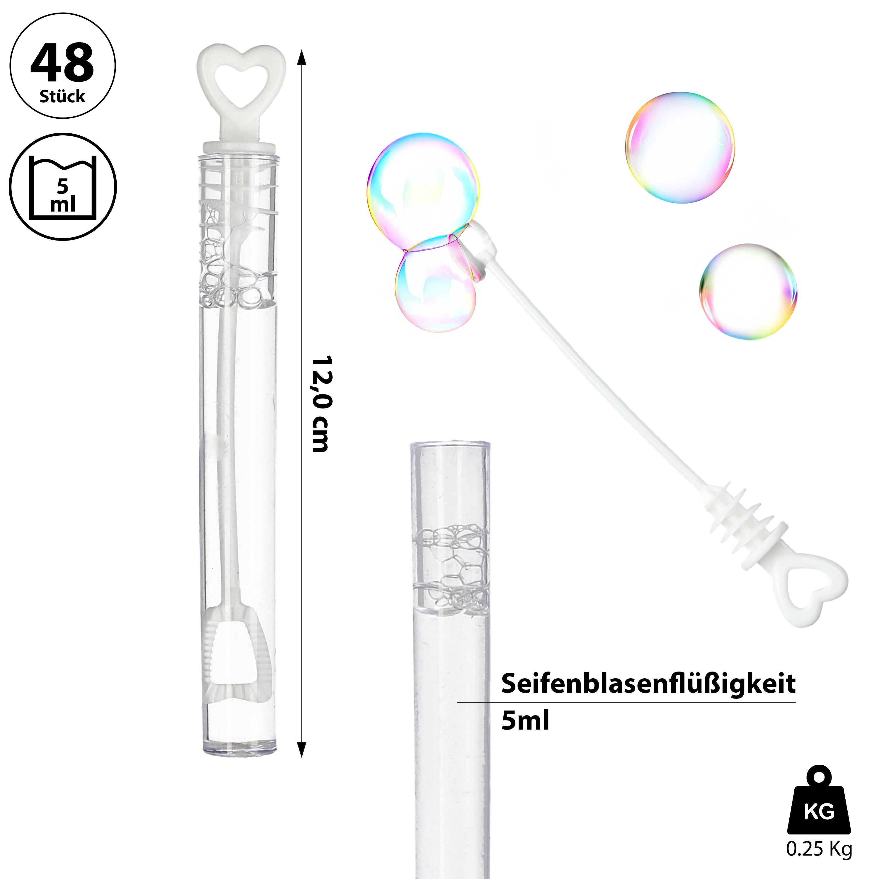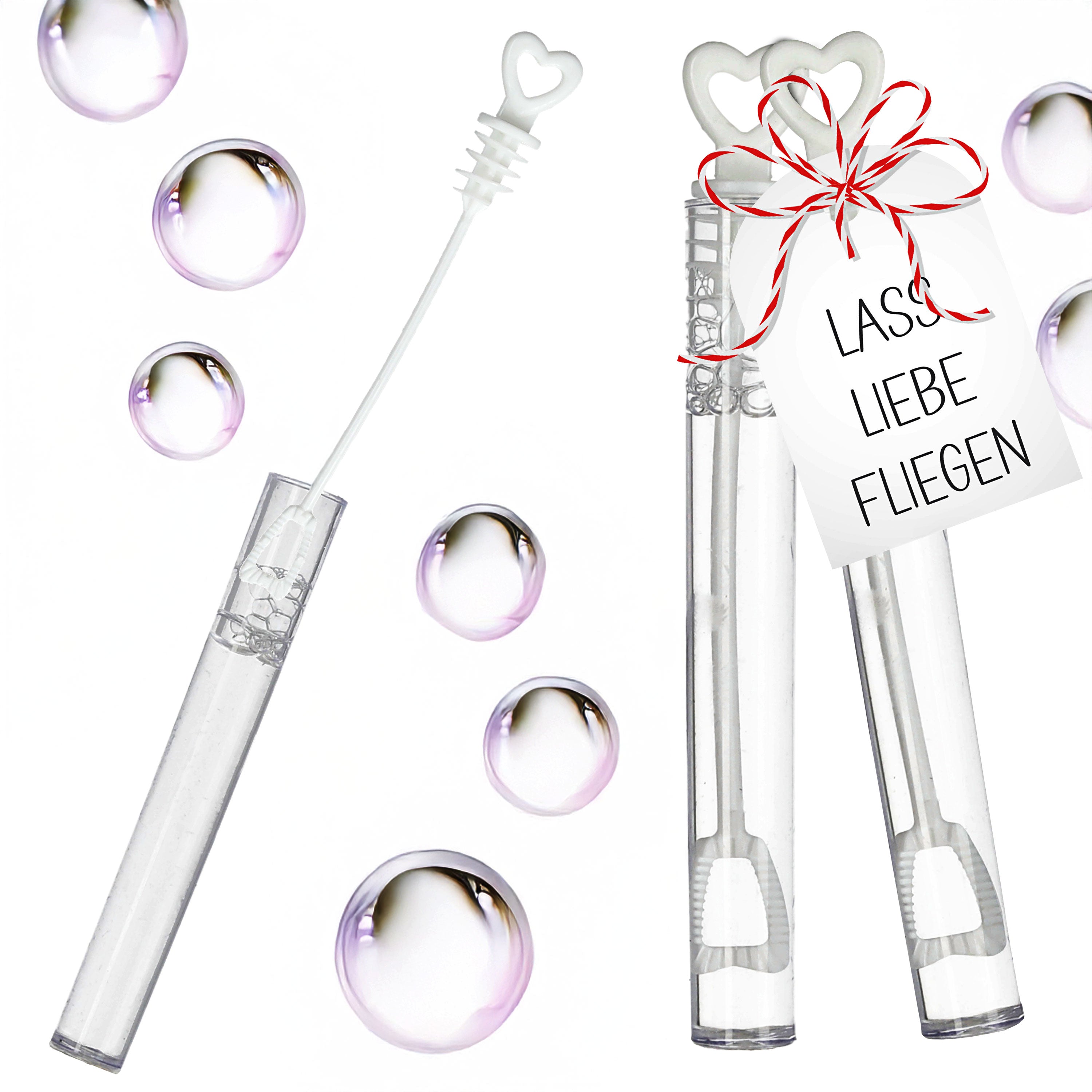 Seifenblasen Set Hochzeit 48er Pack Röhrchen Herzgriff Bubbles Trauung Hochzeitsseifenblasen