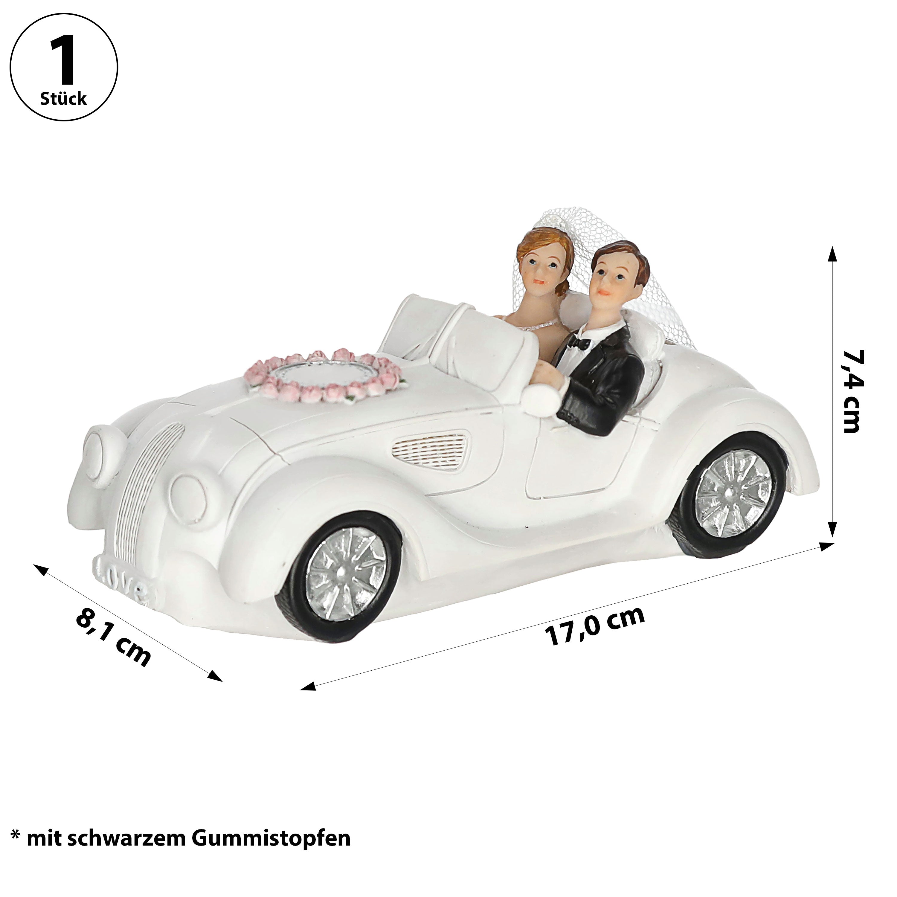 Spardose Brautpaar im Cabrio 17x7,5x8cm Polyresin weiß Gummistopfen Geldeinwurfschlitz Hochzeit Verlobung Sparbüchse