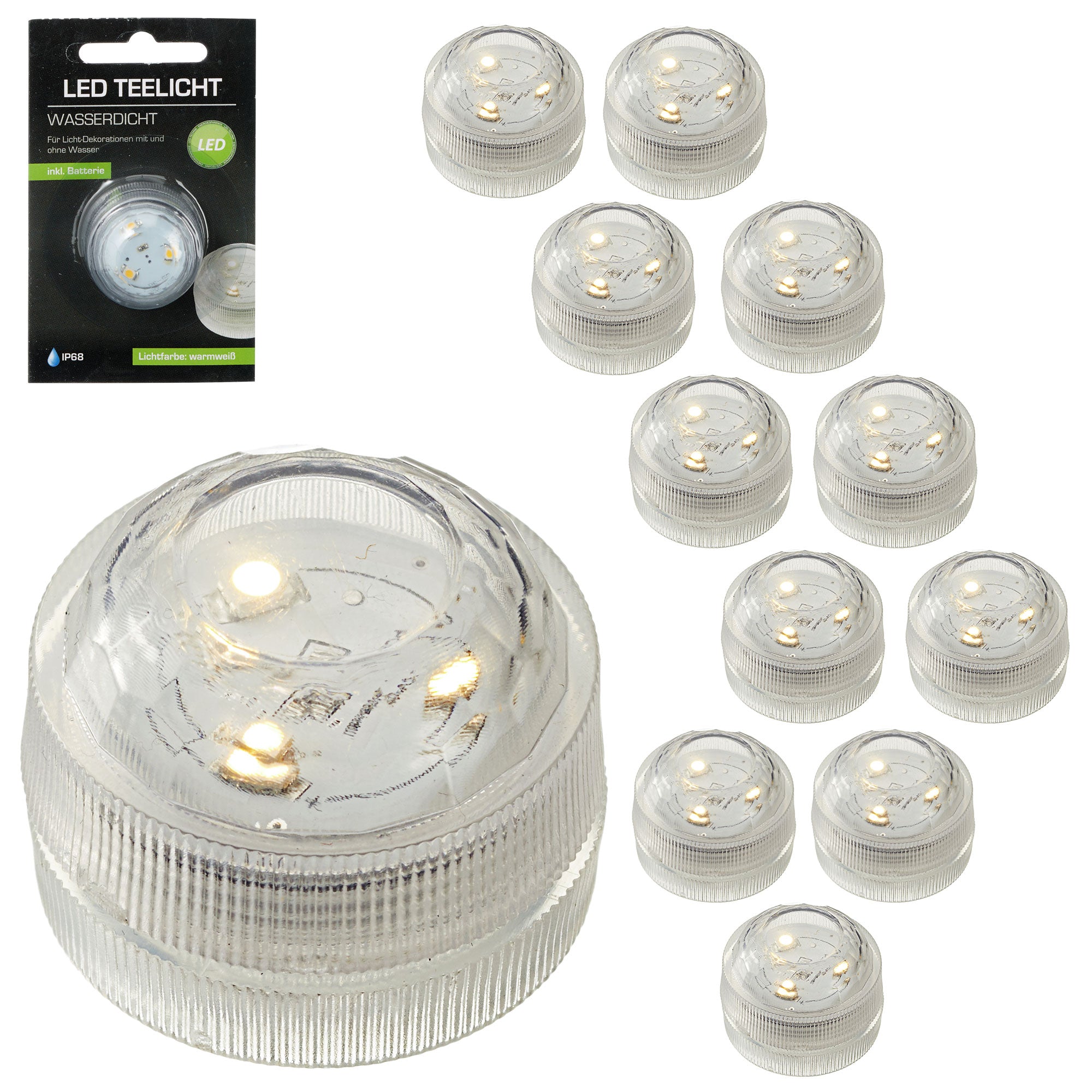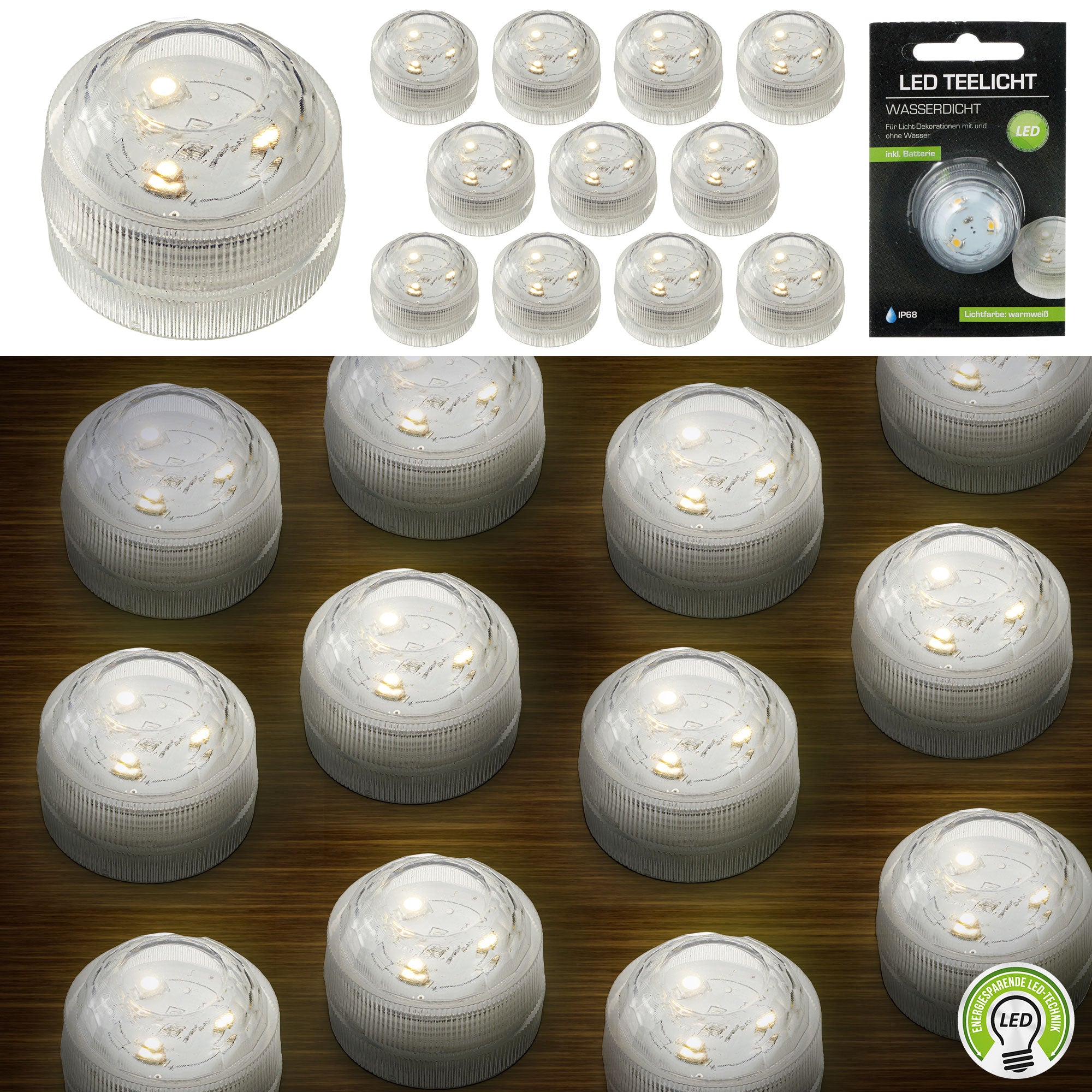 LED Teelicht 12er Set wasserdicht Kerze 3 LEDs warmweiß Teelichter Unterwasser