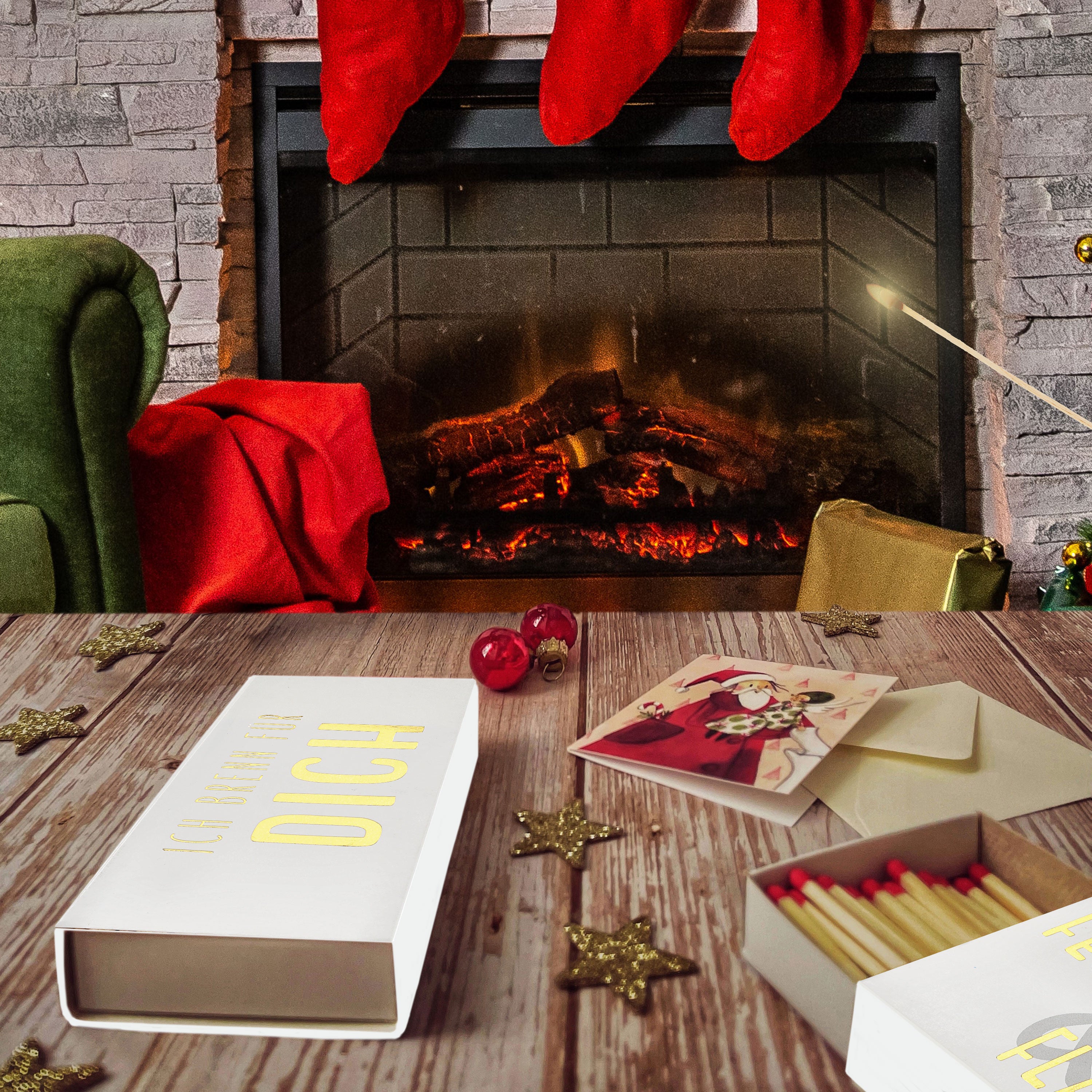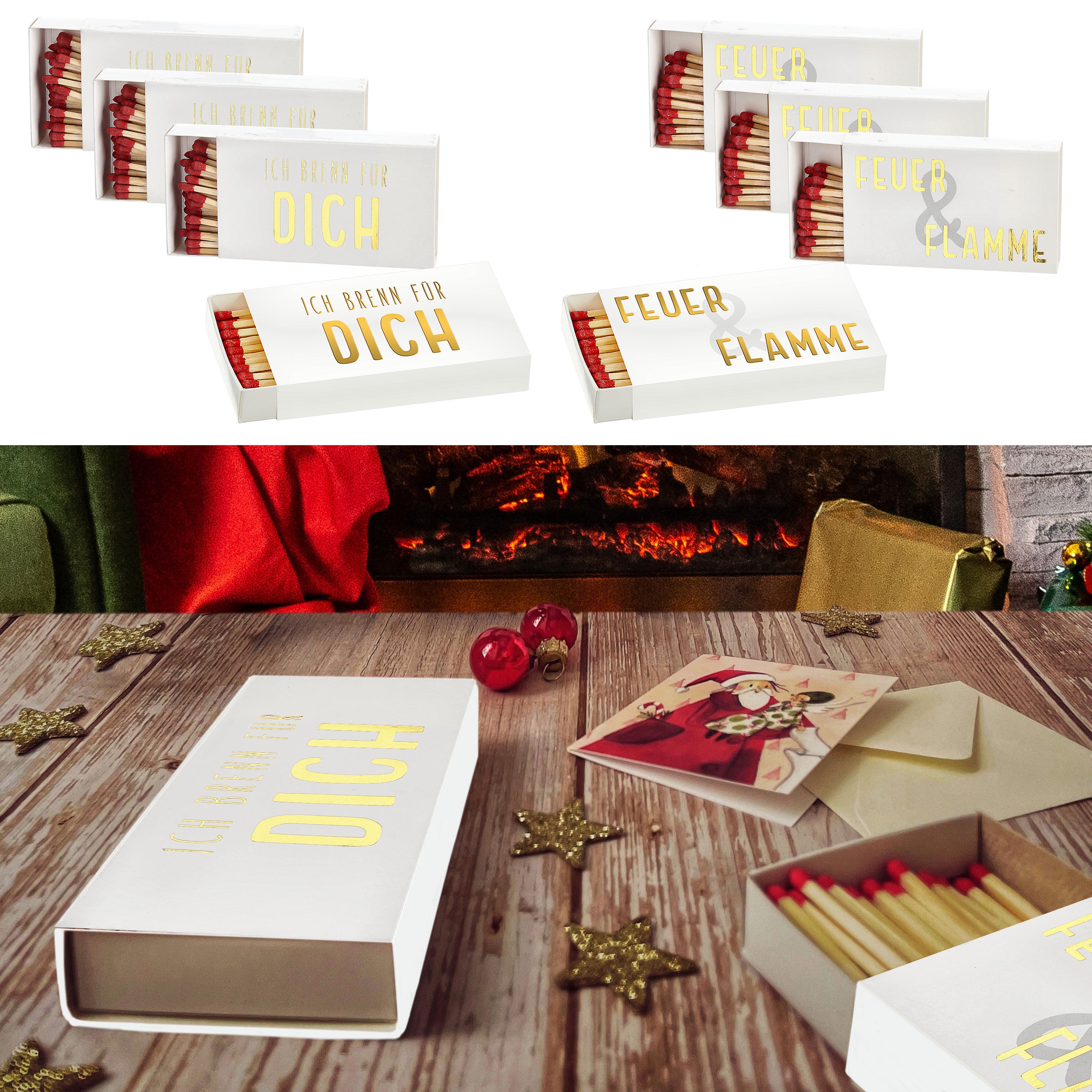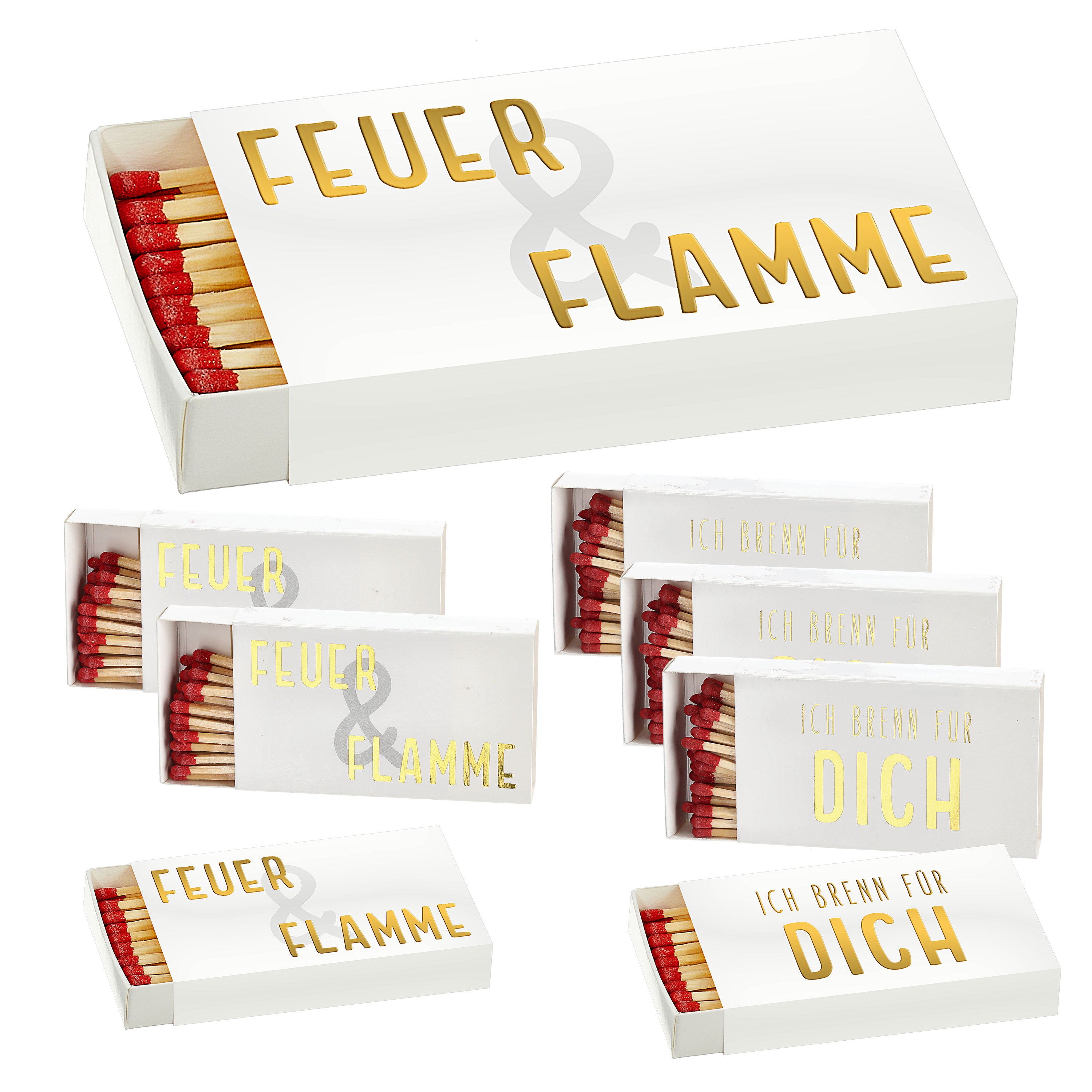 Streichhölzer Spruch 8er Set 2 Motive 10cm lang 12.5x2x6,5cm weiß gold Karton Zündhölzer Streichholzschachtel Anzünder
