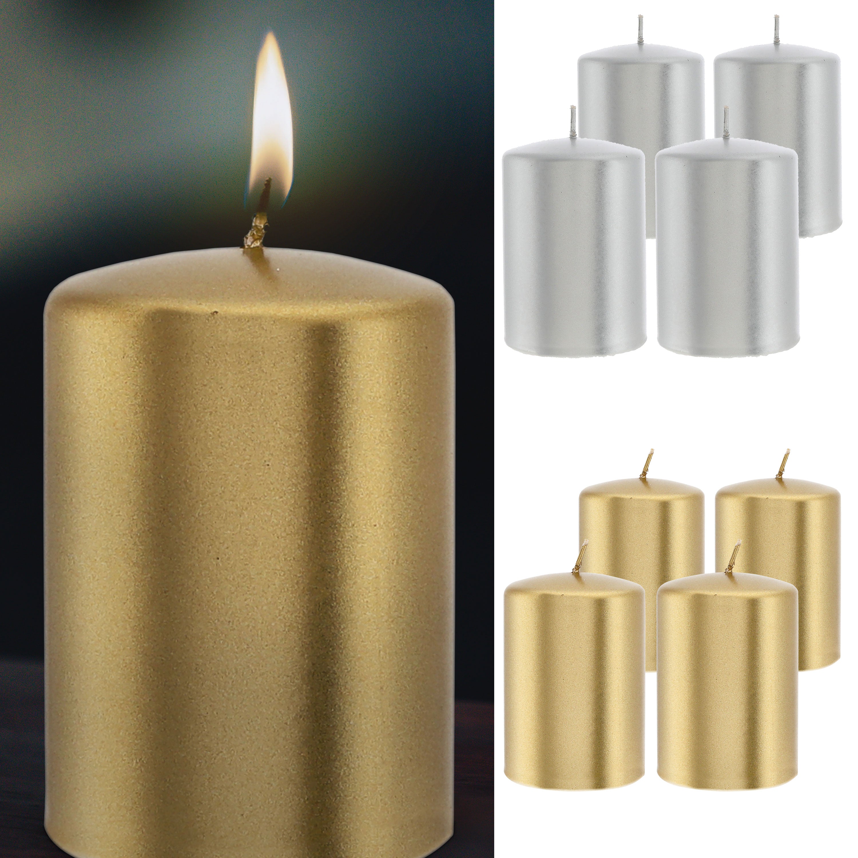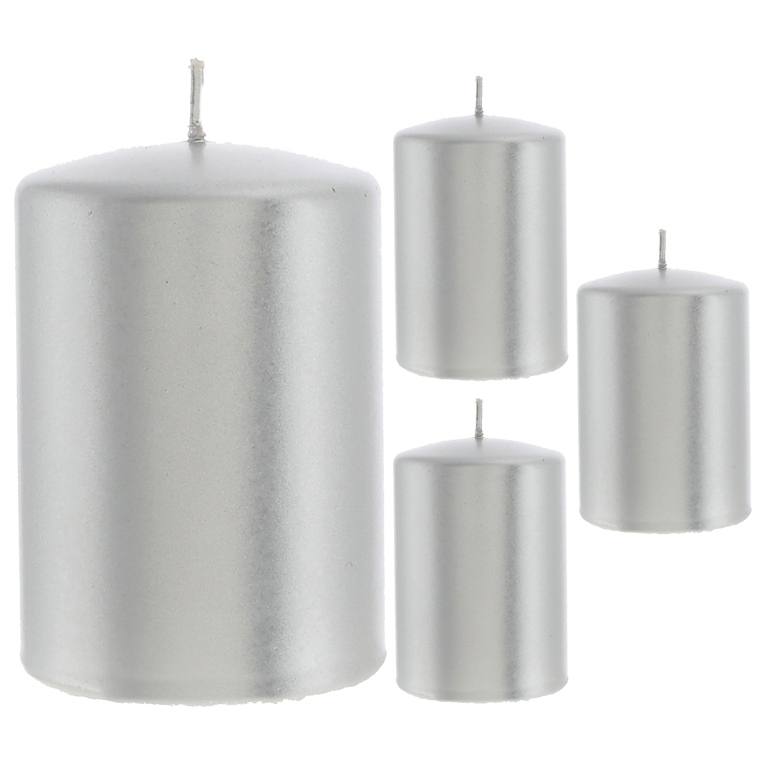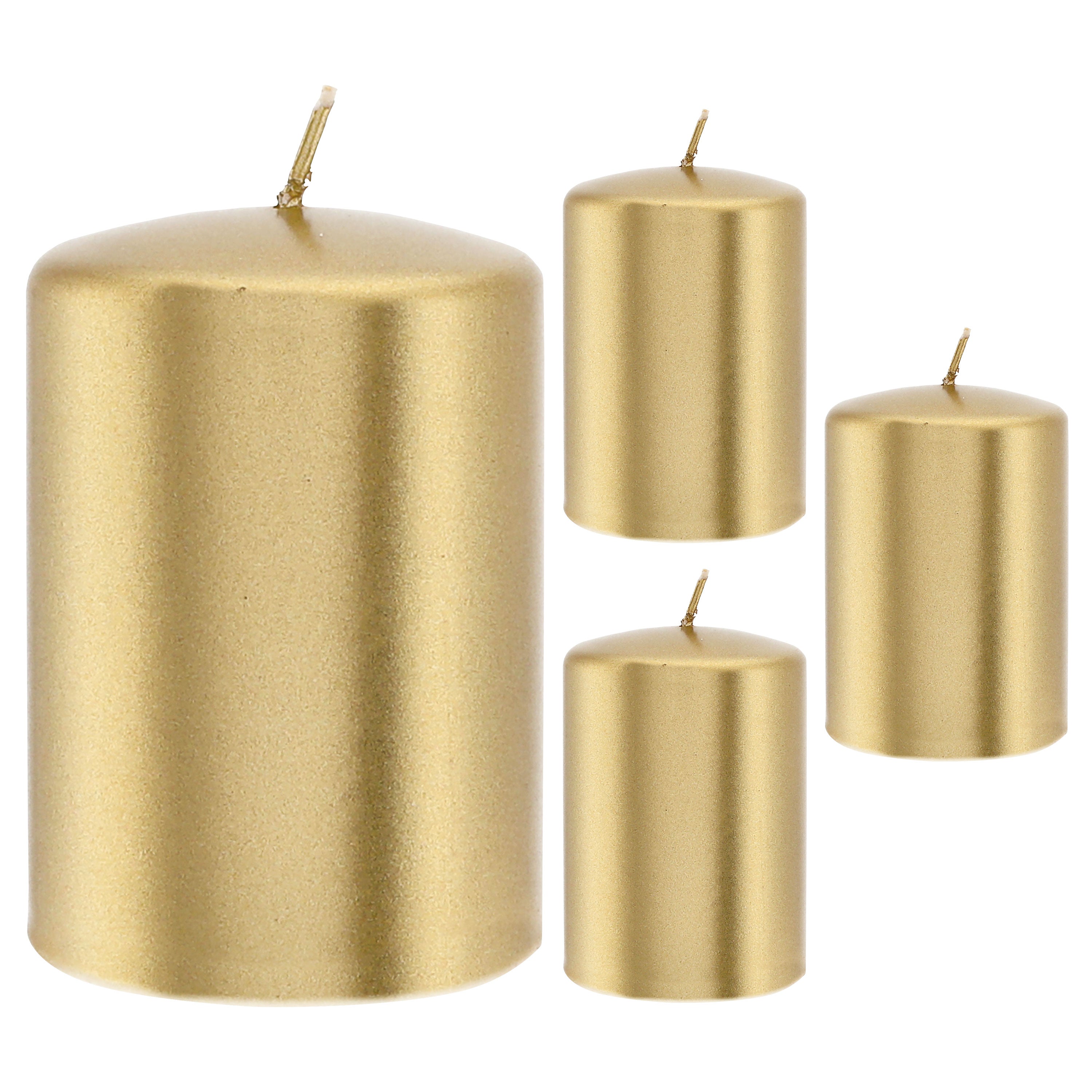 Stumpenkerze 4er Set gold/silber rund Ø6,8x10cm Paraffin Dekokerze metallisch Blockkerze Wachskerze Brenndauer 40h