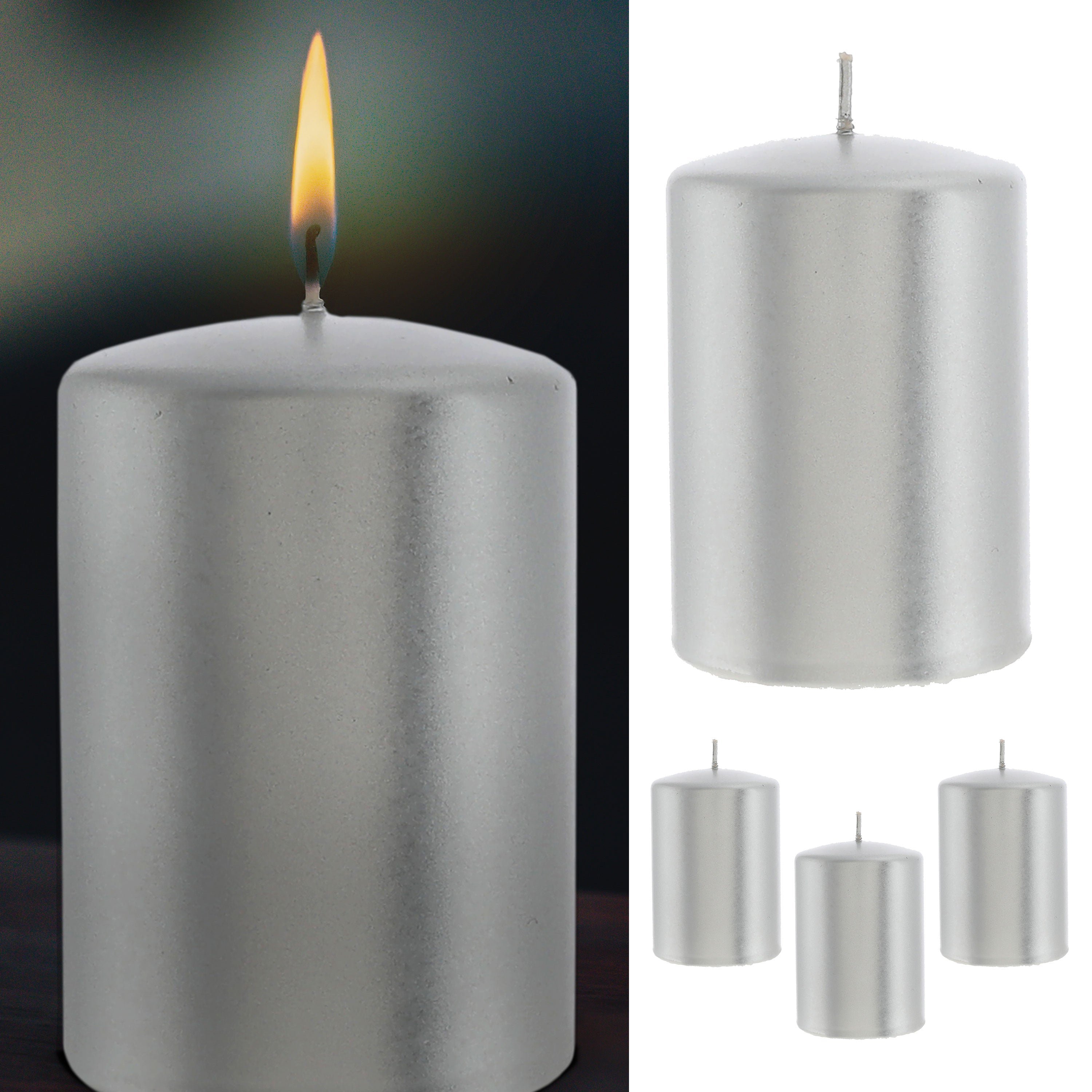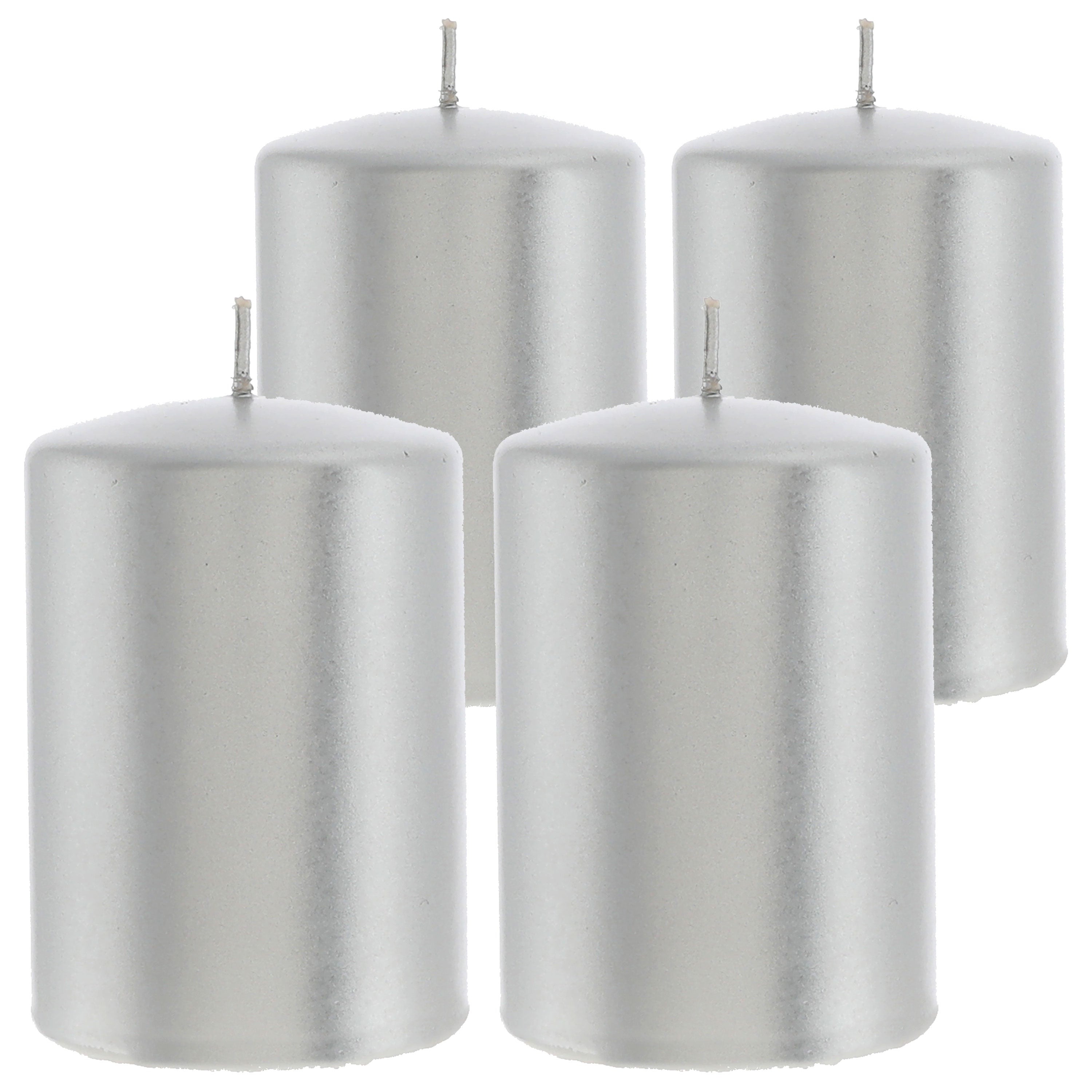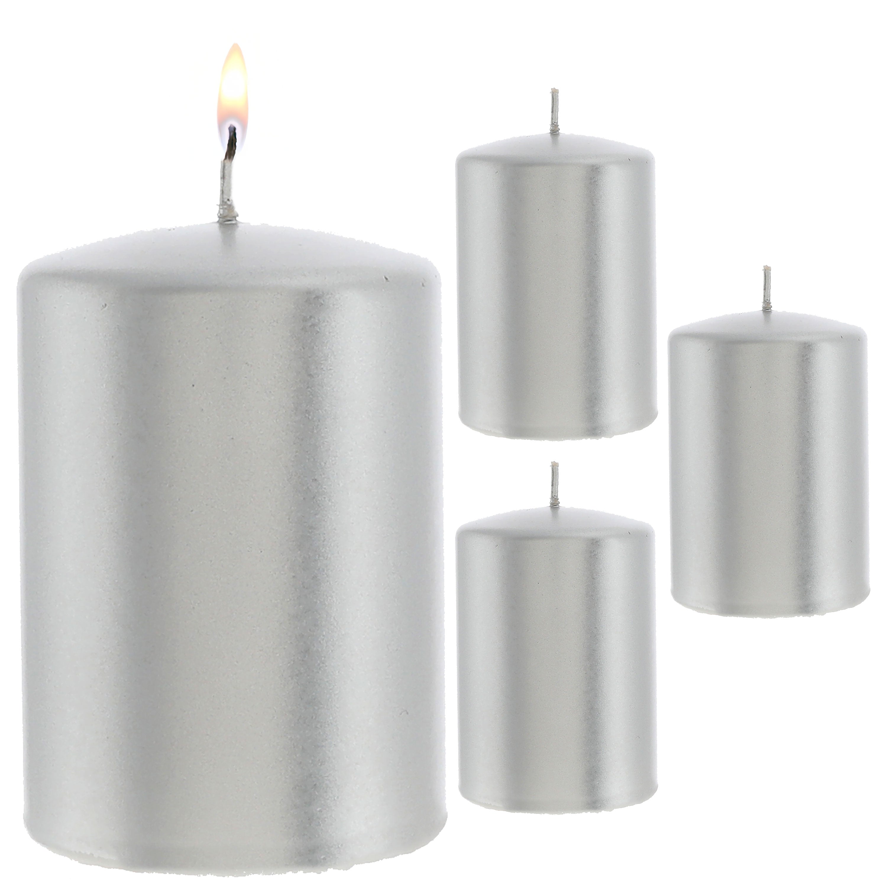 Stumpenkerze 4er Set gold/silber rund Ø6,8x10cm Paraffin Dekokerze metallisch Blockkerze Wachskerze Brenndauer 40h