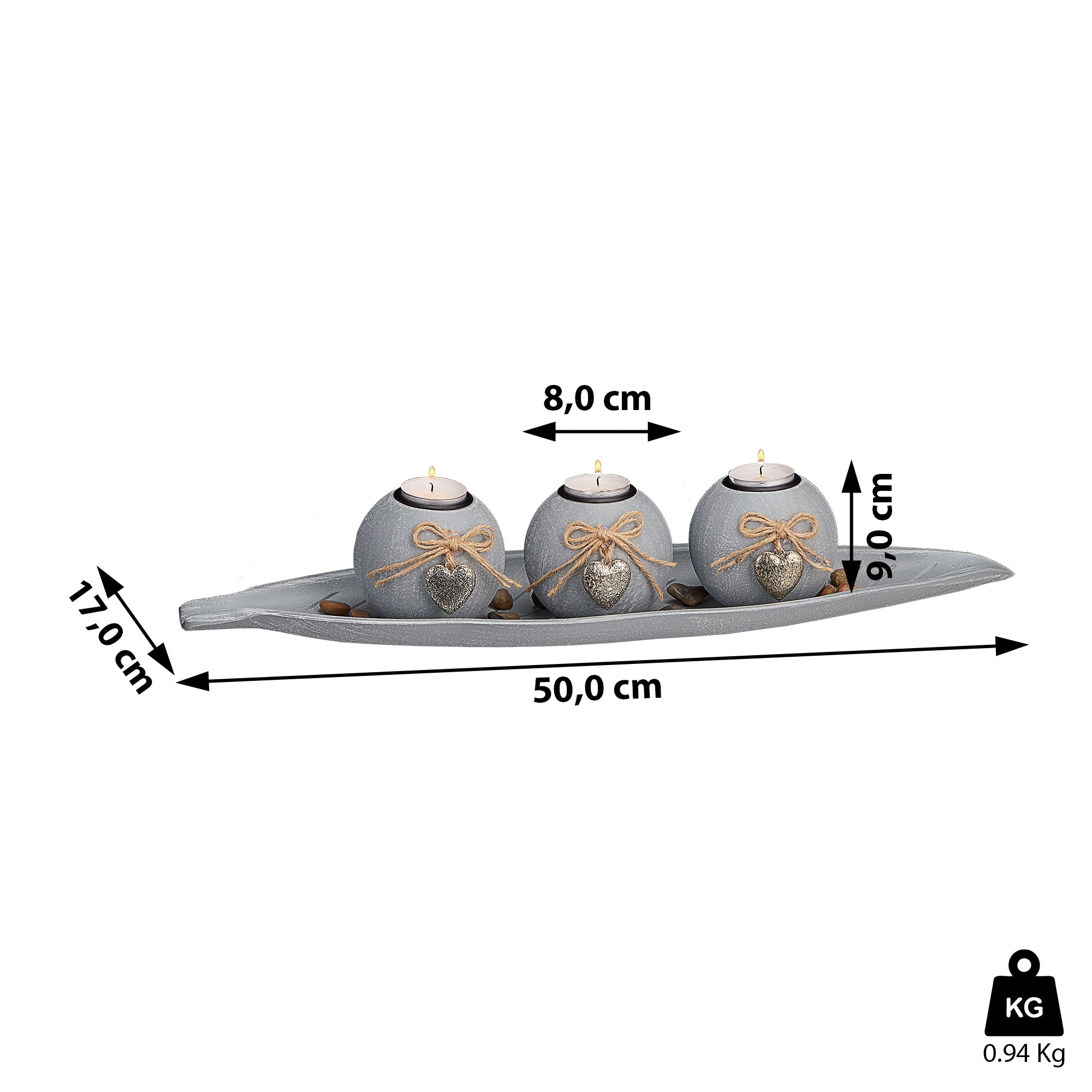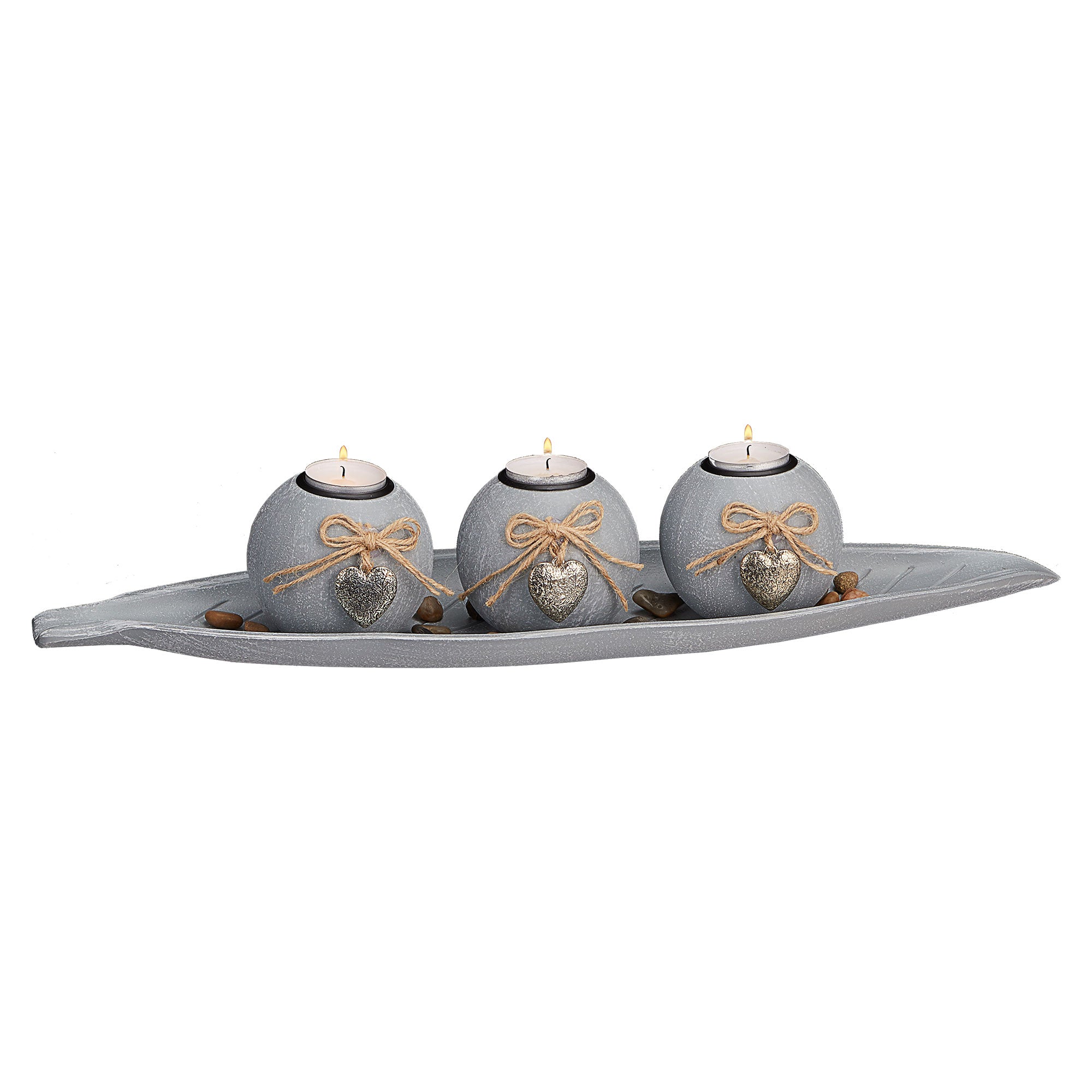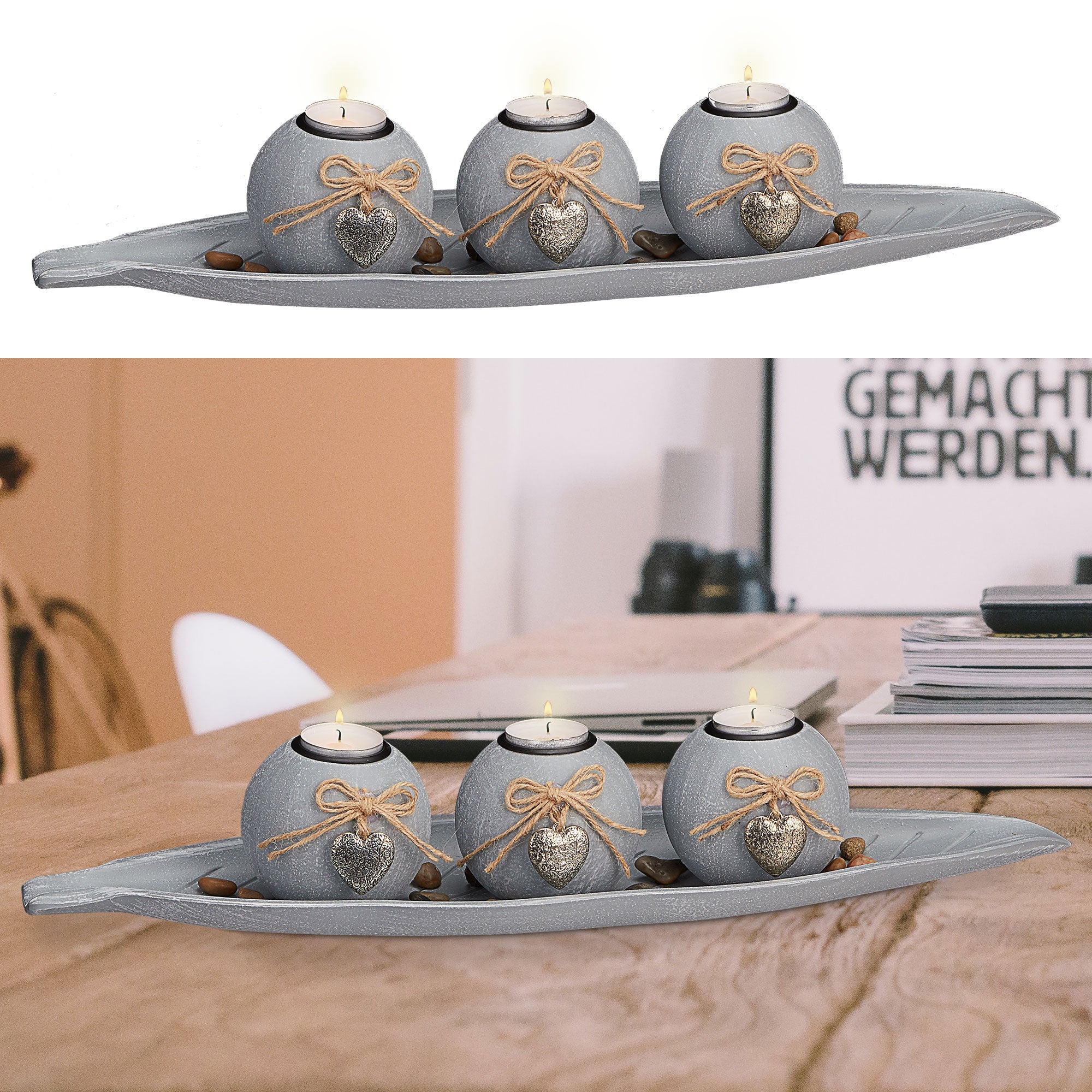 Teelichtleuchter "Blatt" 3 Kugeln mit Teelicht Schale in Blattform Herzen Kerzenhalter