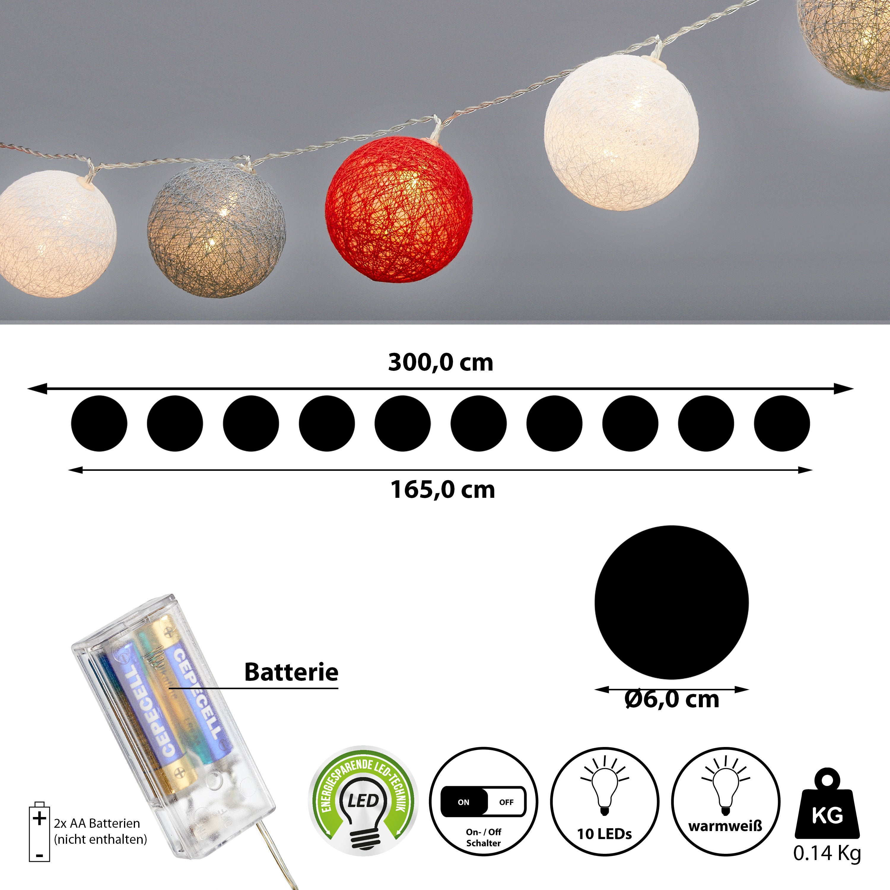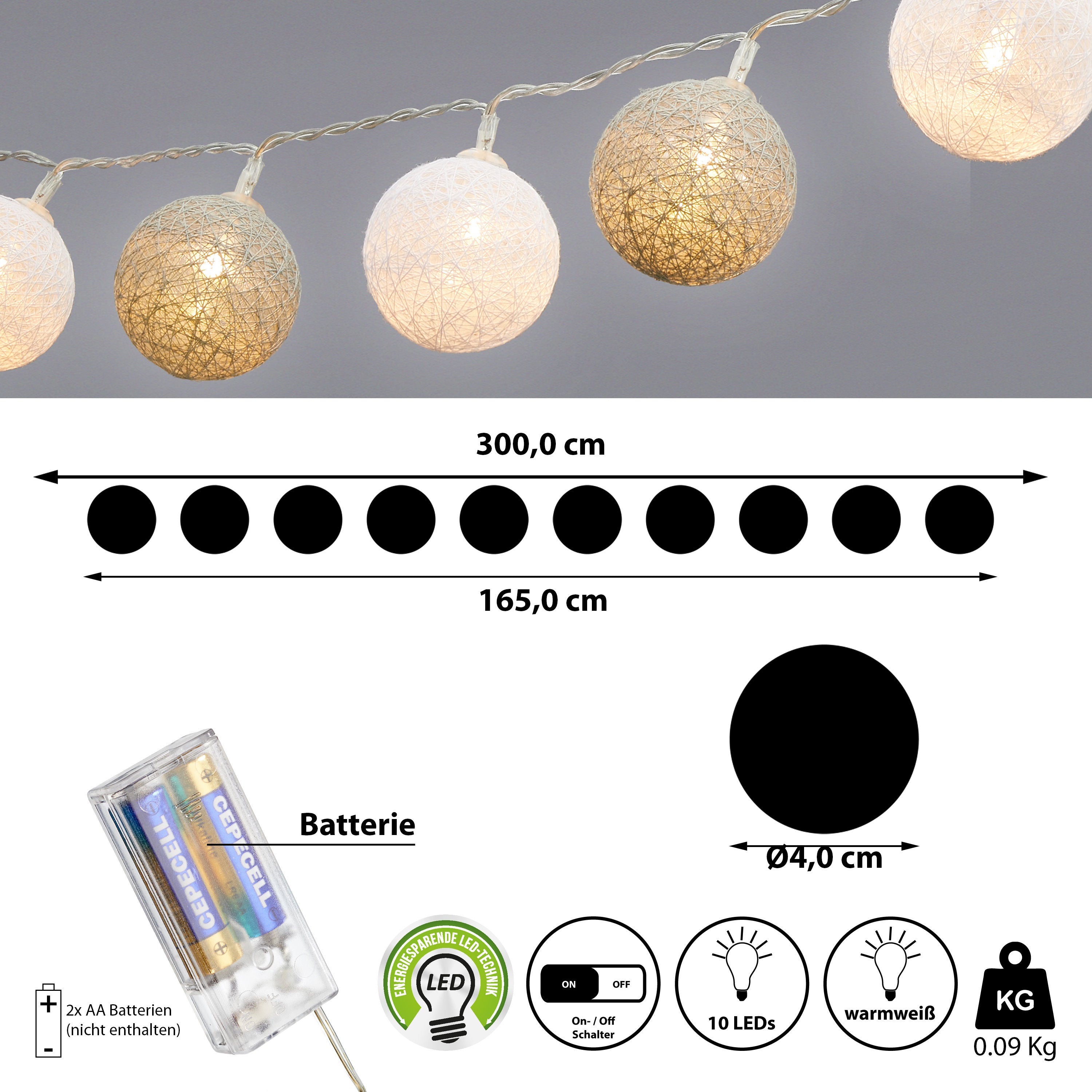 | LED Lichterkette 10 Kugeln | ||||||||||||||