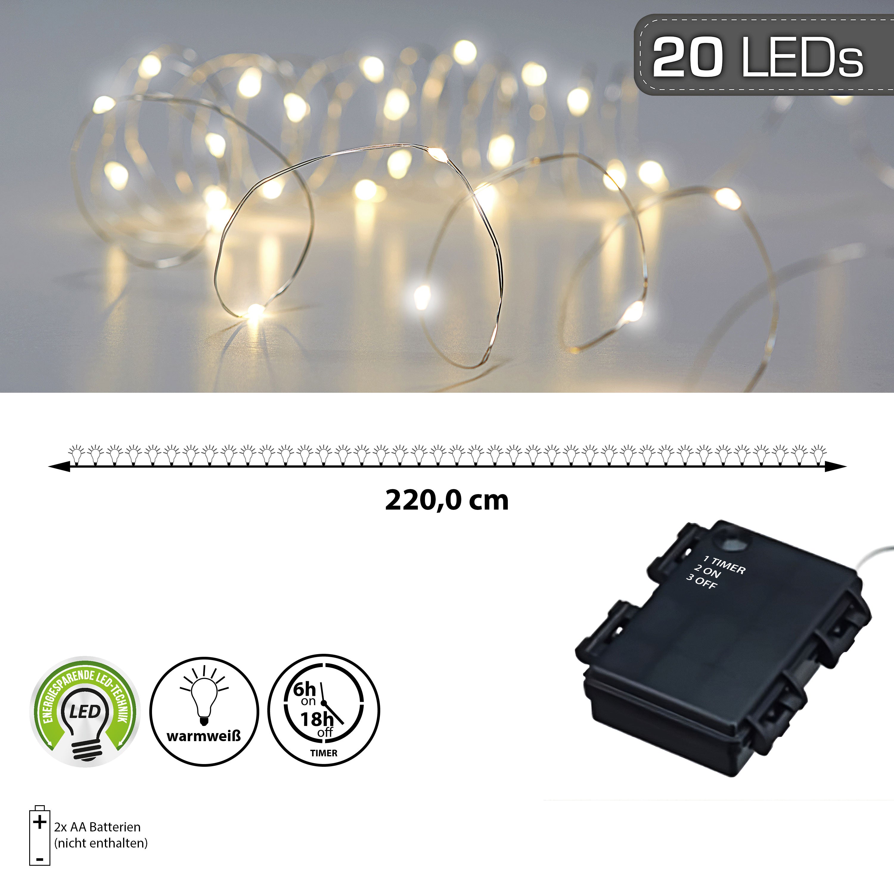 Lichterkette Outdoor 220cm 20 LED warmweiß Silberdraht batteriebetrieben Weihnachtsbeleuchtung Leuchtdraht