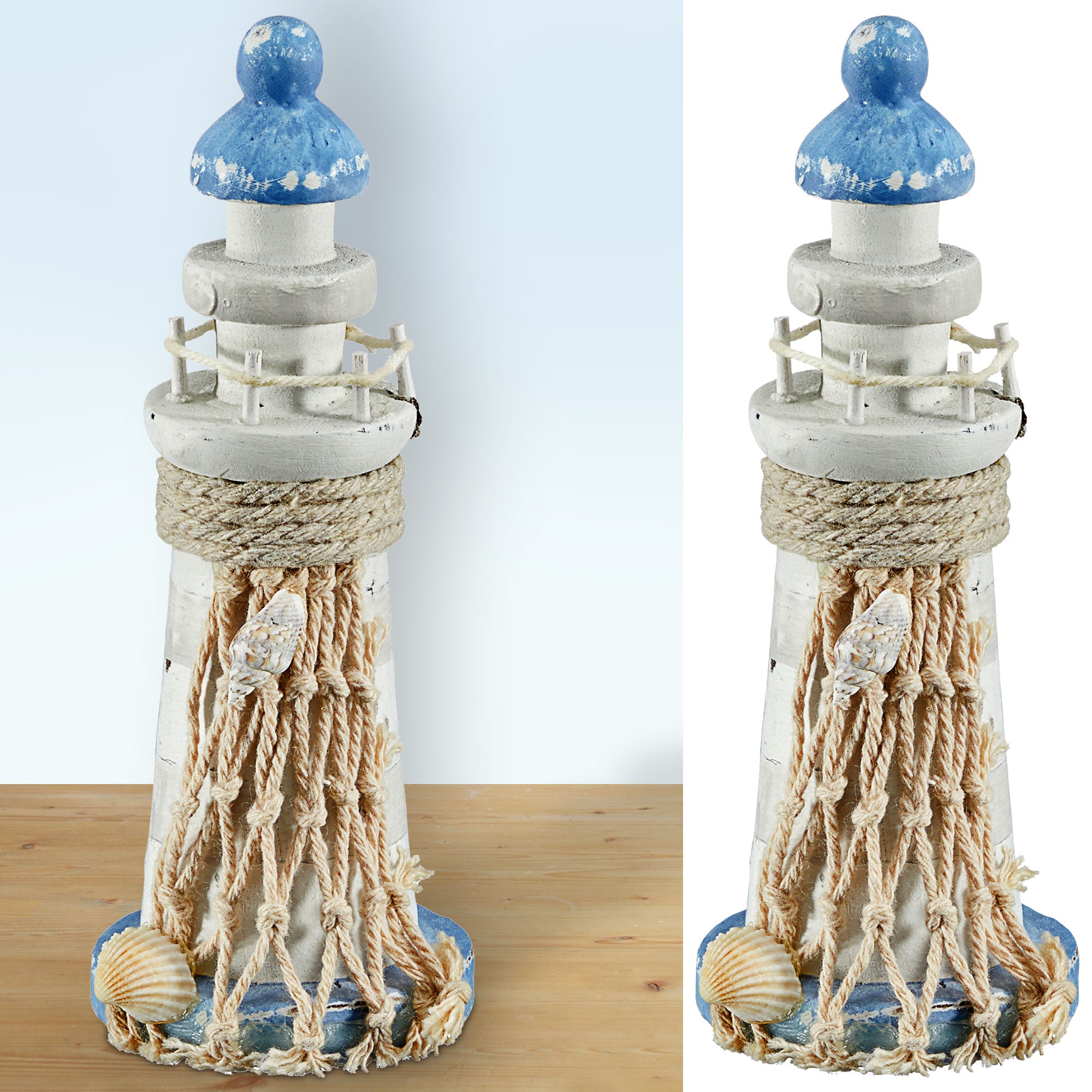 | Deko Leuchtturm Höhe 12,5 cm Seil Muscheln | ||||||||||||