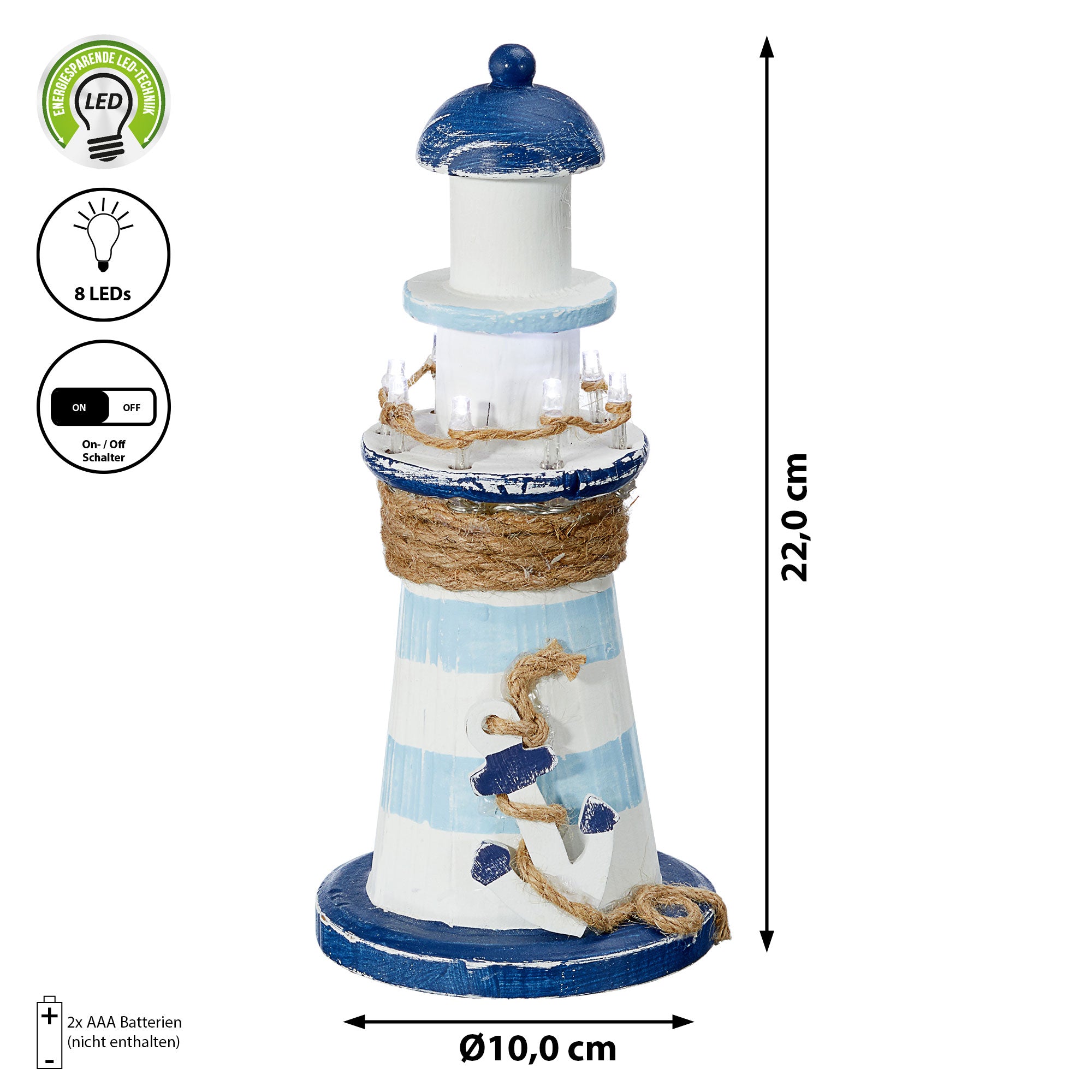 | LED Deko Leuchtturm Höhe 22 cm Tau Anker | ||||||||||||||