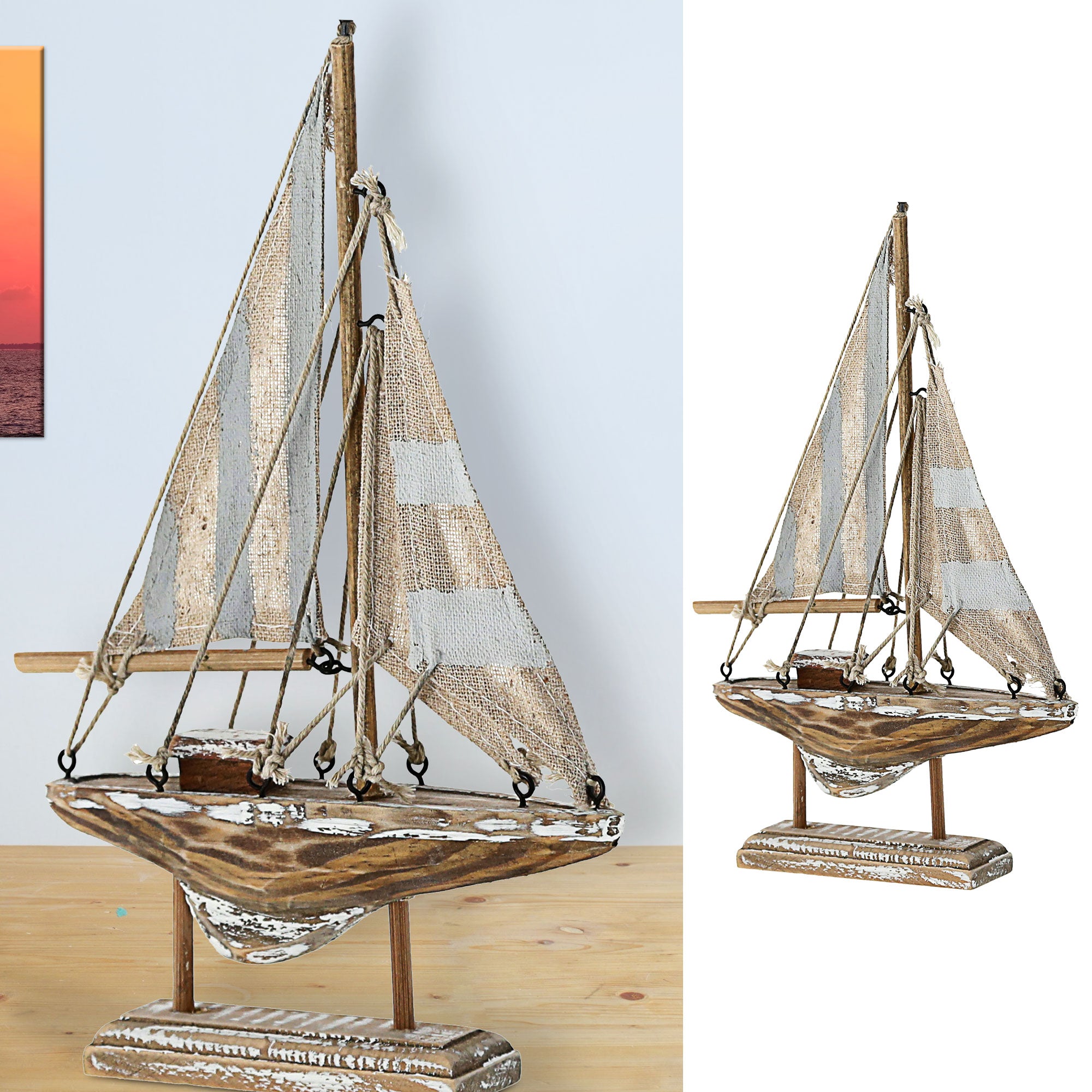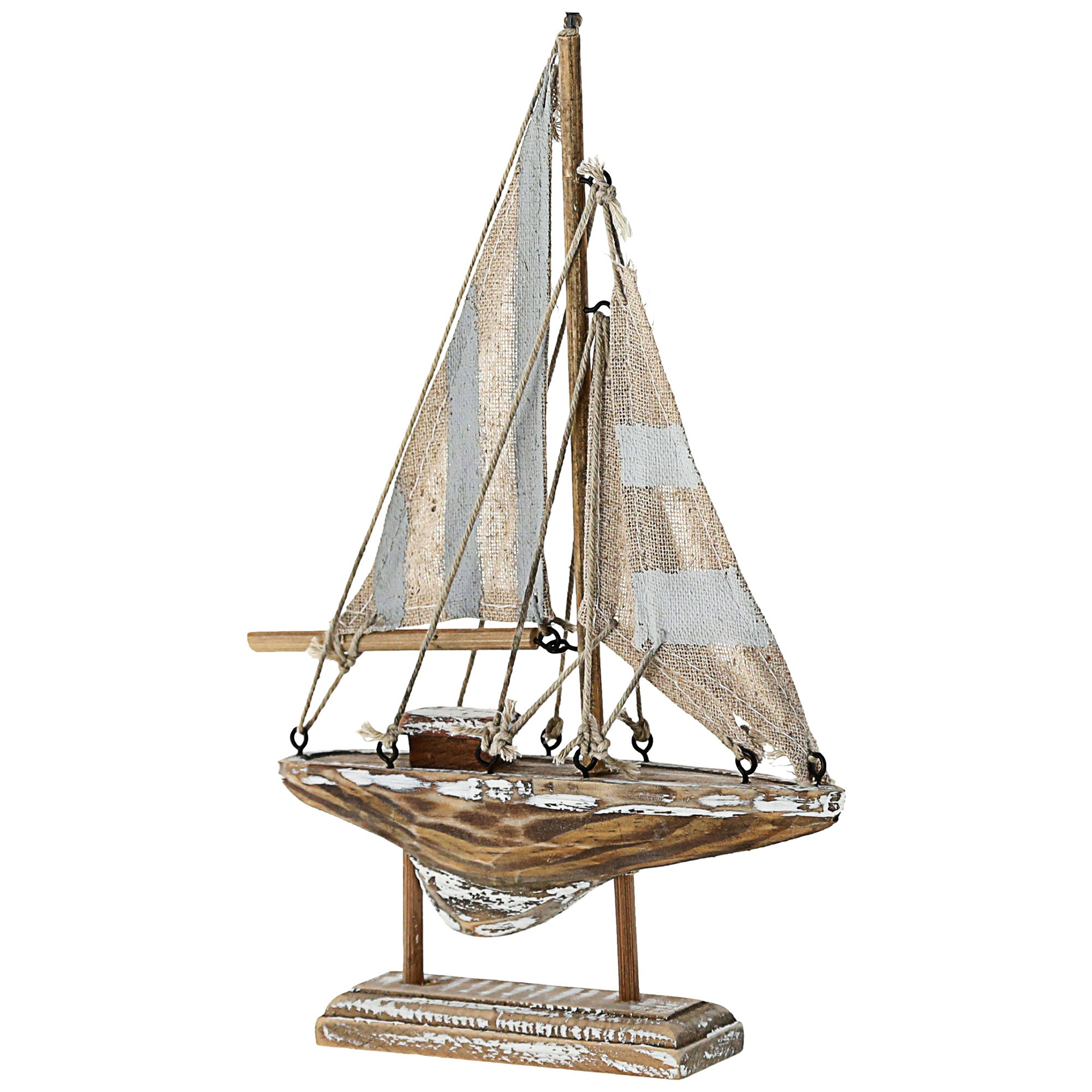 Segelboot auf Sockel blau grau natur H22cm maritim Boot Schiff Dekoschiff Holzboot Segeln