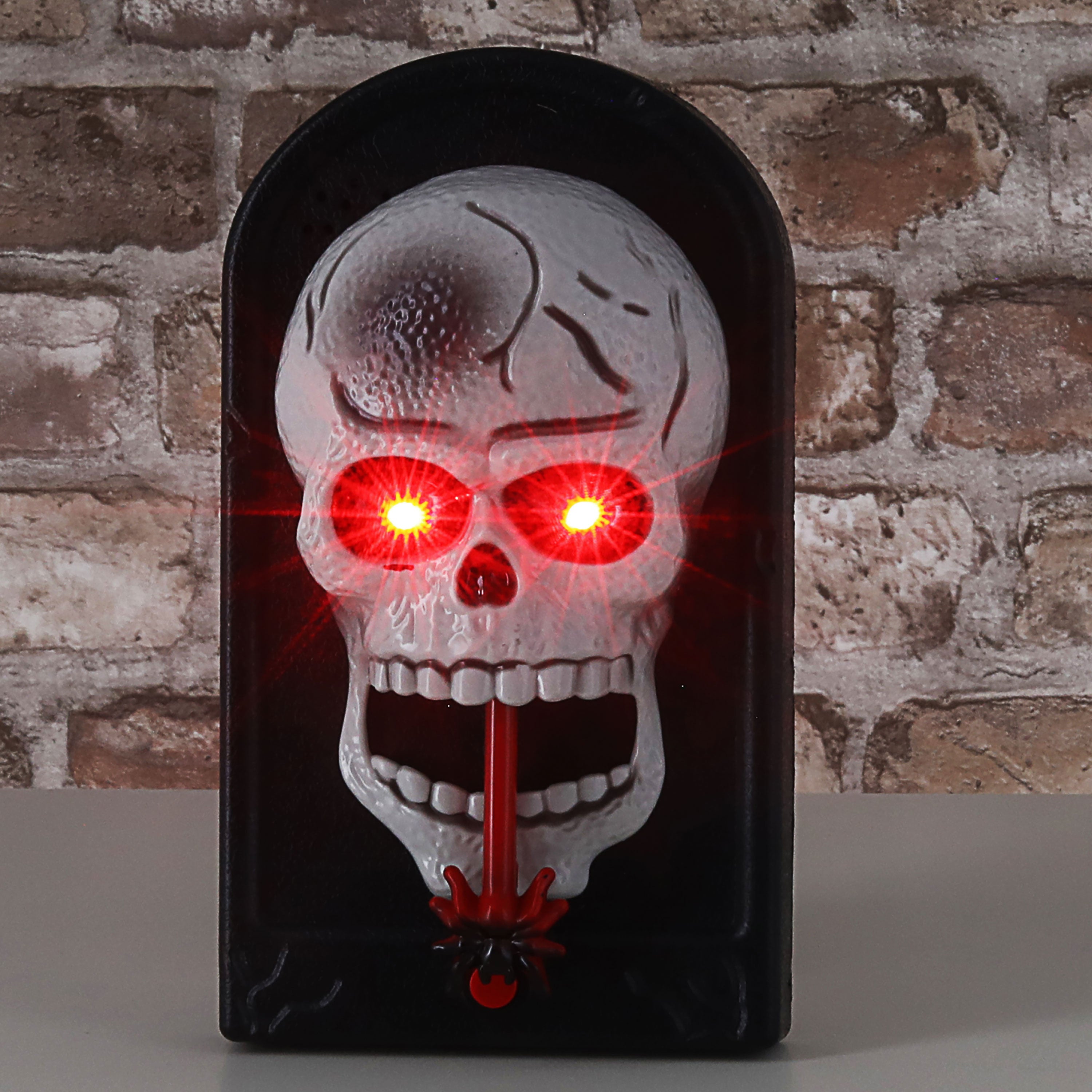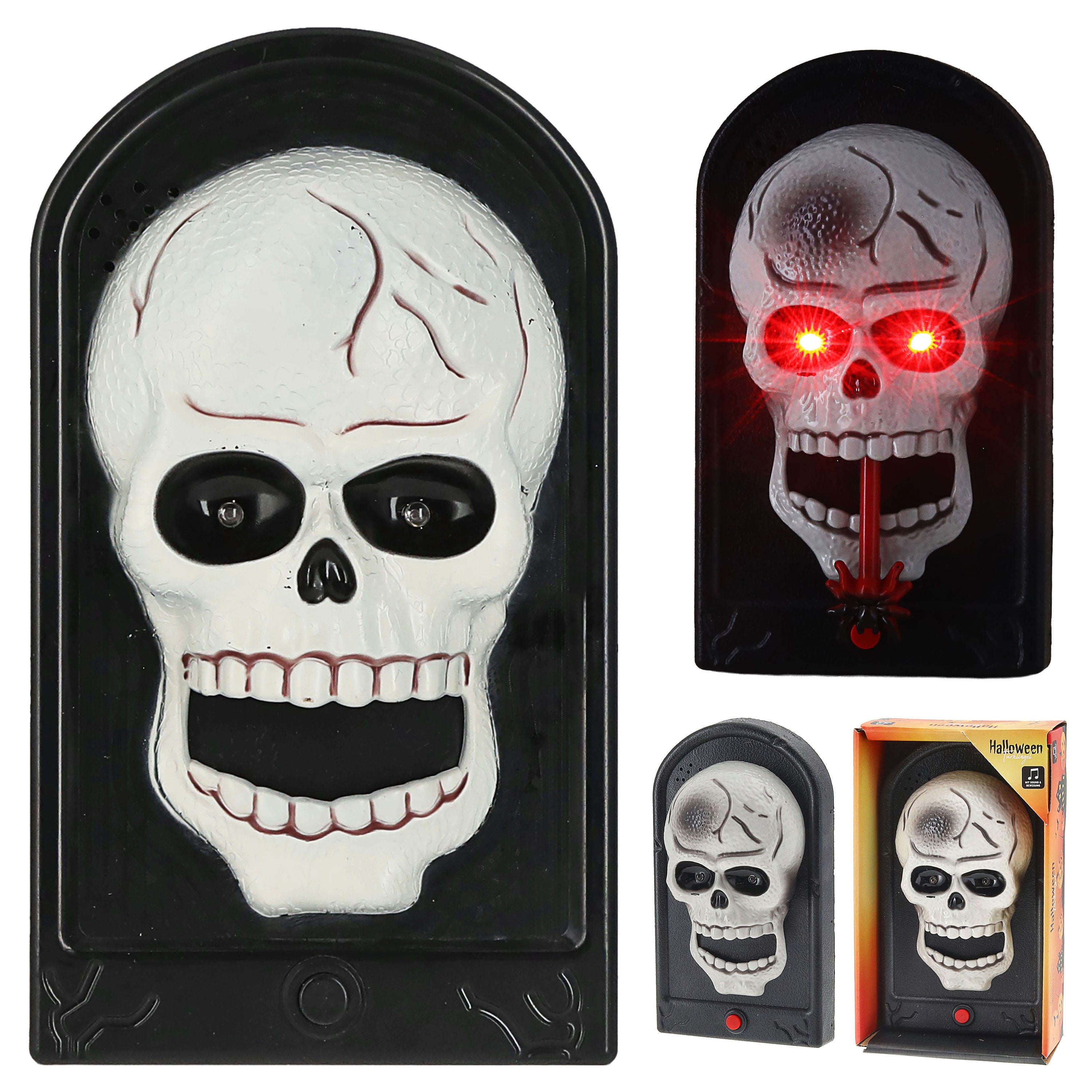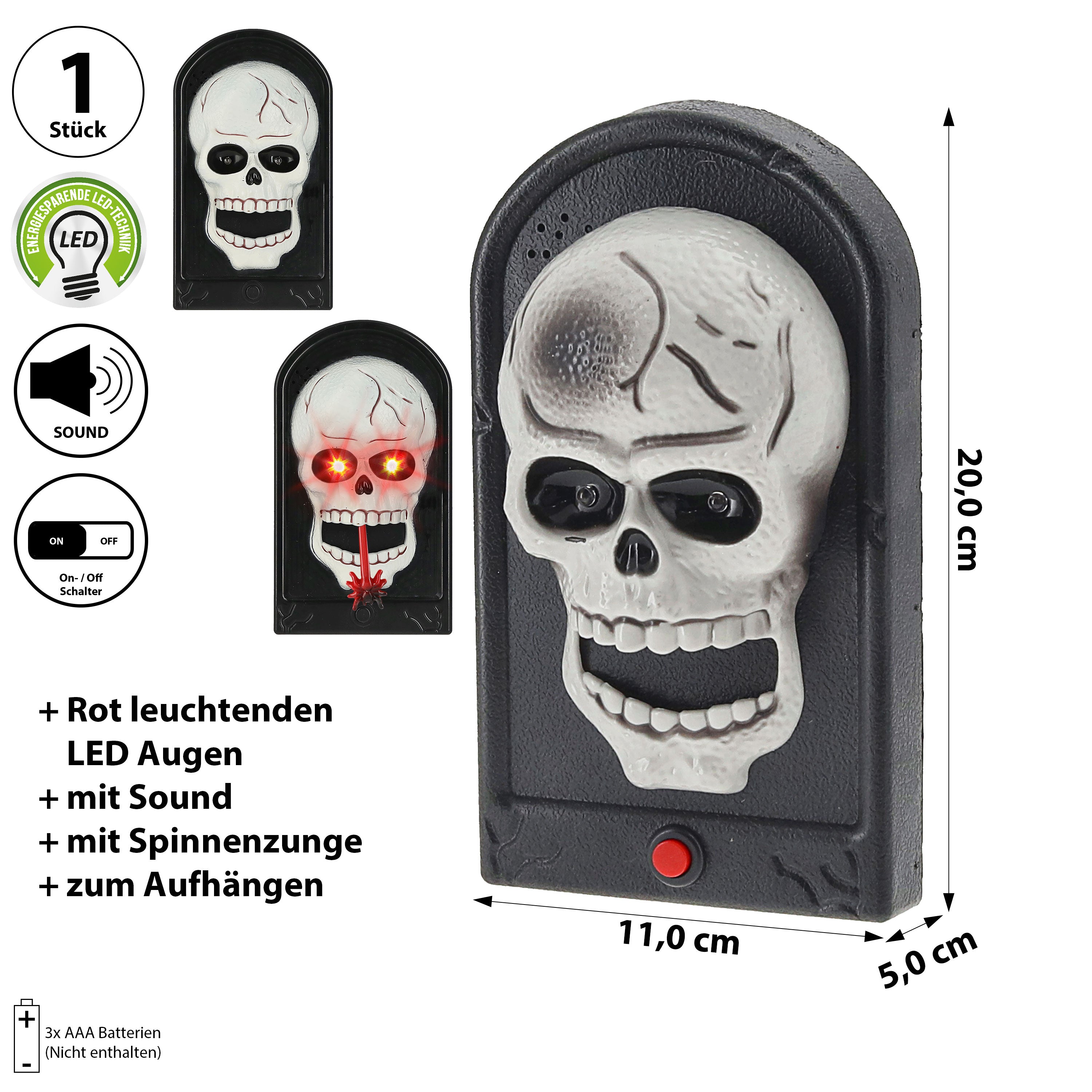Halloween Türklingel Totenkopf animiert 11x20x5cm Kunststoff Sound leuchtende Augen Spinnenzunge Klingel zum Aufhängen