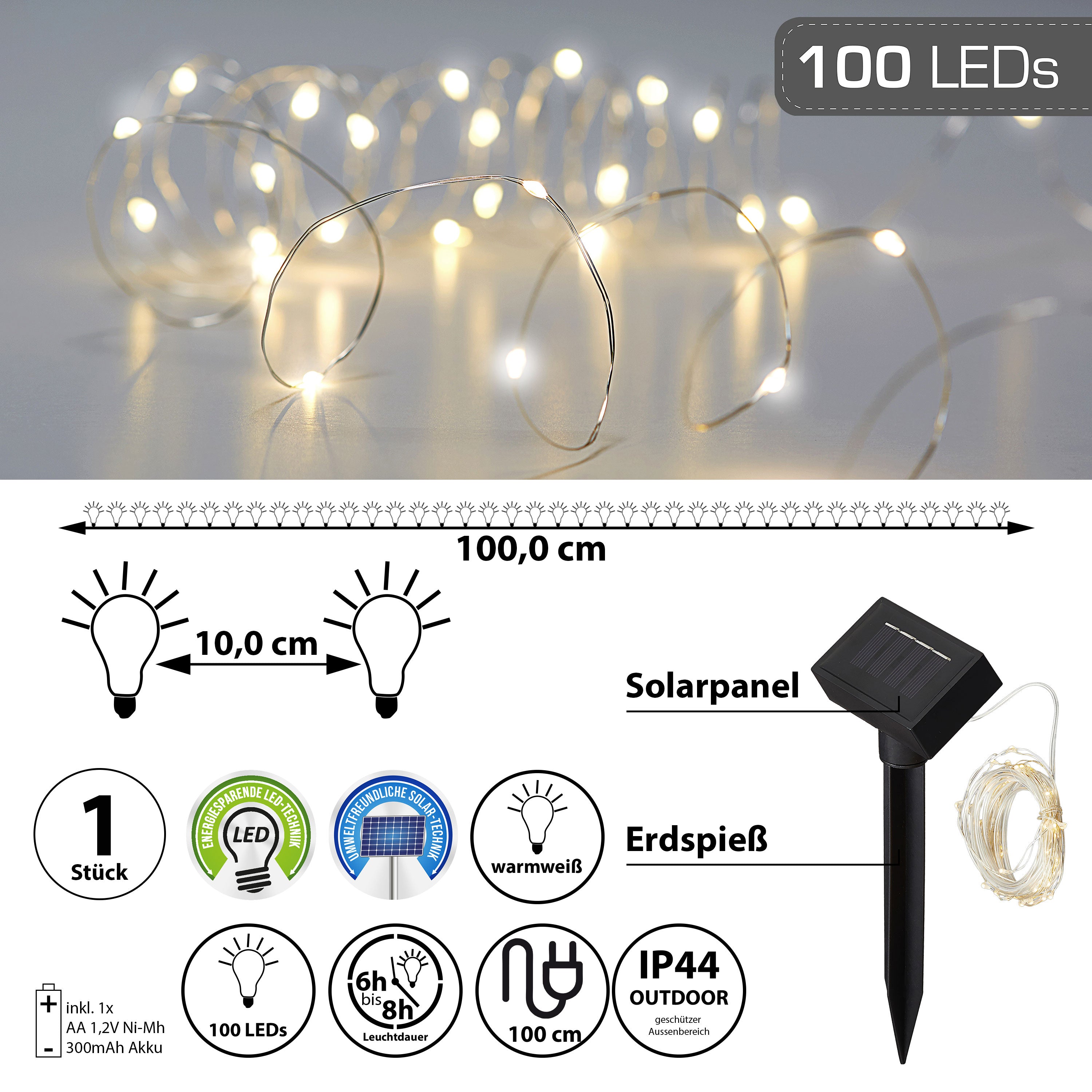 | LED Solar Lichterkette Outdoor 100 LEDs Timerfunktion | ||||||||||||||