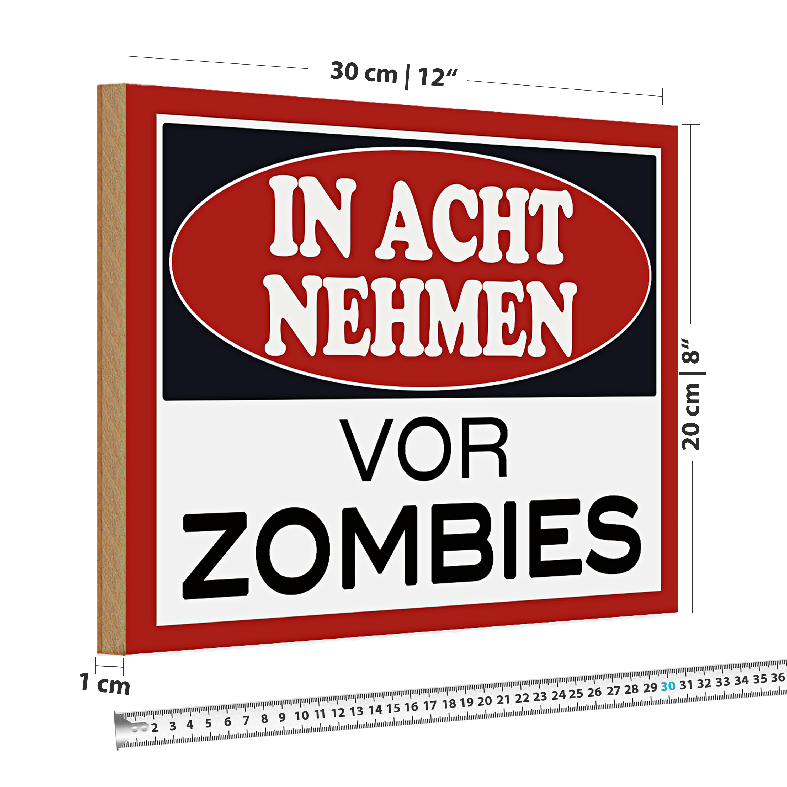 Holzschild Hinweis 30x20cm in acht nehmen vor Zombies