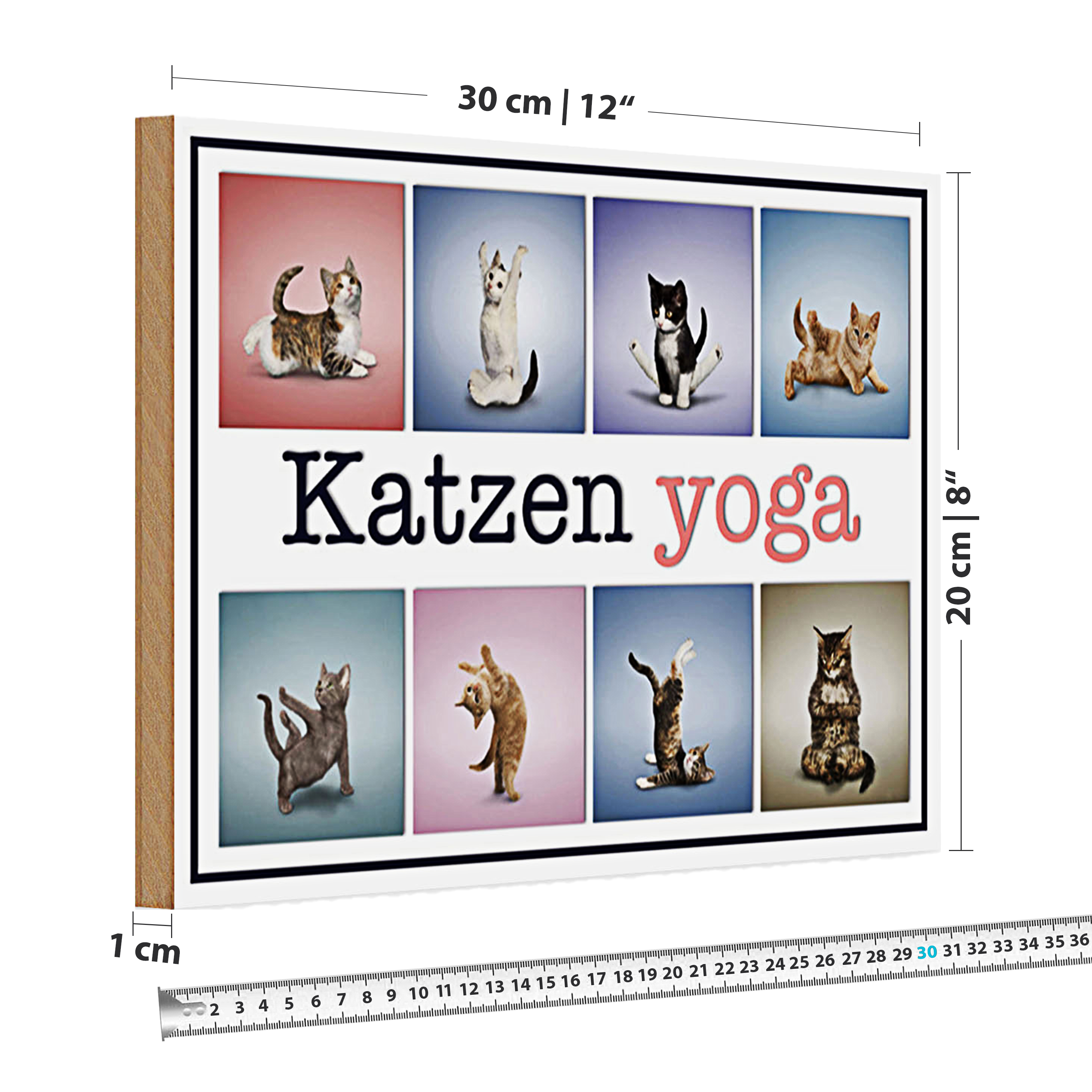 Holzschild Katze 30x20cm Katzen Yoga bunte Dekoration