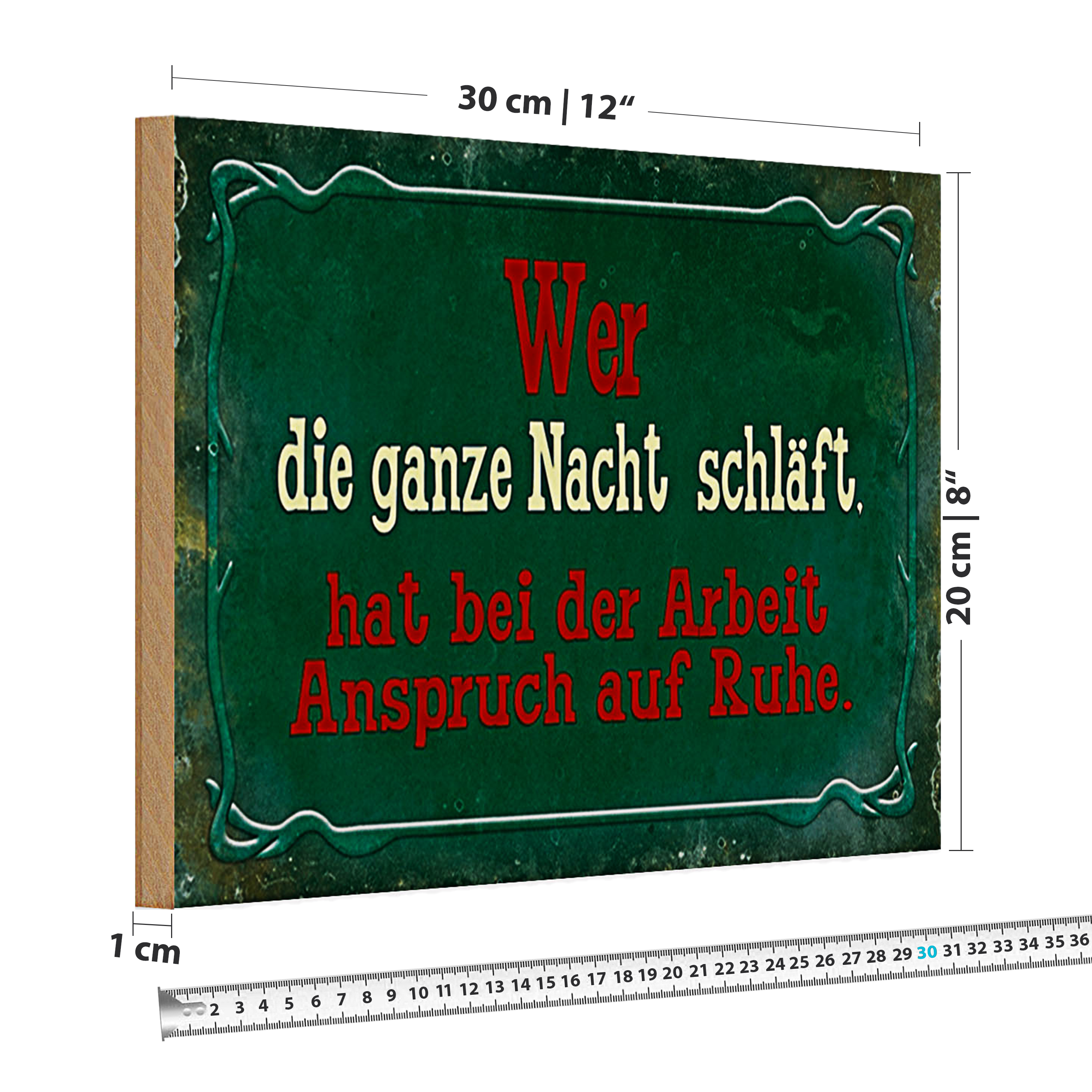 Holzschild Spruch 30x20cm Arbeit wer ganze Nacht schläft