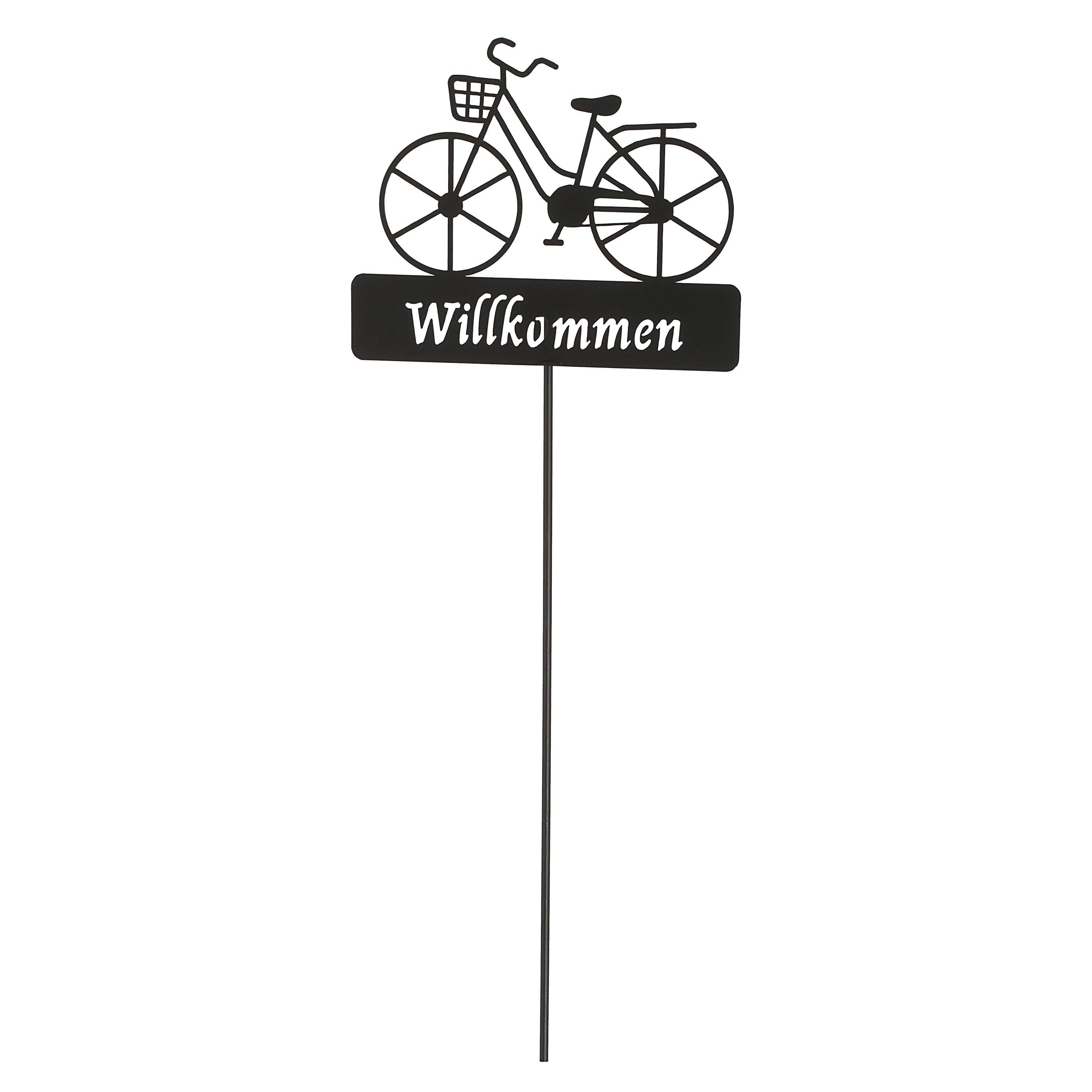 Gartenstecker Fahrrad "Willkommen"Metall schwarz 20x90cm Gartendekoration Metallstecker